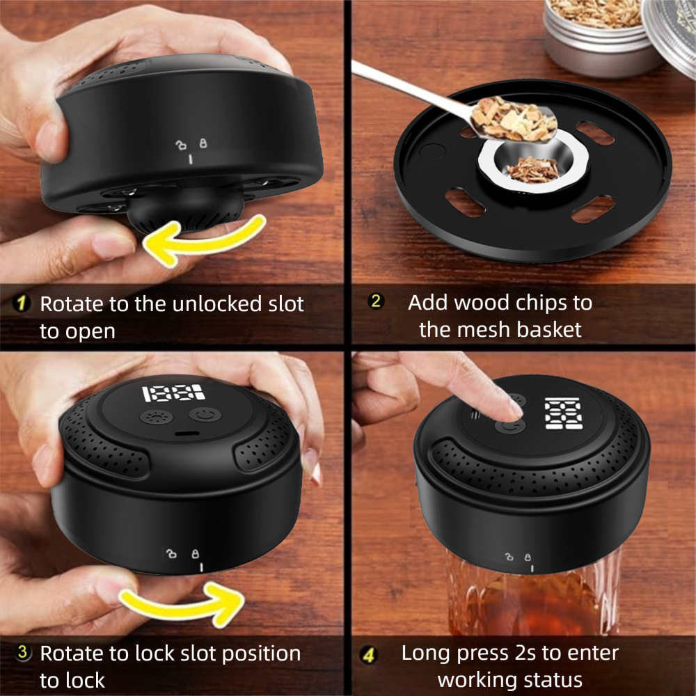 Трансграничный электрический коптильник четвертого поколения для коктейлей и виски с цветной подсветкой и различными наборами ароматных древесных пород для копчения