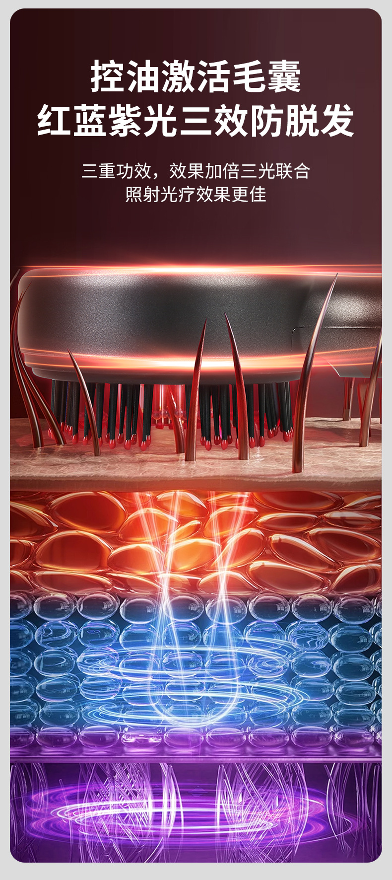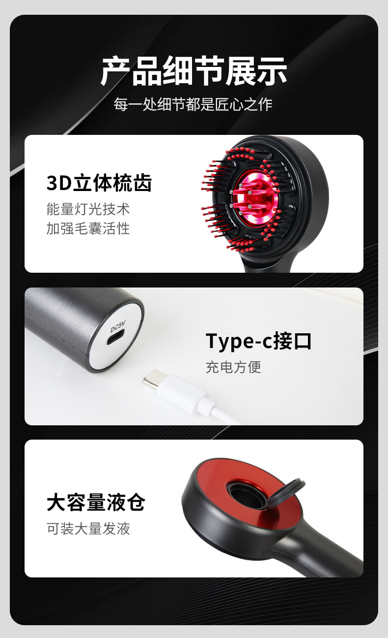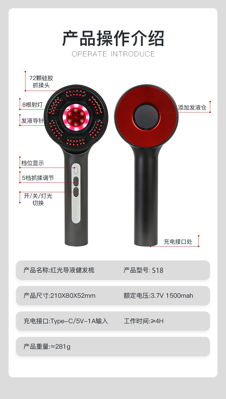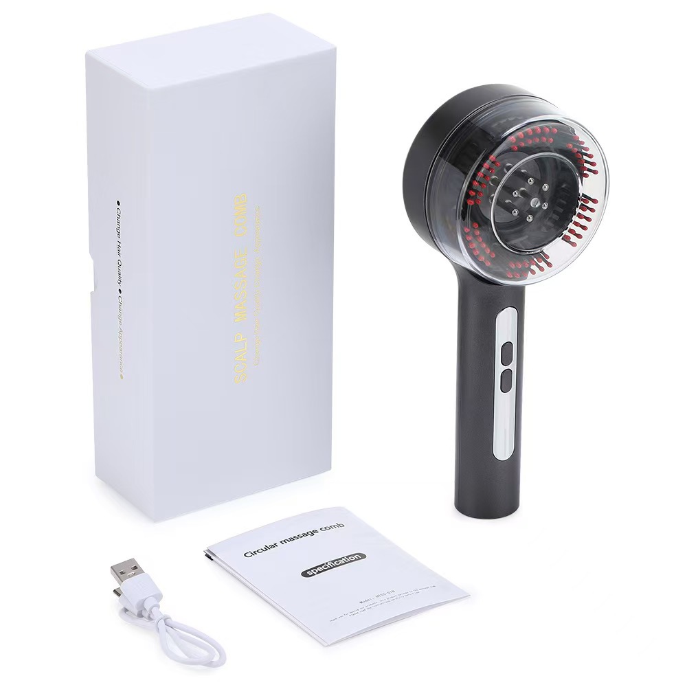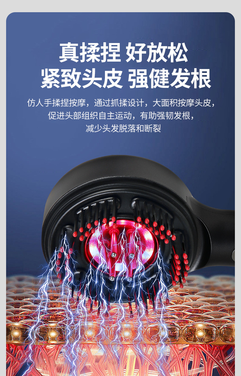Электрическая массажная расческа, разминающий массаж, очищение кожи головы, лечебный шарик, устройство для роста волос с жидкостным управлением, расческа для волос с красным и синим светом против выпадения волос.