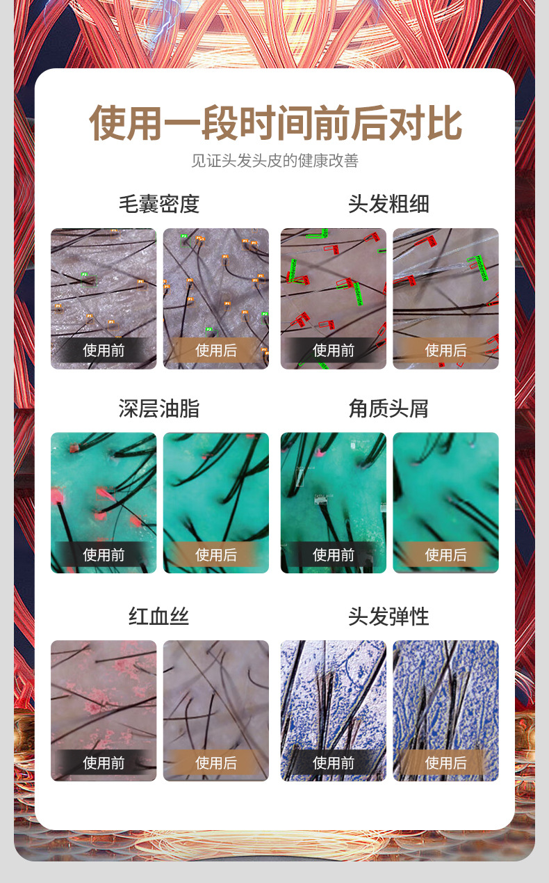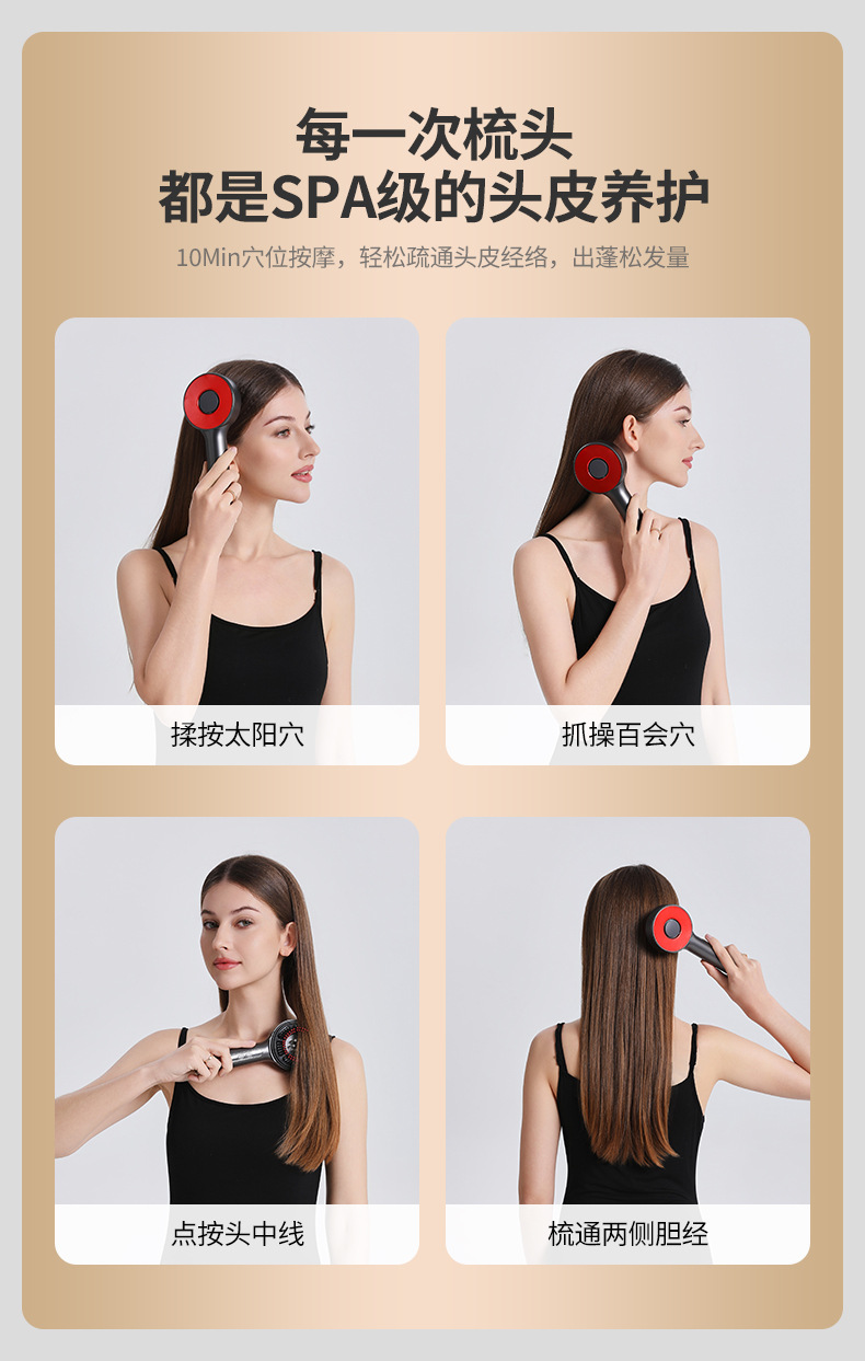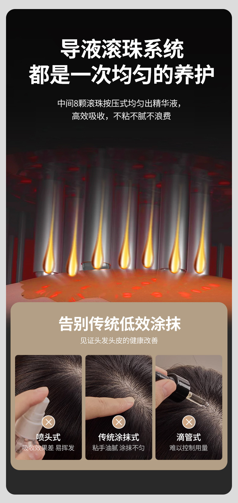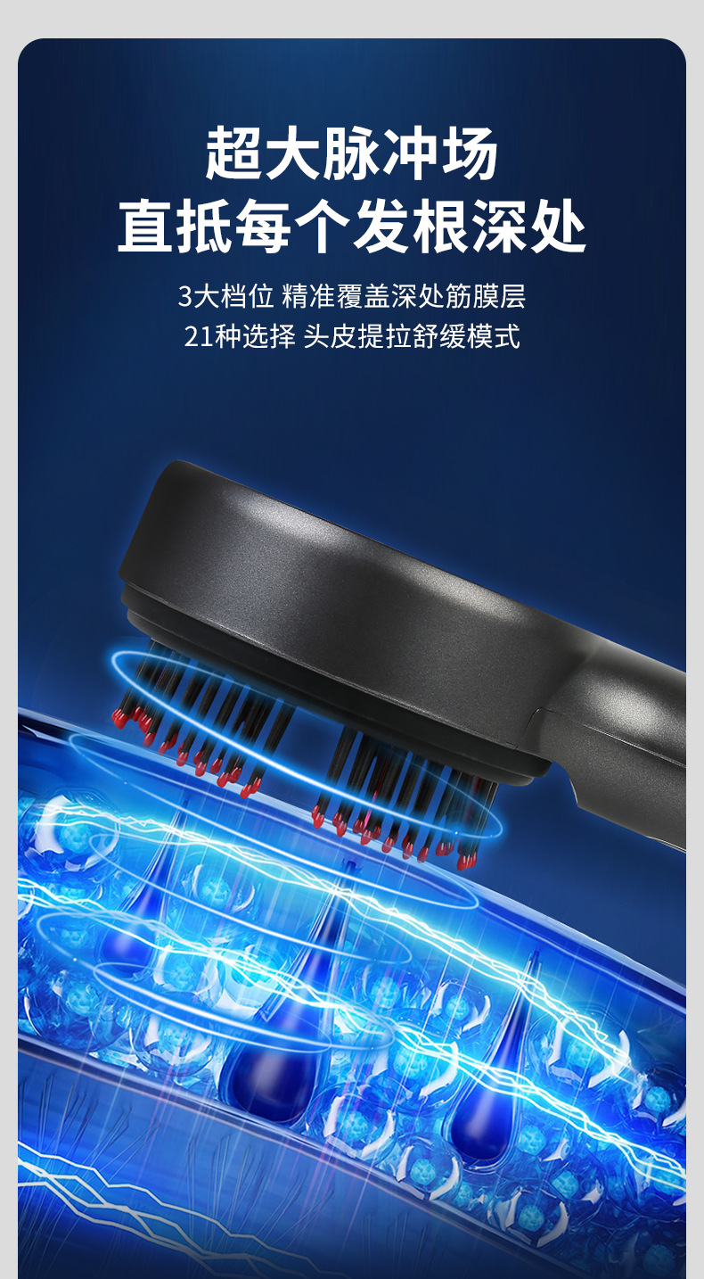 Электрическая массажная расческа, разминающий массаж, очищение кожи головы, лечебный шарик, устройство для роста волос с жидкостным управлением, расческа для волос с красным и синим светом против выпадения волос.