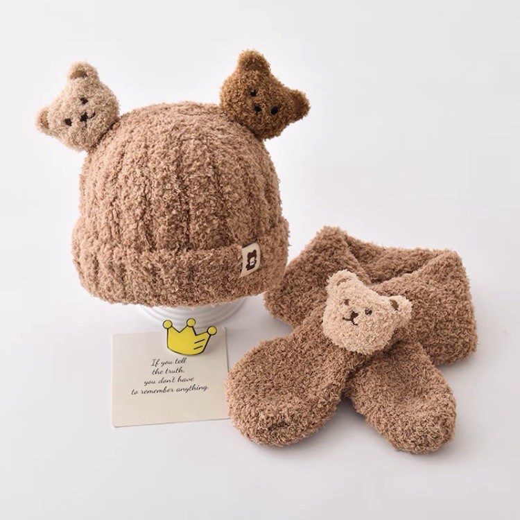 Осенние и зимние детские шапки для девочек, детские шарфы с медведем, вязаные шапки, теплые зимние комплекты из двух предметов, а также плюшевые шерстяные шапки оптом.