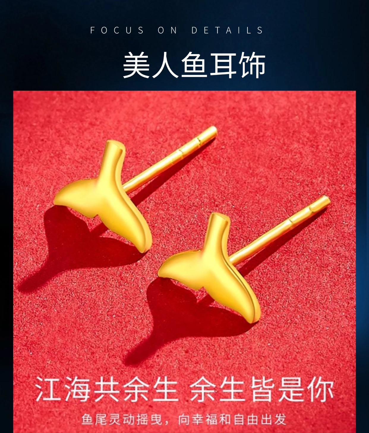 Позолоченные серебряные серьги-русалки Zhou Baina, изысканные, нежные, с хвостом маленького кита, классическая модель - JPES0041.