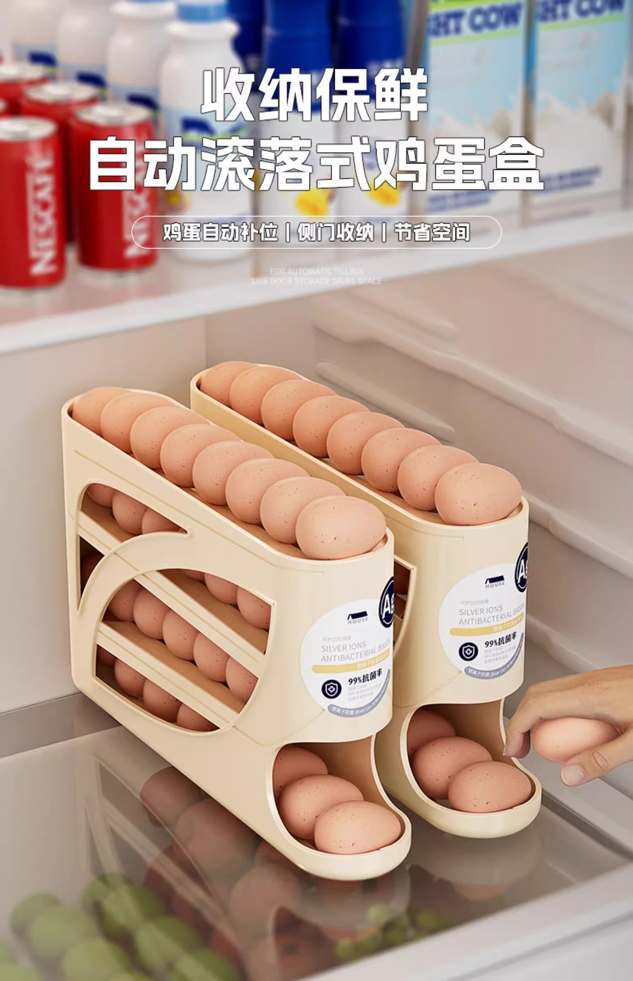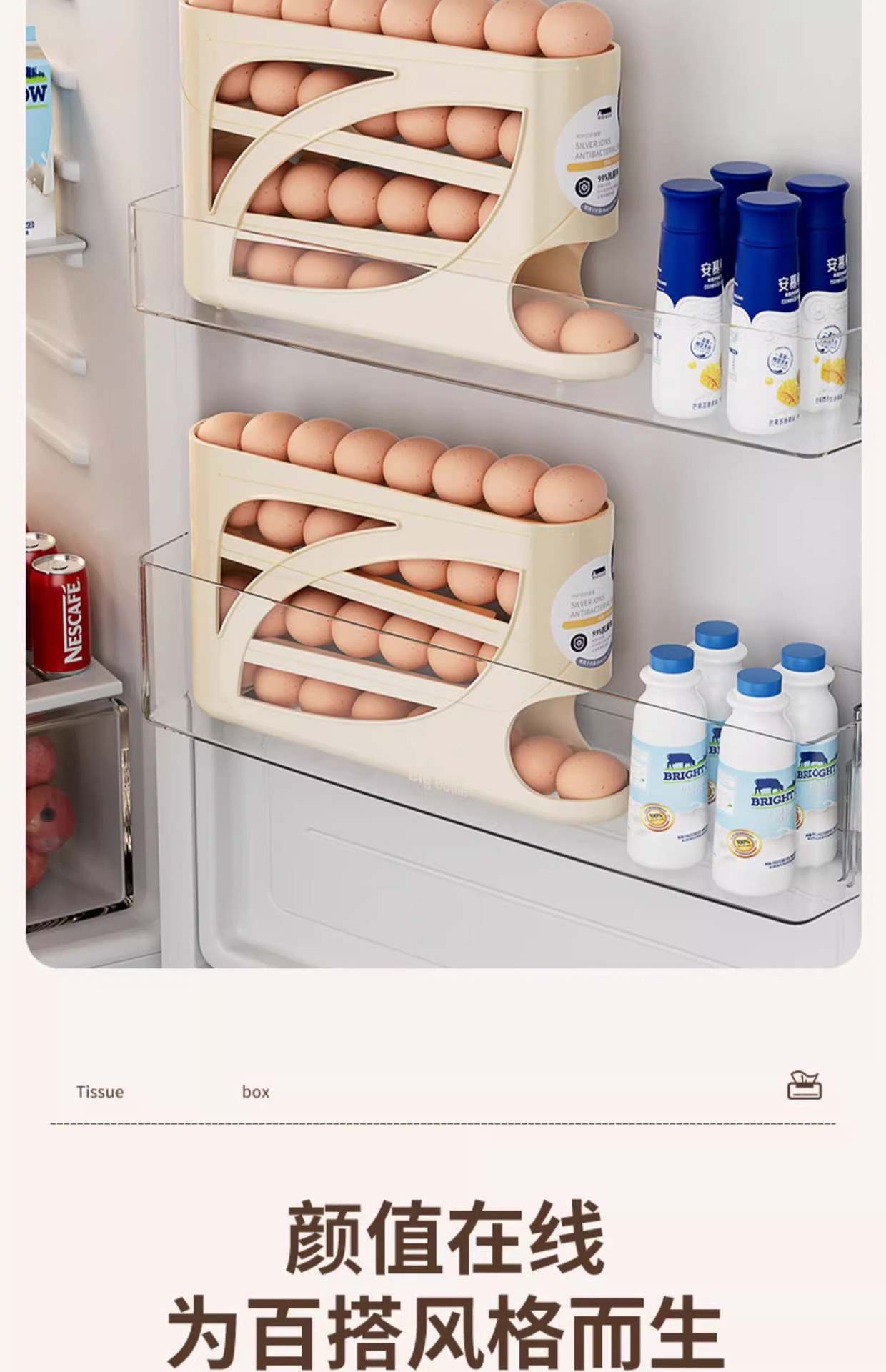 Молочно-белый, 1 упаковка [вмещает около 30 яиц], автоматически пополняет пространство.; Кремовый цвет 1 упаковка [вмещает около 30 яиц] автоматически пополняет пространство