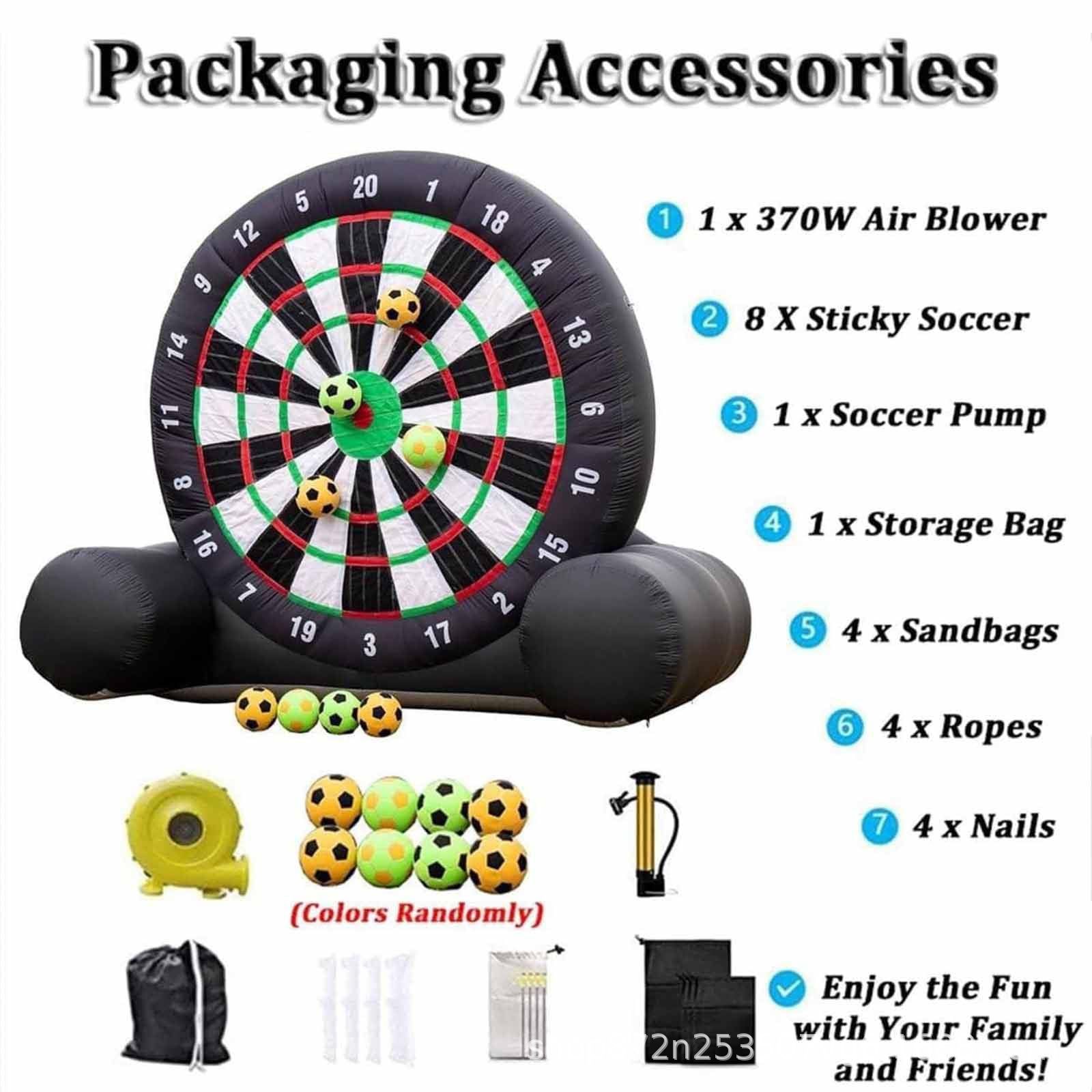 配件:足球标靶*1,足球*8,足球气泵*1,鼓风机*1,储存袋*1,地钉*4,尼龙防风绳*4,沙袋(不包含沙子)*4,维修布*2