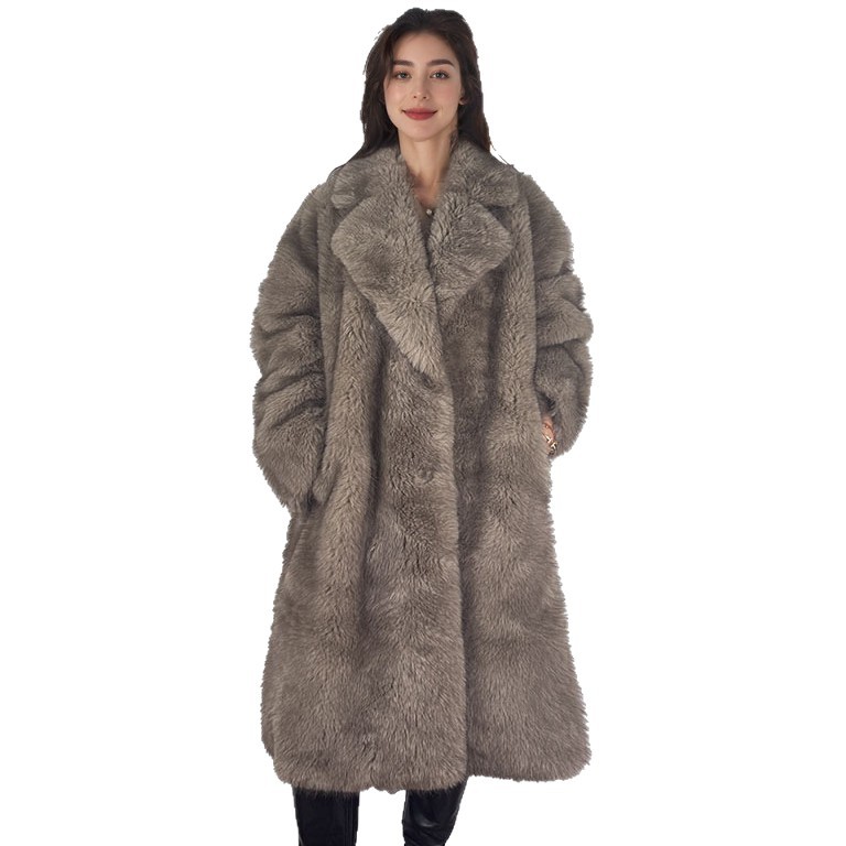Трансграничная горячая распродажа: новинка зимы 2025 года, европейские и американские женские ретро-пальто из искусственного меха, свободного кроя, удлиненные, теплые, верхняя одежда.
