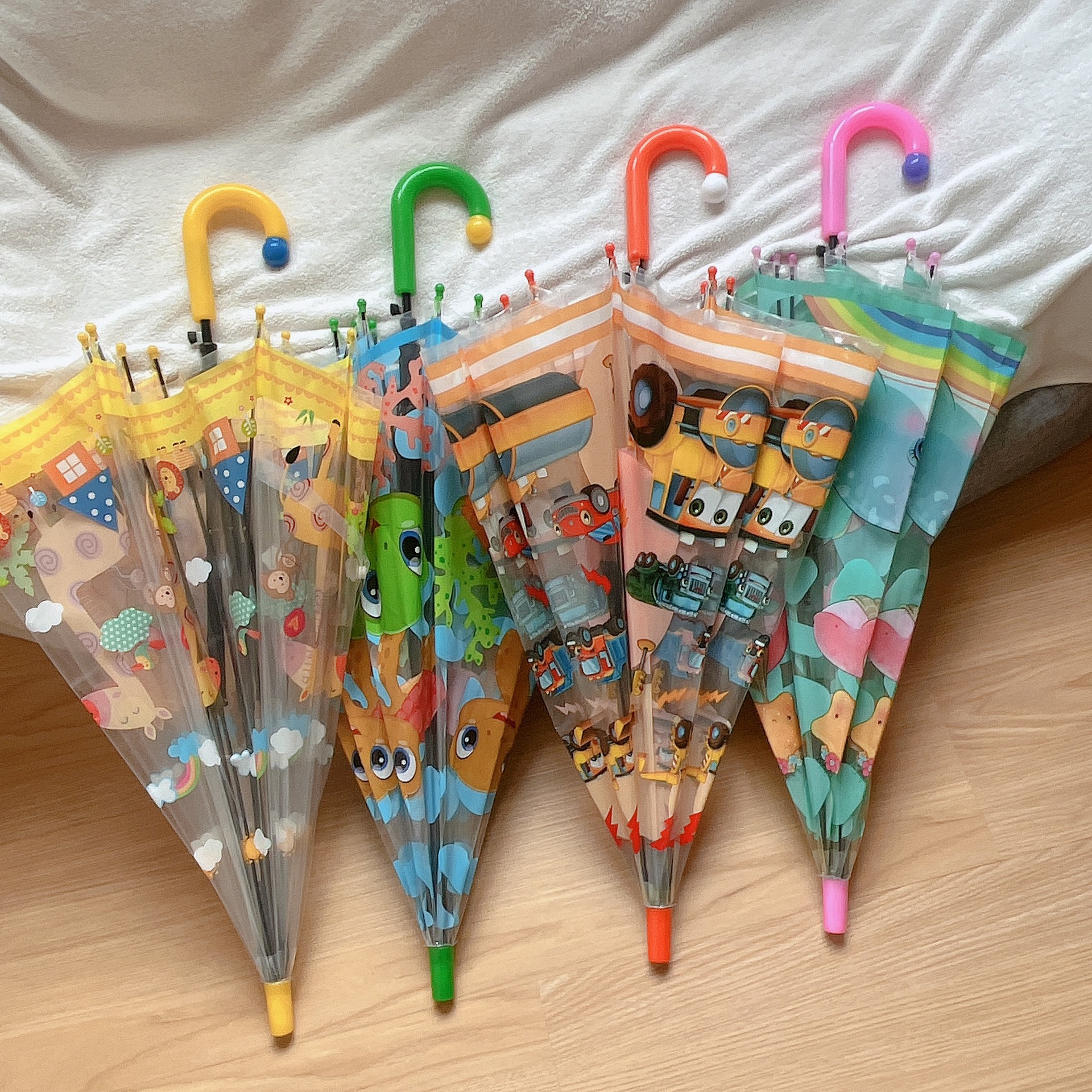 Прозрачный утолщенный зонтик с 8 косточками, прозрачный зонтик с рисунком, забавный детский зонтик для учащихся начальной школы, детский сад, зонтик с длинной ручкой, индивидуальный заказ