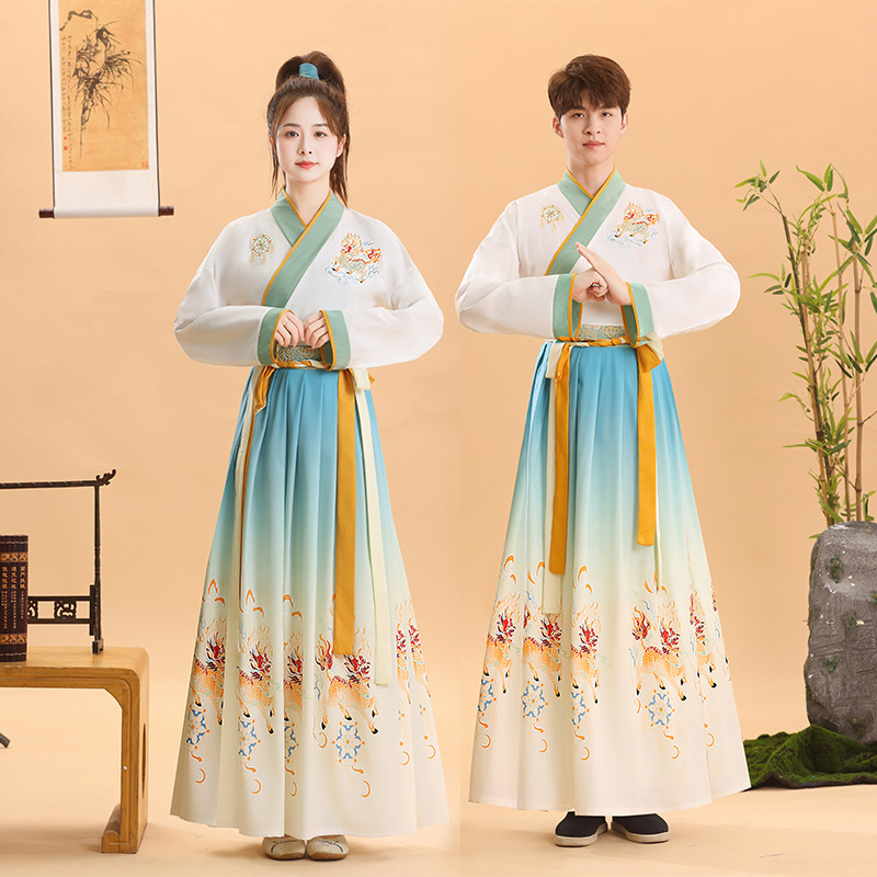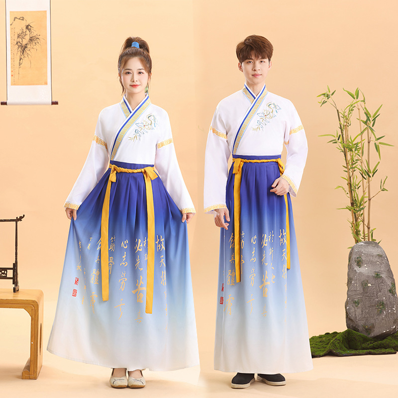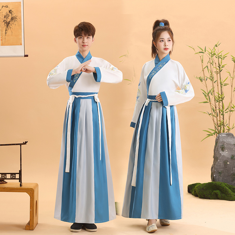 Древний костюм для взрослых для мужчин и женщин, традиционная китайская одежда для выступлений, новый костюм учителя с классическим произнесением «Три персонажа», китайский стиль.