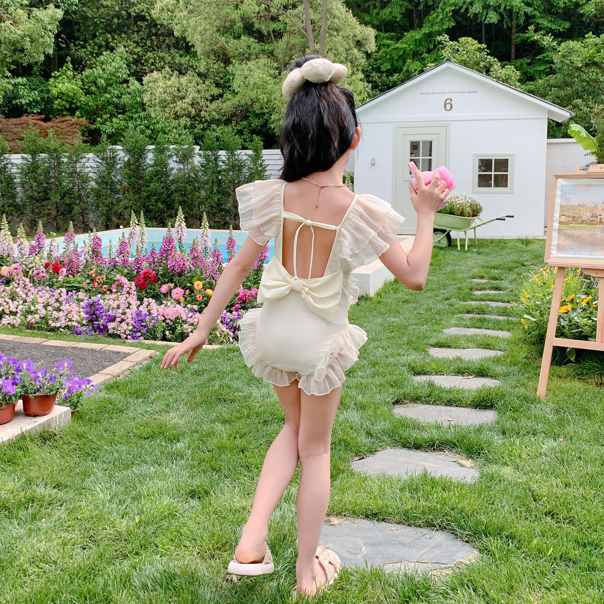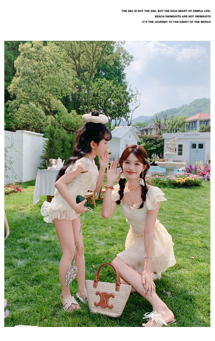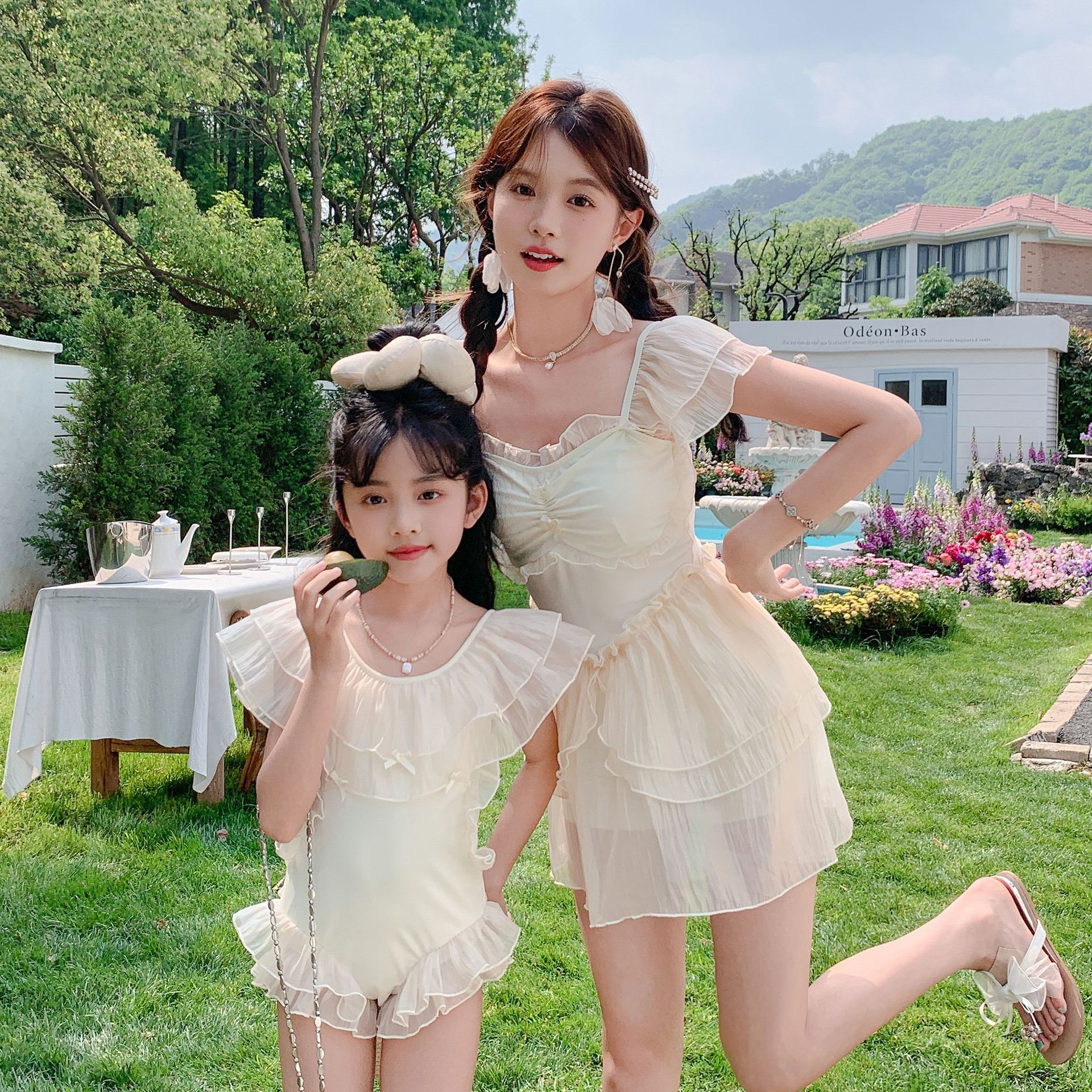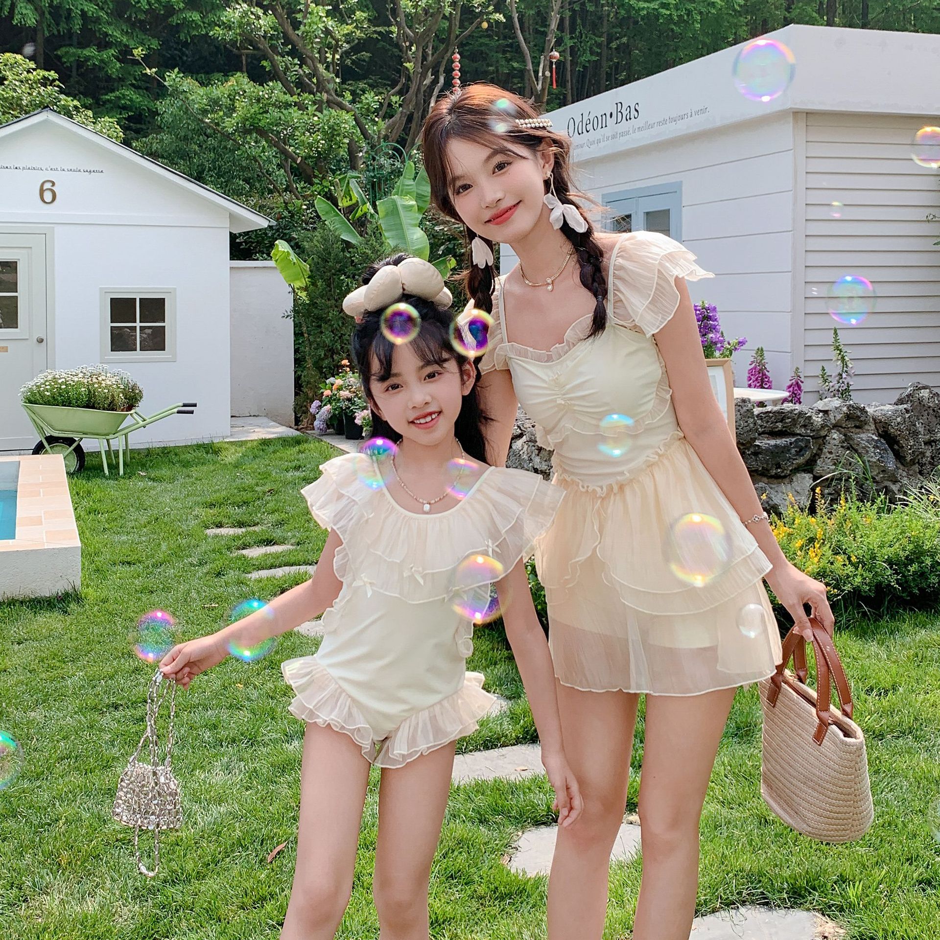 Купальник для родителей и детей, модный женский цельный купальник в стиле маленькой ароматной юбки, детский купальник с рюшами и бантом для маленьких девочек