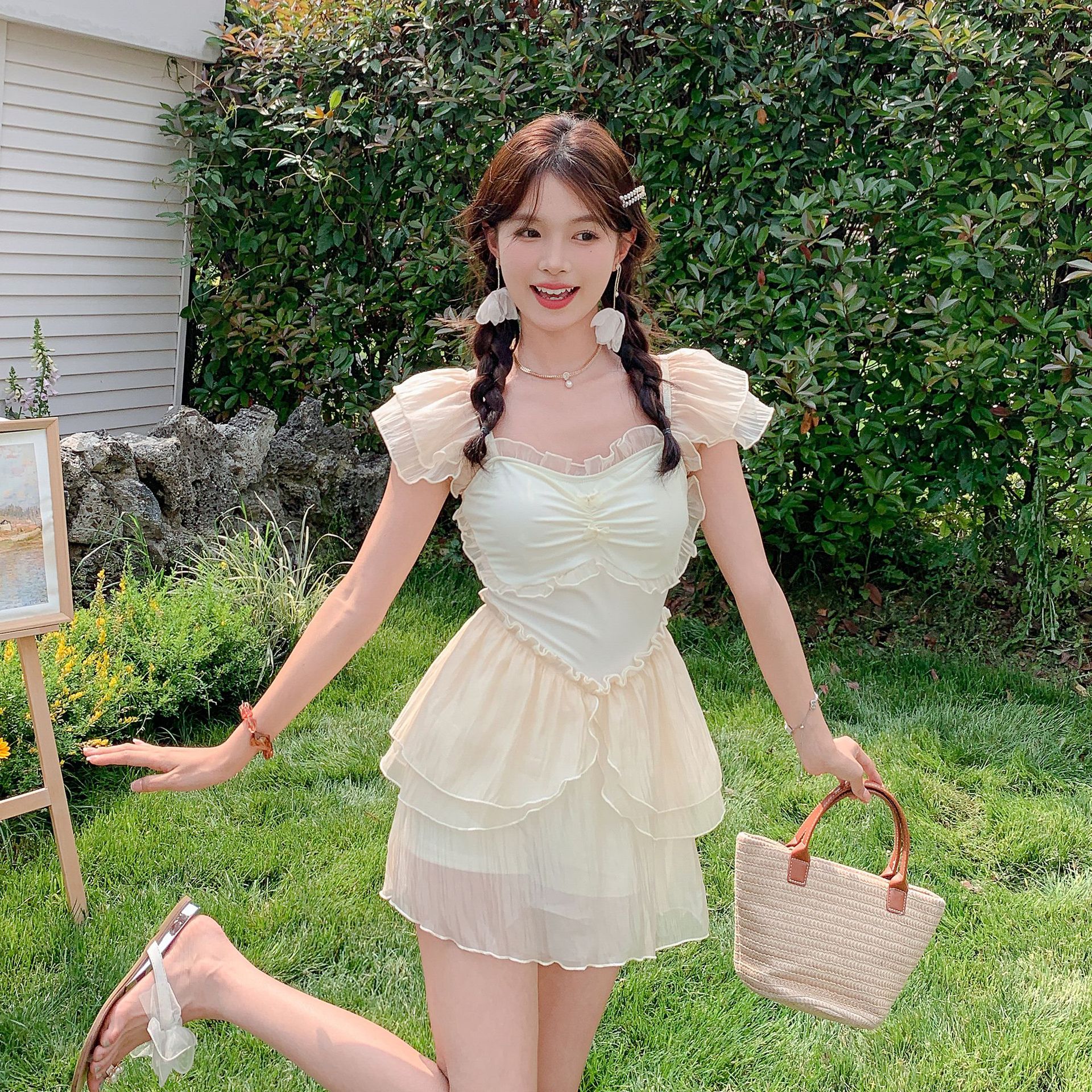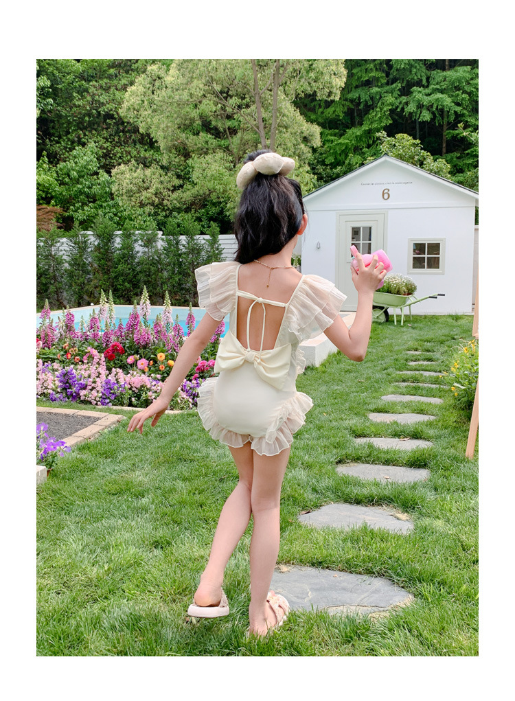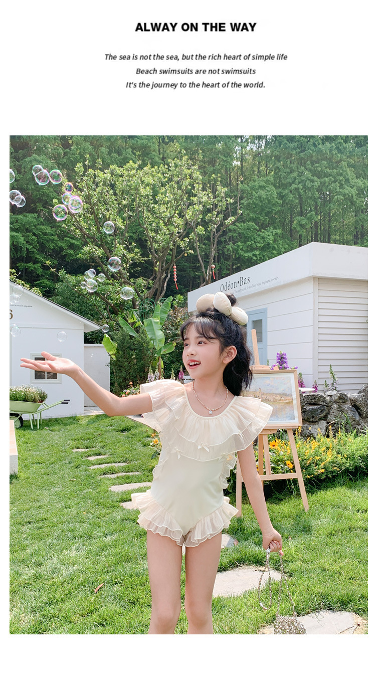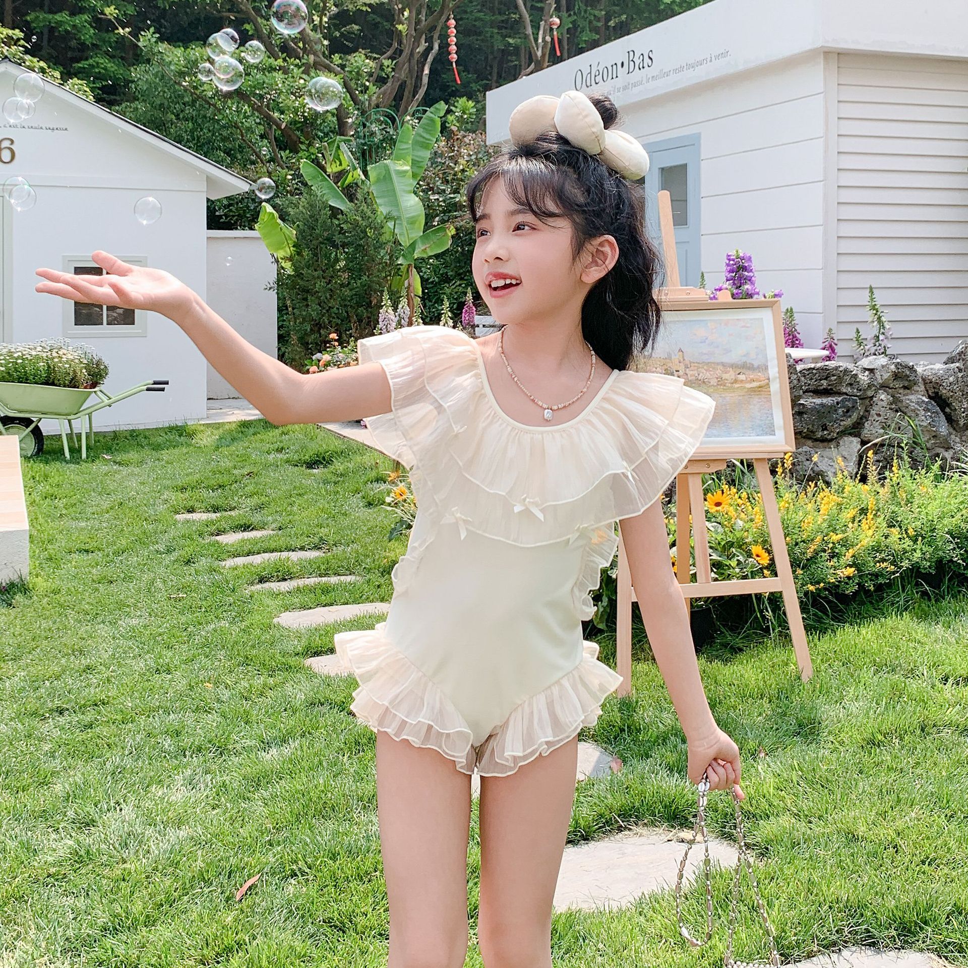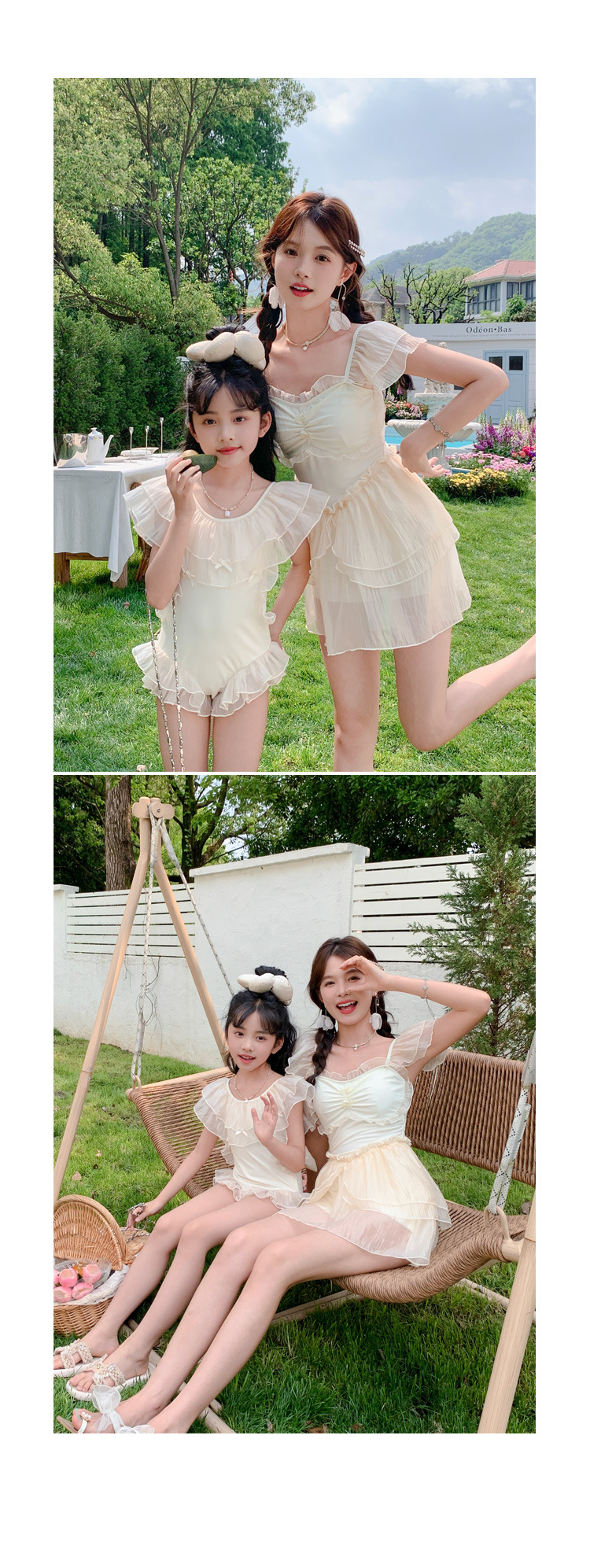 Купальник для родителей и детей, модный женский цельный купальник в стиле маленькой ароматной юбки, детский купальник с рюшами и бантом для маленьких девочек
