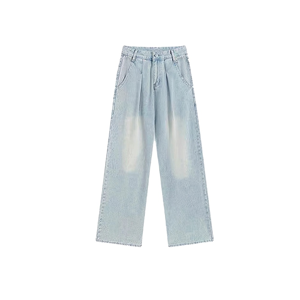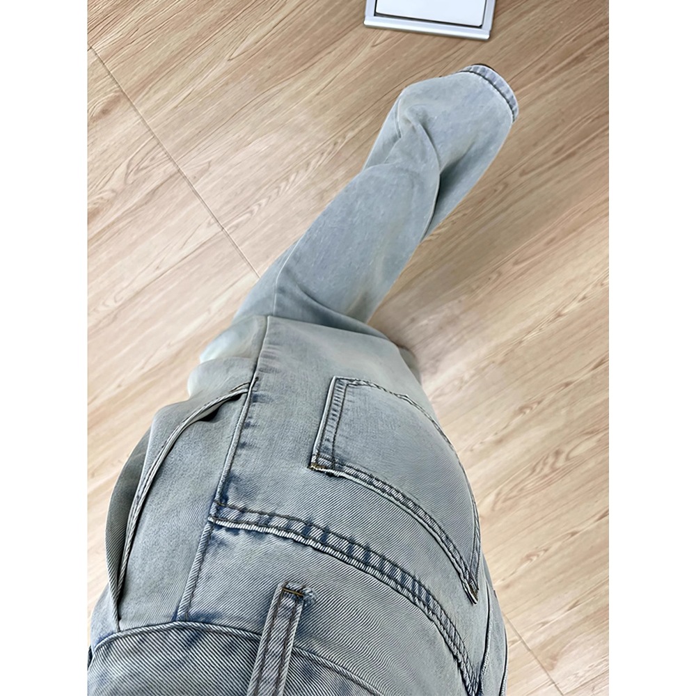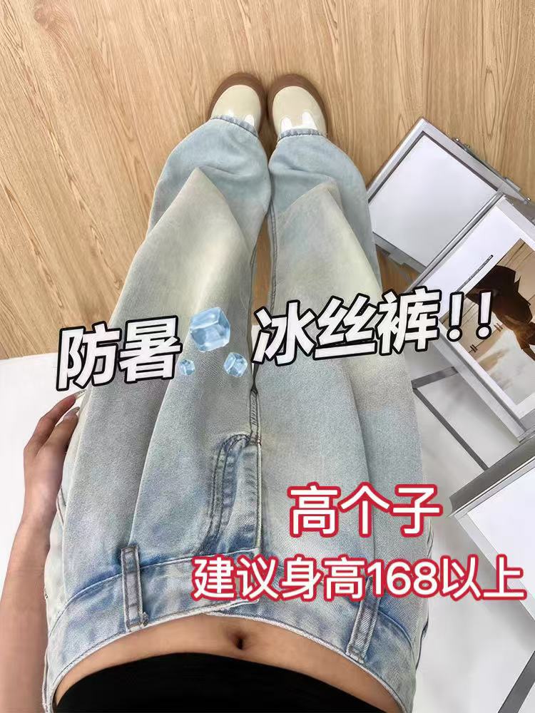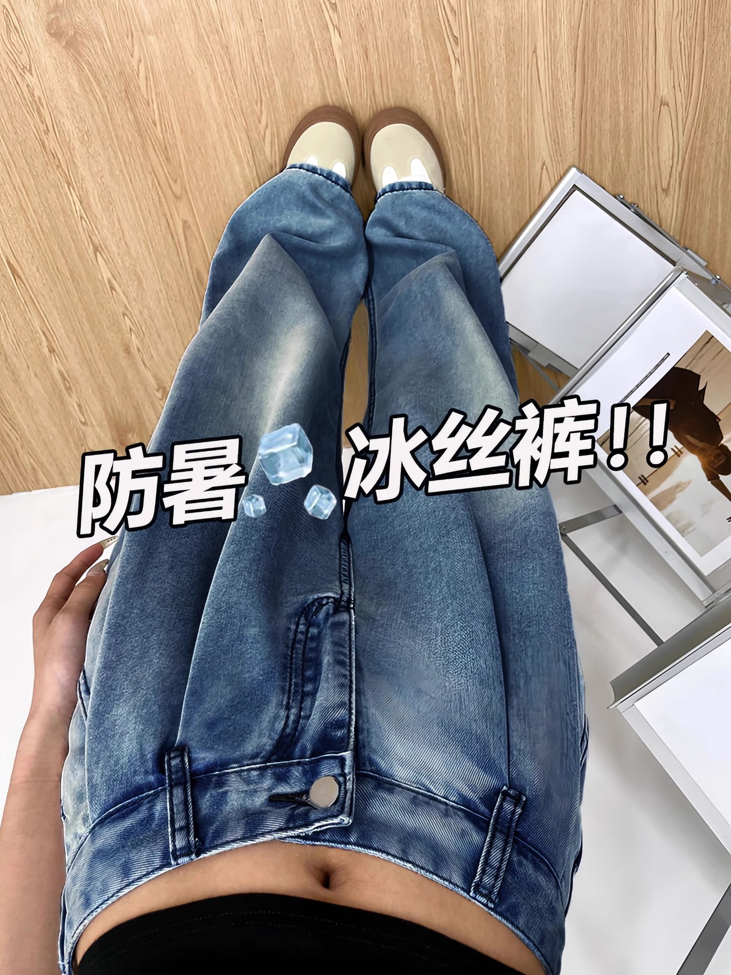 Светло-голубые широкие джинсы из ледяного шелка для женщин, летние тонкие утягивающие прямые брюки в пол больших размеров с высокой талией.