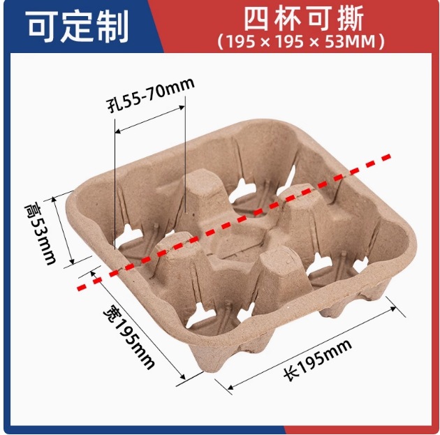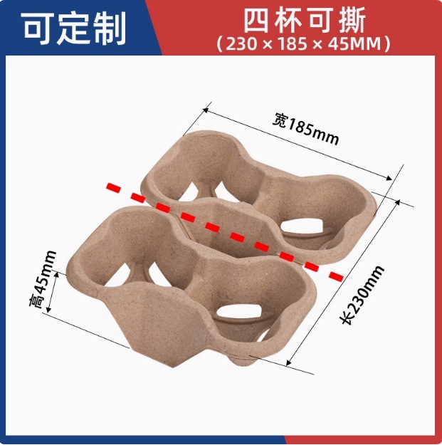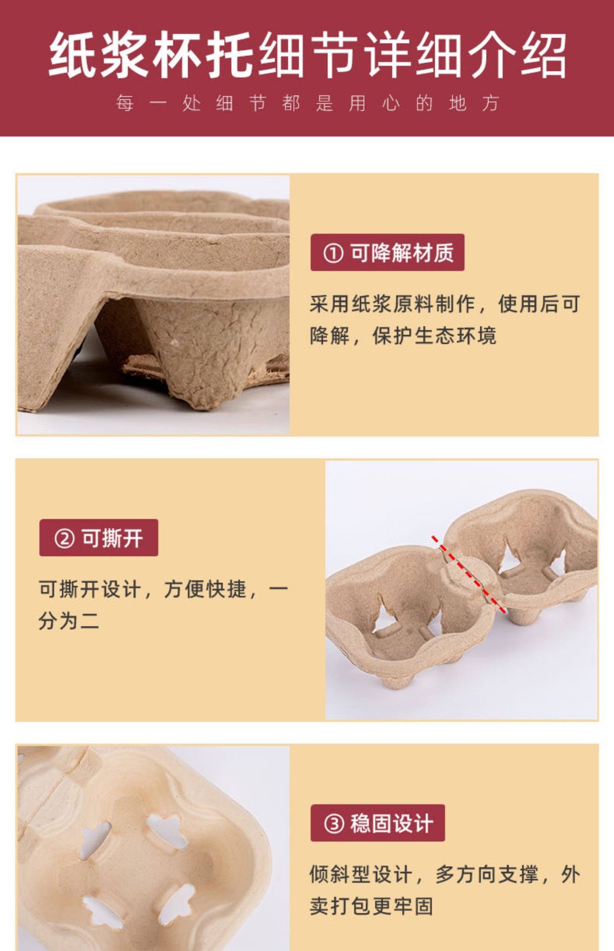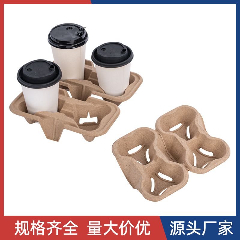 Одноразовая упаковка для молочного чая, кофе на вынос, поднос, основание для одной чашки, четыре чашки, разрываемый и разлагаемый, экологически чистый держатель для чашек из бумажной массы