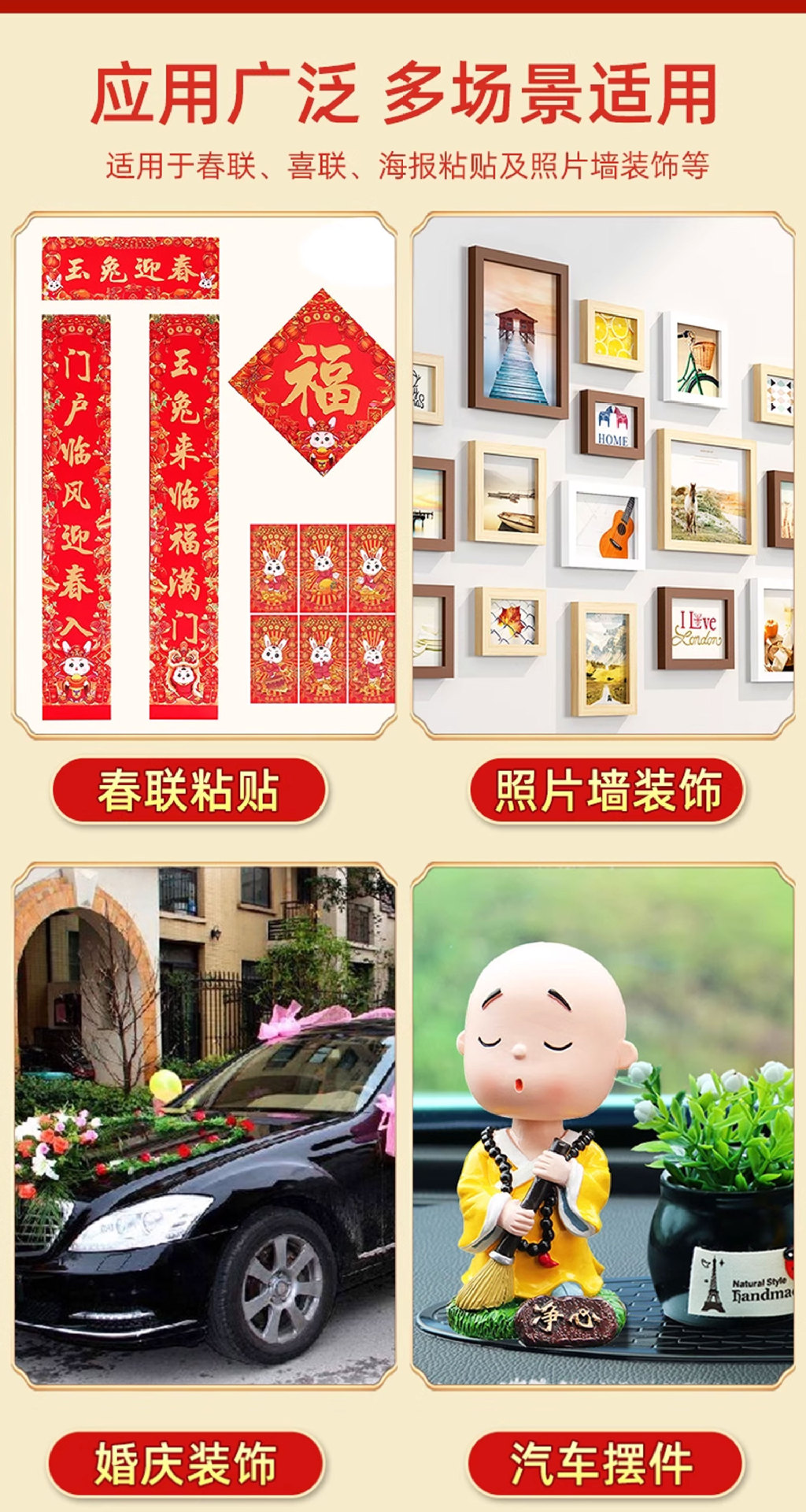 Новогодняя двусторонняя клейкая лента для куплетов, специальная прозрачная лента для куплетов с символом «喜 (Xi, означает счастье)», сильный клей, без следов, акриловый клей.