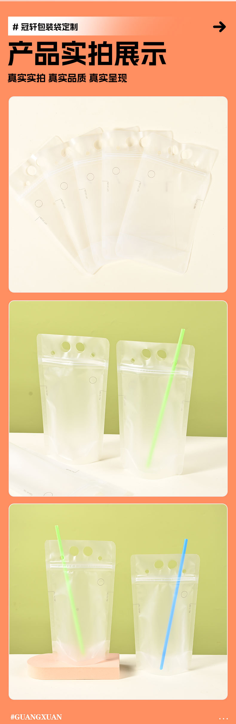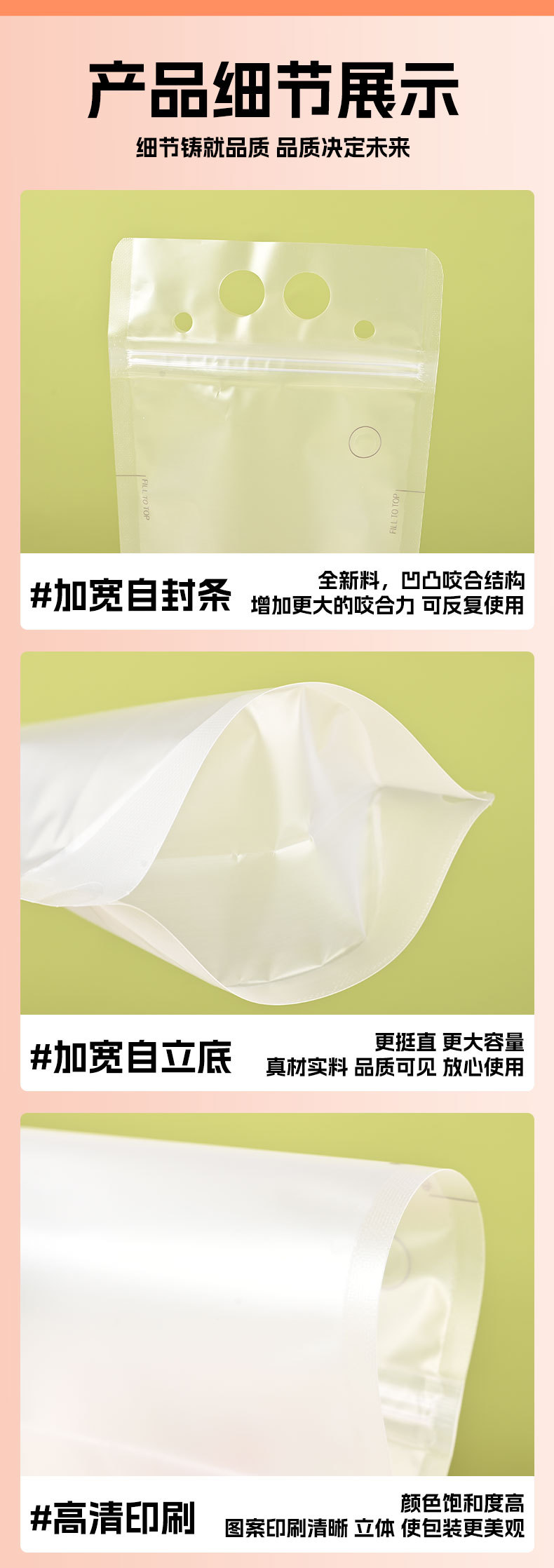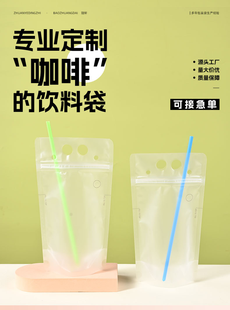 Прозрачный пакет для кофе для напитков, двойная молния, самостоятельный пакет с застежкой-молнией, пакет для напитков, упаковка для сока, пакет для напитков с соевым молоком, готовый к продаже