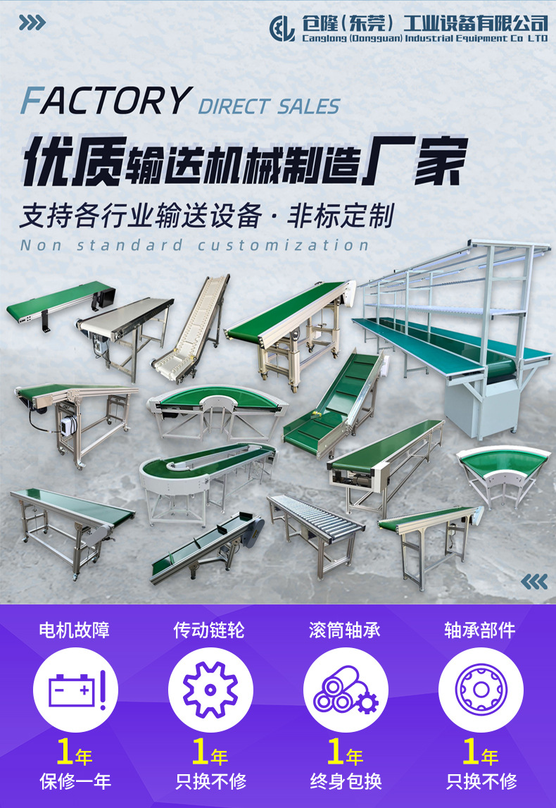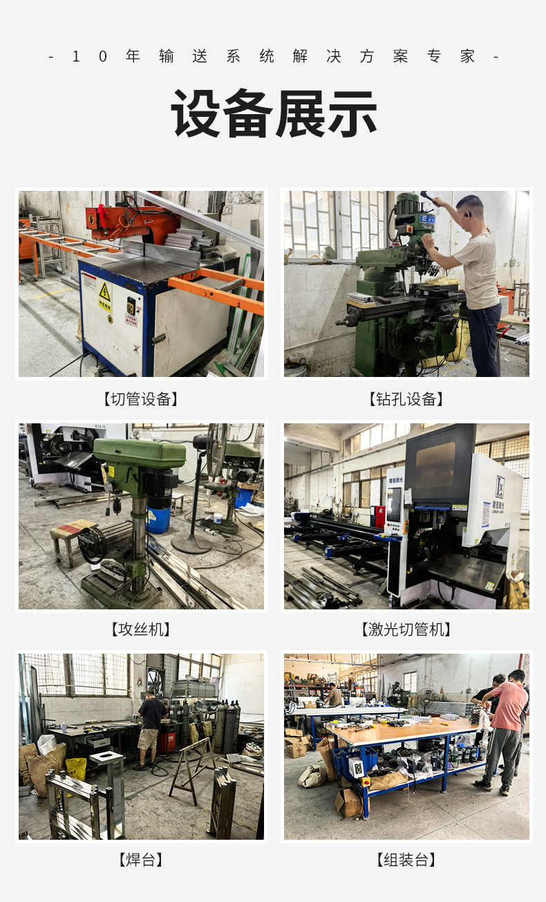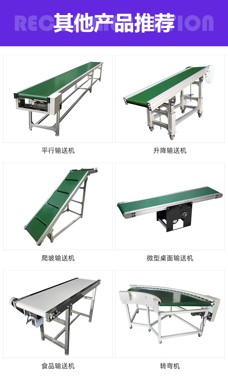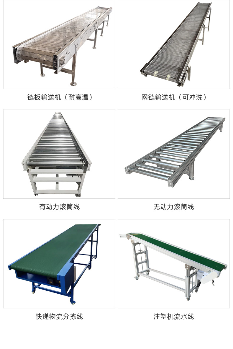 Параллельный конвейер; Подъемный конвейер; Таблица подключения литьевой машины; подъемный конвейер; Миниатюрный настольный конвейер; пищевой конвейер; токарный станок; Цепной конвейер (высокая термостойкость); Сетчатый цепной конвейер (моющийся); Роликовая линия с приводом; Роликовая линия без привода; Сборочная линия; Линия экспресс-сортировки логистики