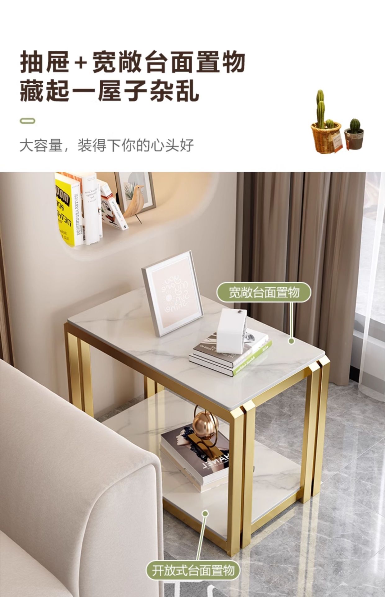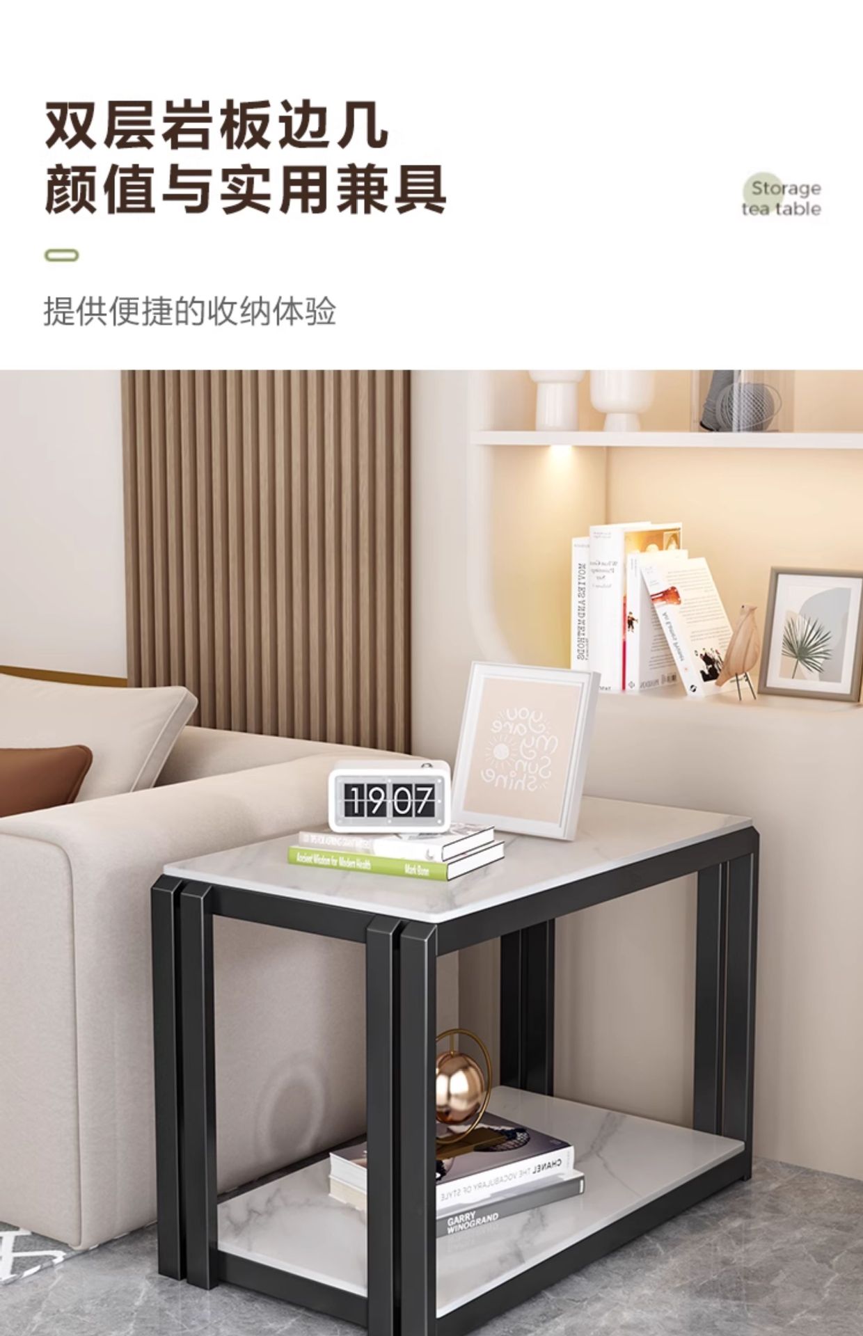 Прямоугольный приставной столик для гостиной, боковой шкаф для дивана, бытовой маленький журнальный столик, простой сланцевый квадратный угловой столик, небольшой столик для хранения