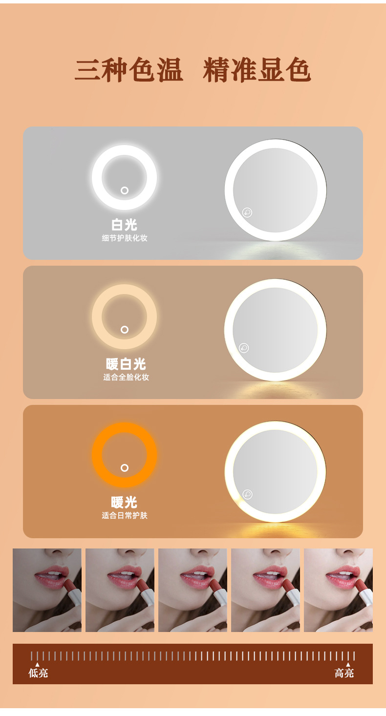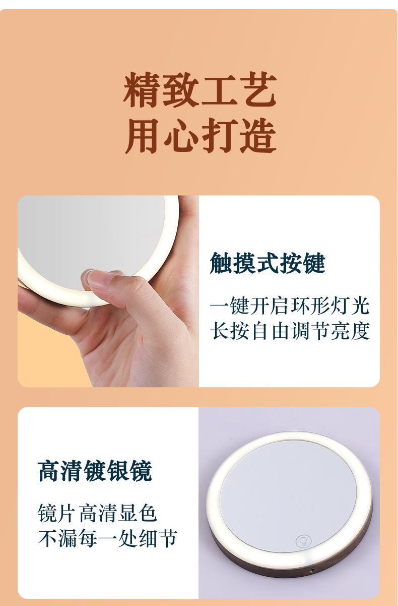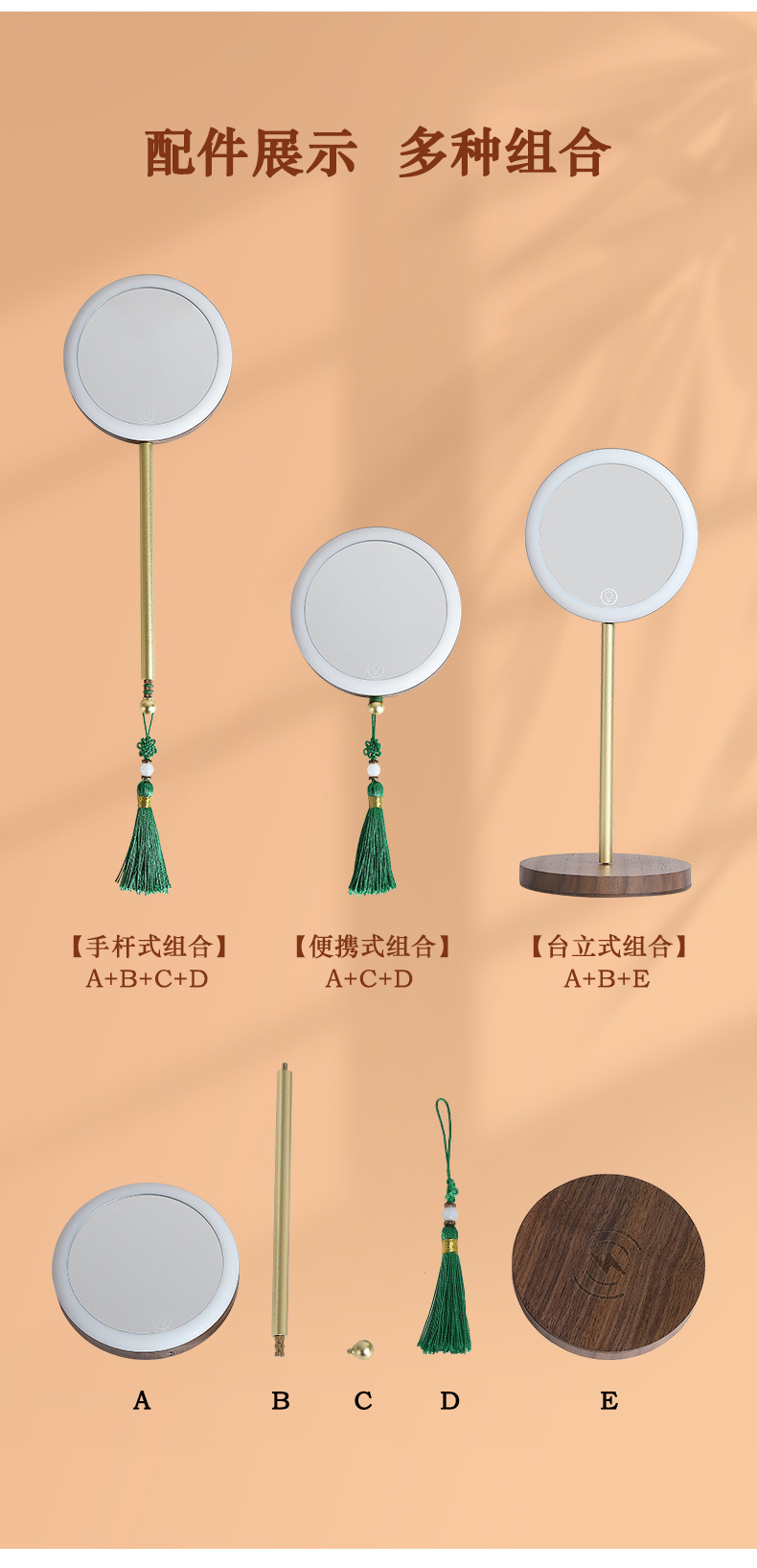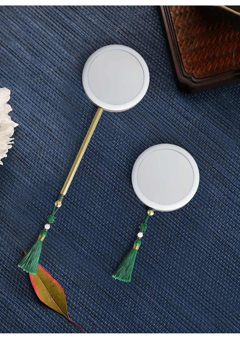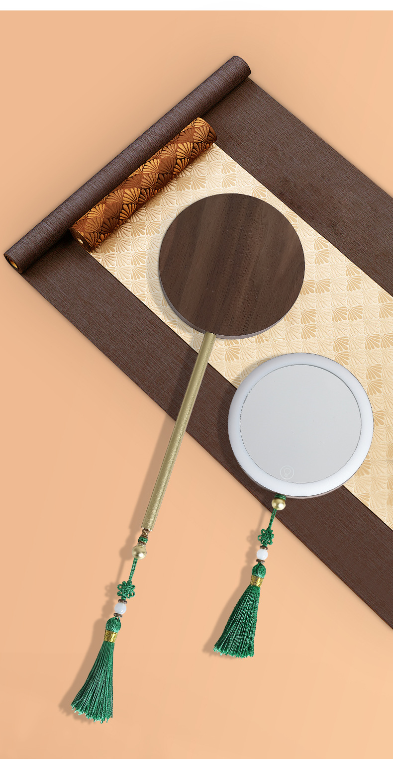 Зеркало для макияжа с беспроводной зарядкой LED, портативное круглое зеркало в китайском стиле из орехового дерева, зеркало для макияжа с подсветкой в подарок