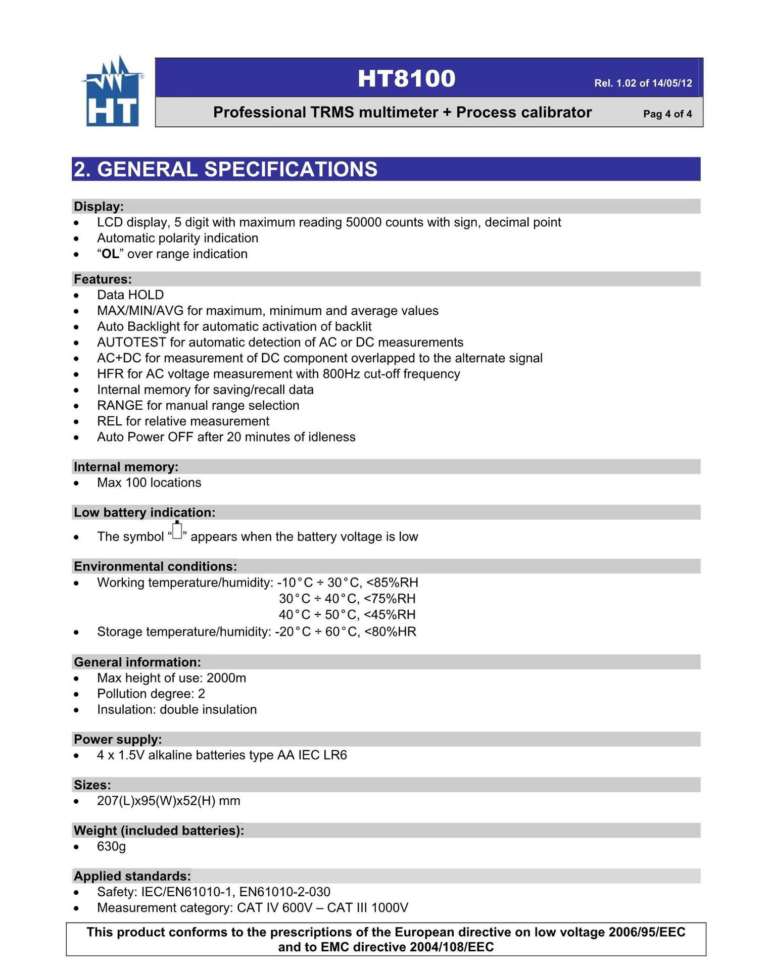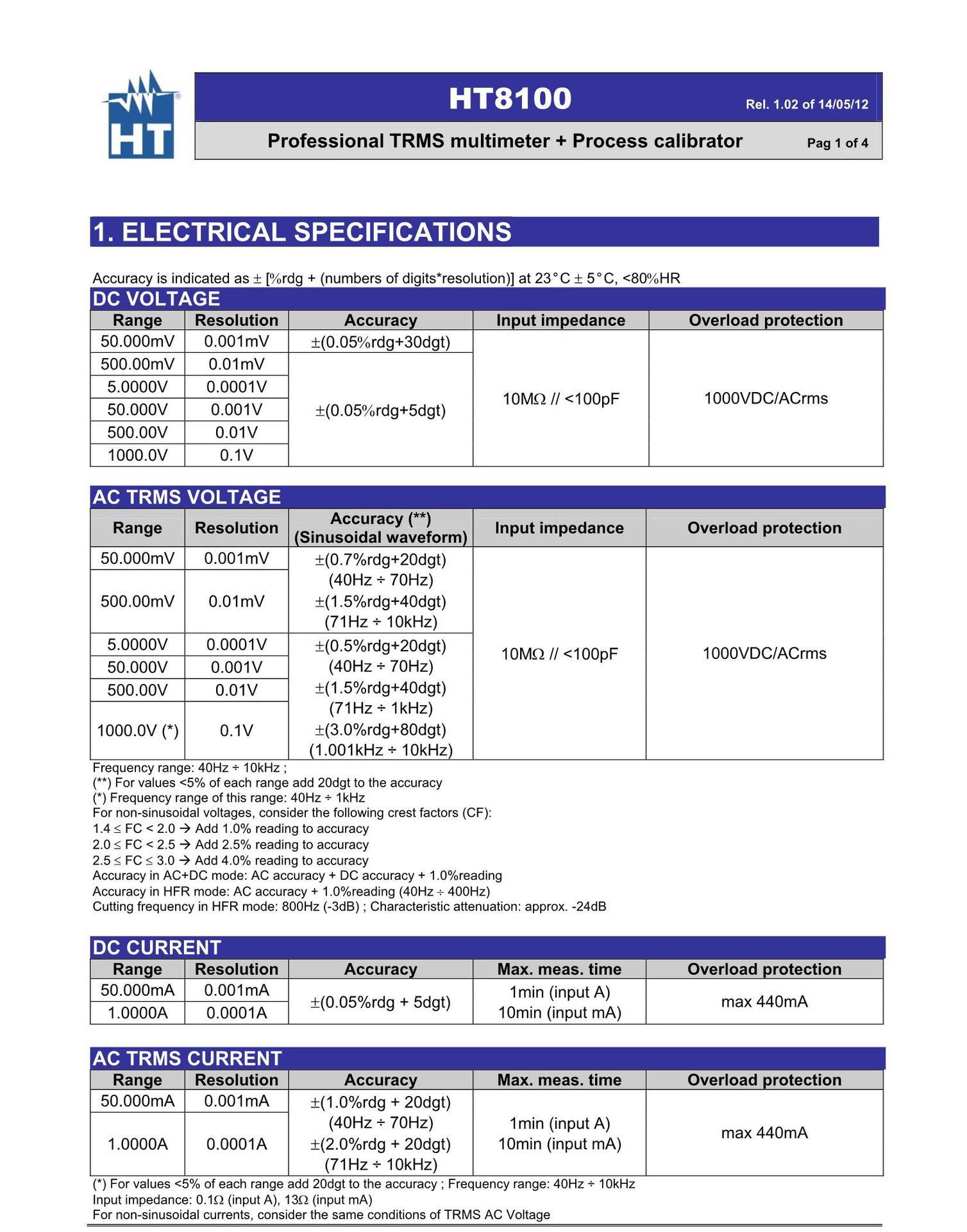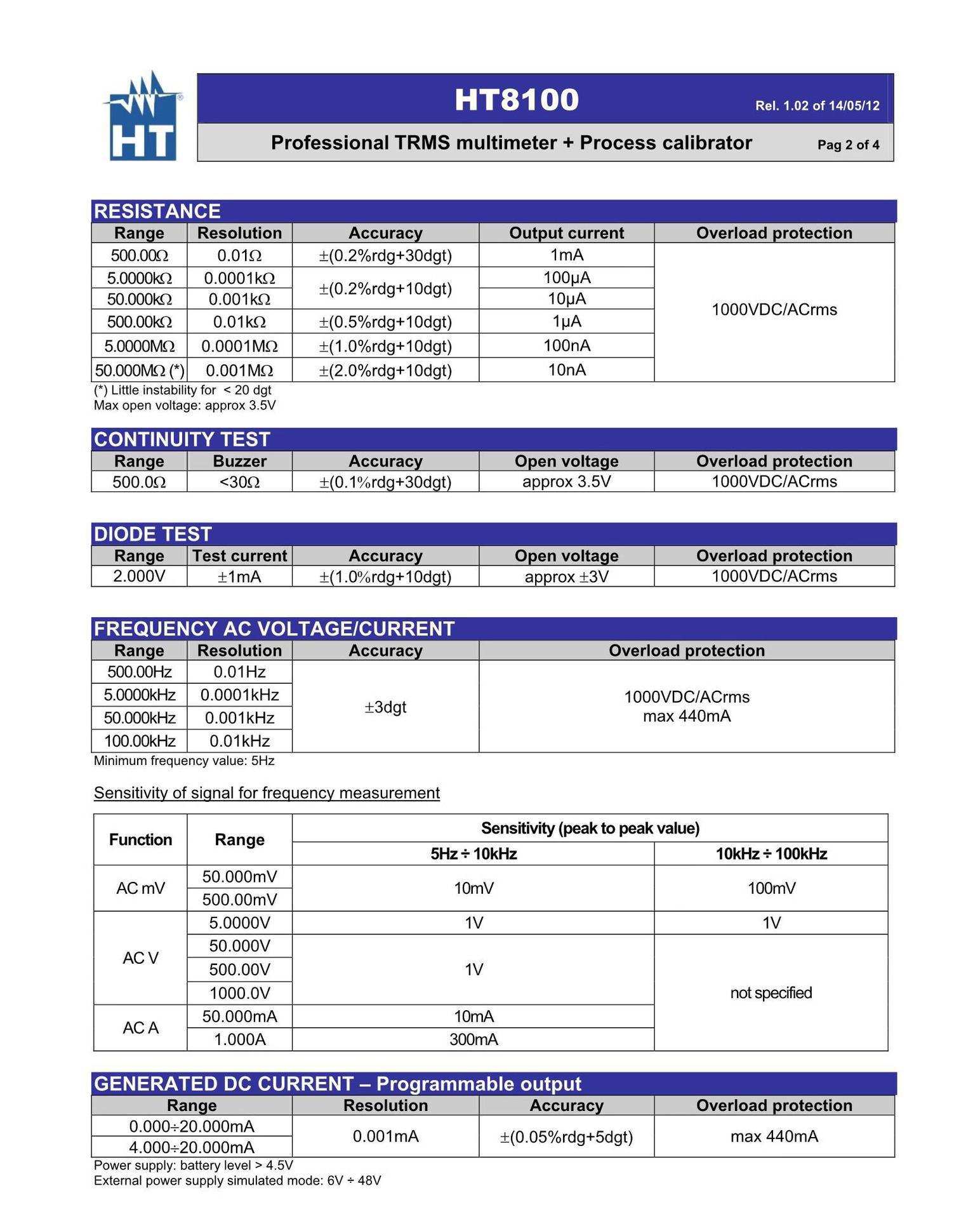 Италия HT Instruments Профессиональный калибратор процессов/мультиметр HT8100