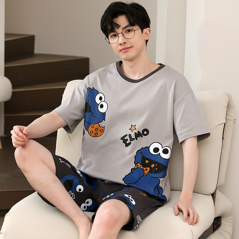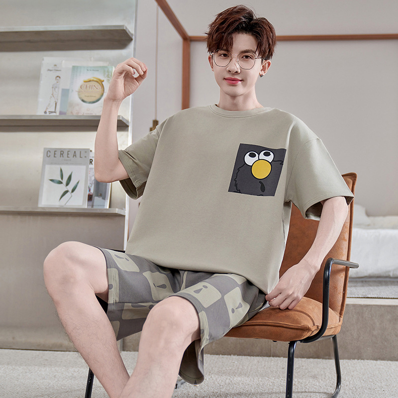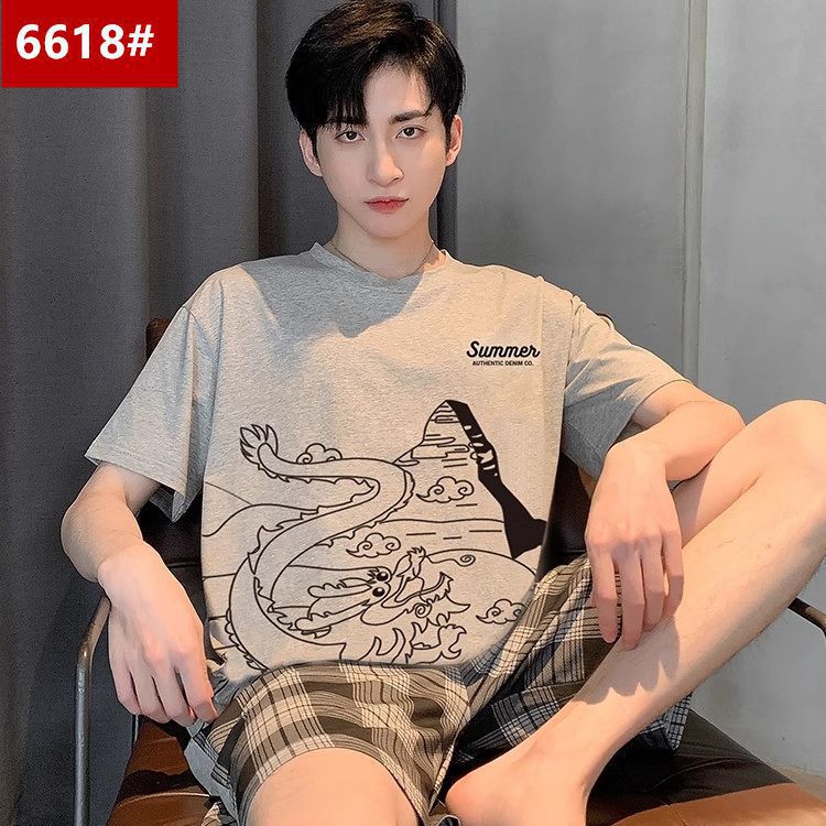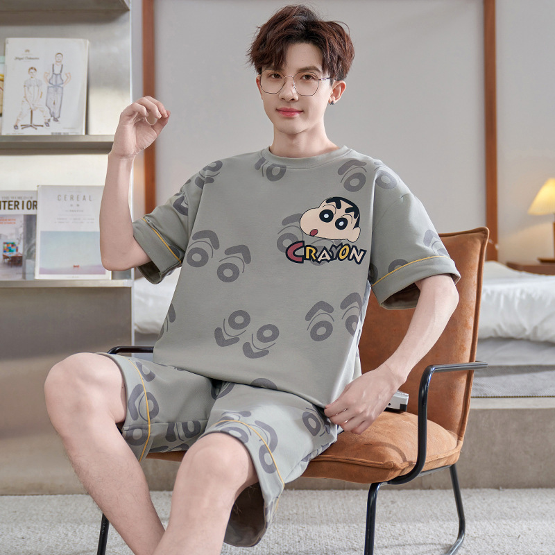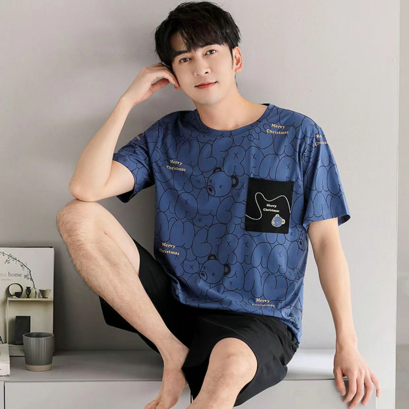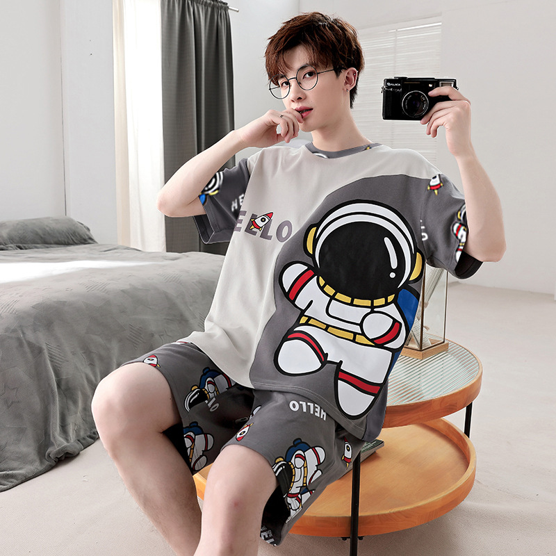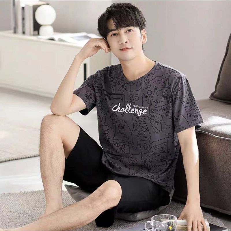 Пижамы мужские с короткими рукавами, тонкие летние повседневные свободные летние большие размеры с круглым вырезом, простой молодежный комплект домашней одежды