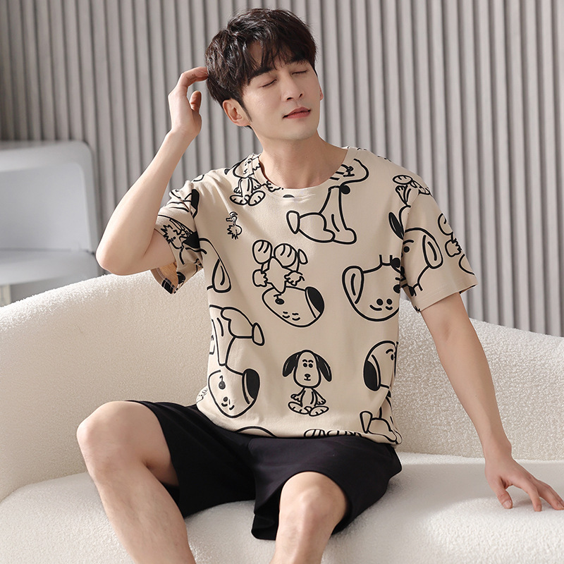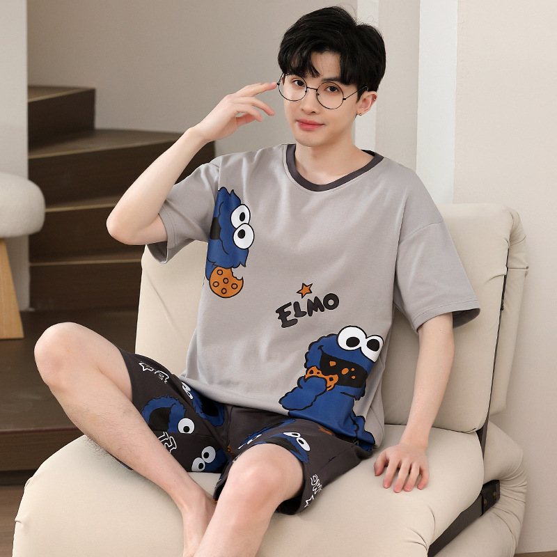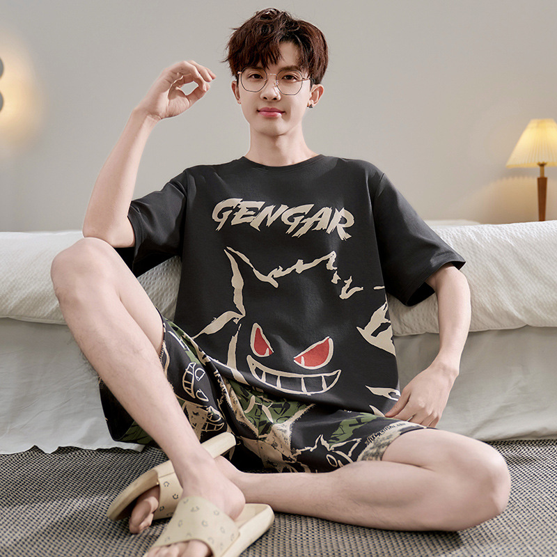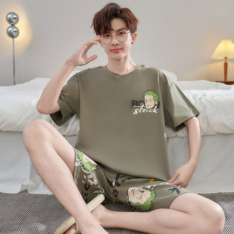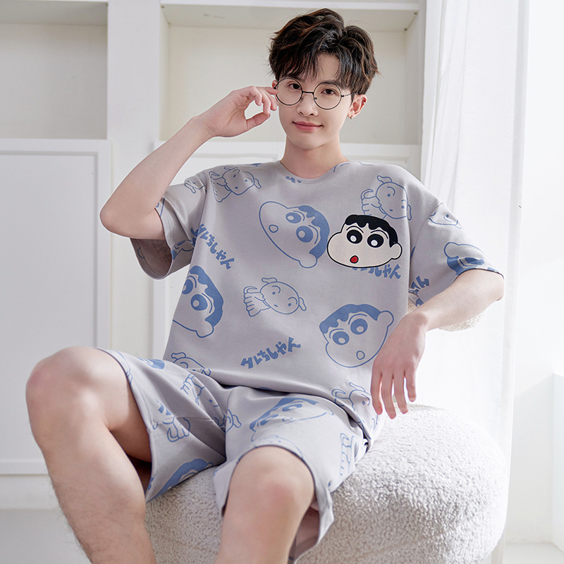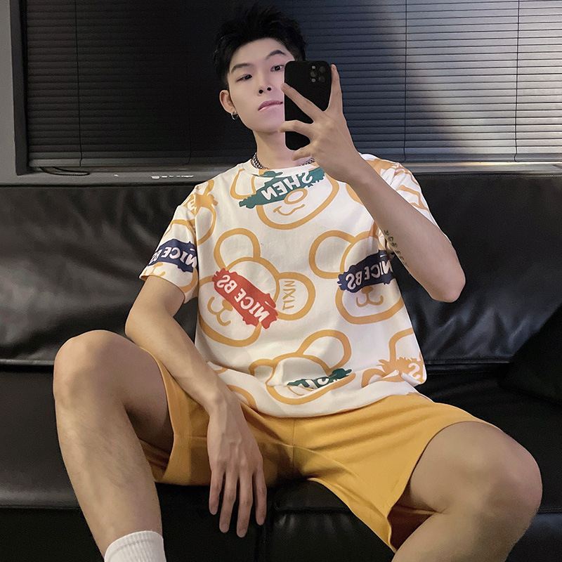 Пижамы мужские с короткими рукавами, тонкие летние повседневные свободные летние большие размеры с круглым вырезом, простой молодежный комплект домашней одежды