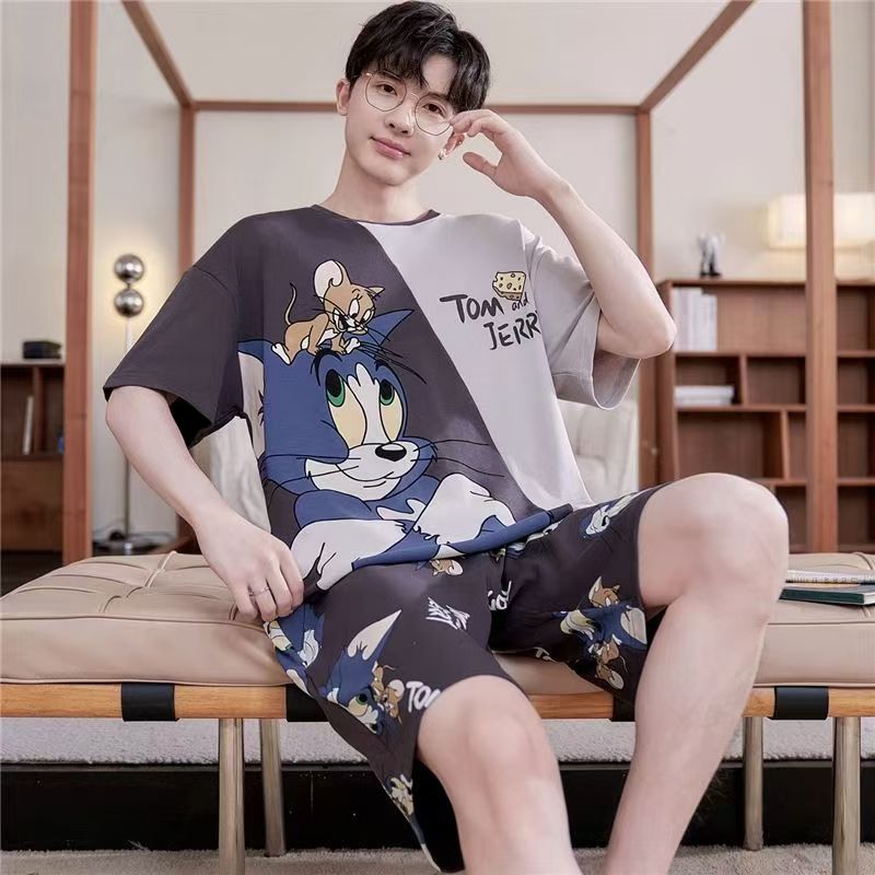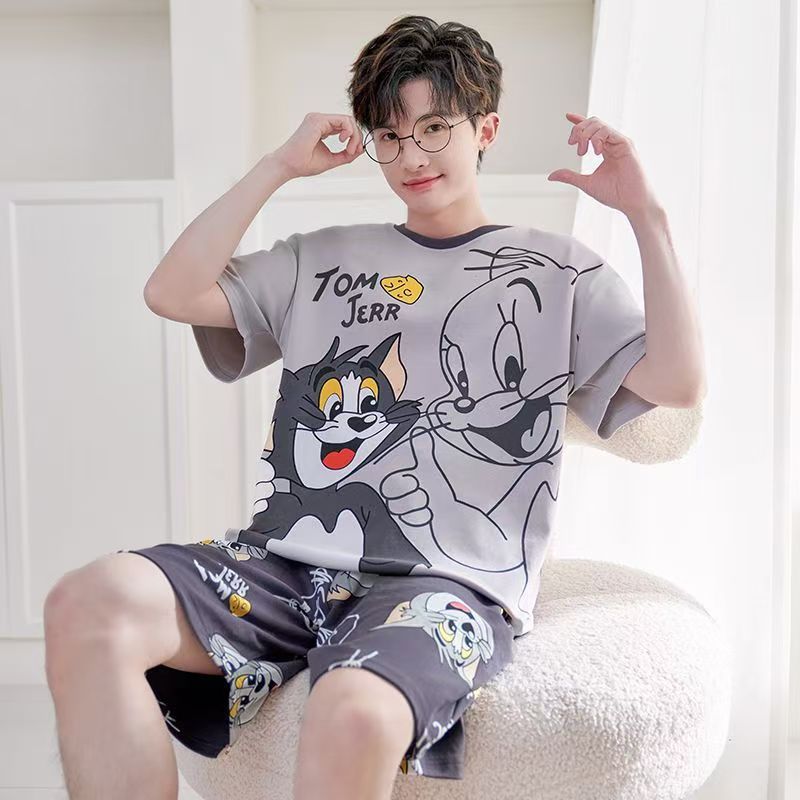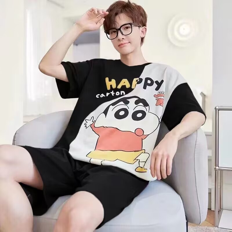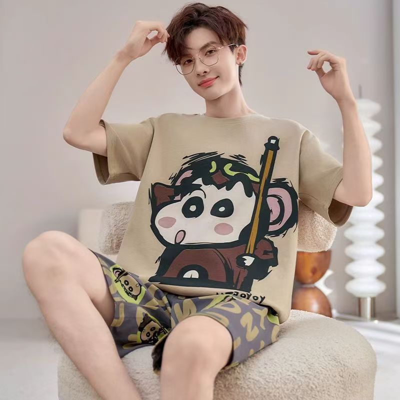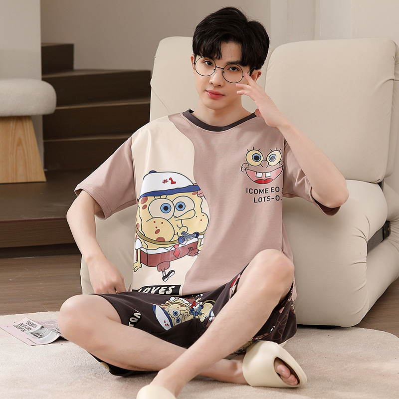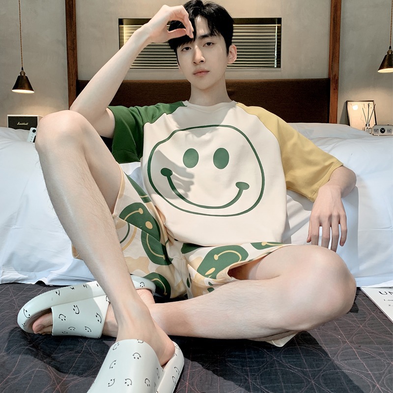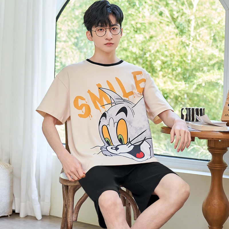 Пижамы мужские с короткими рукавами, тонкие летние повседневные свободные летние большие размеры с круглым вырезом, простой молодежный комплект домашней одежды