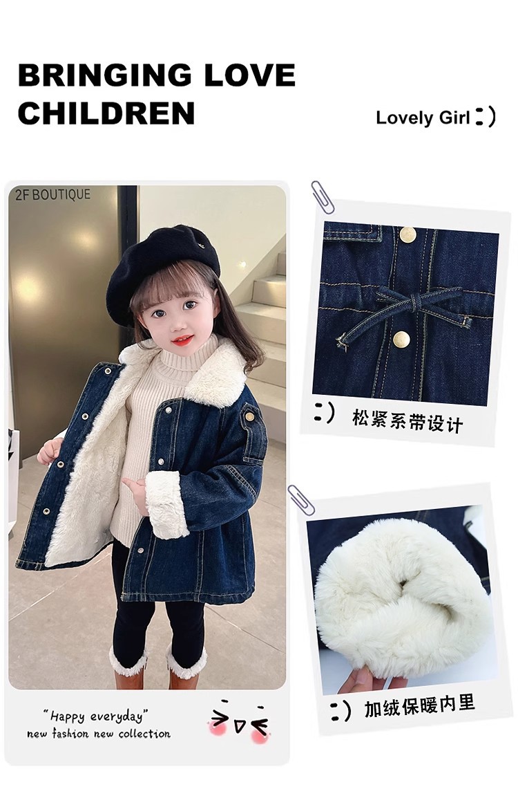 Детская джинсовая куртка из флиса для девочек, осень-зима 2025, новая модная корейская одежда для детей, зимняя куртка для малышек