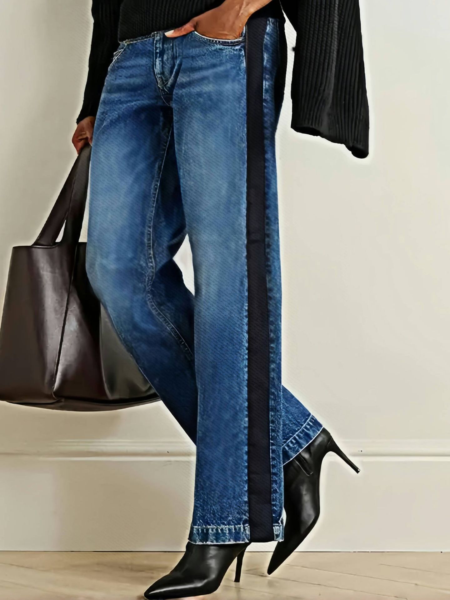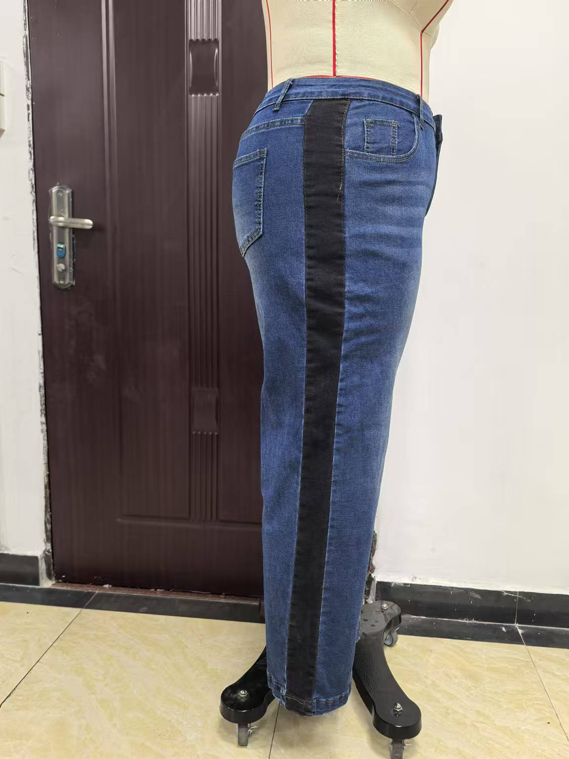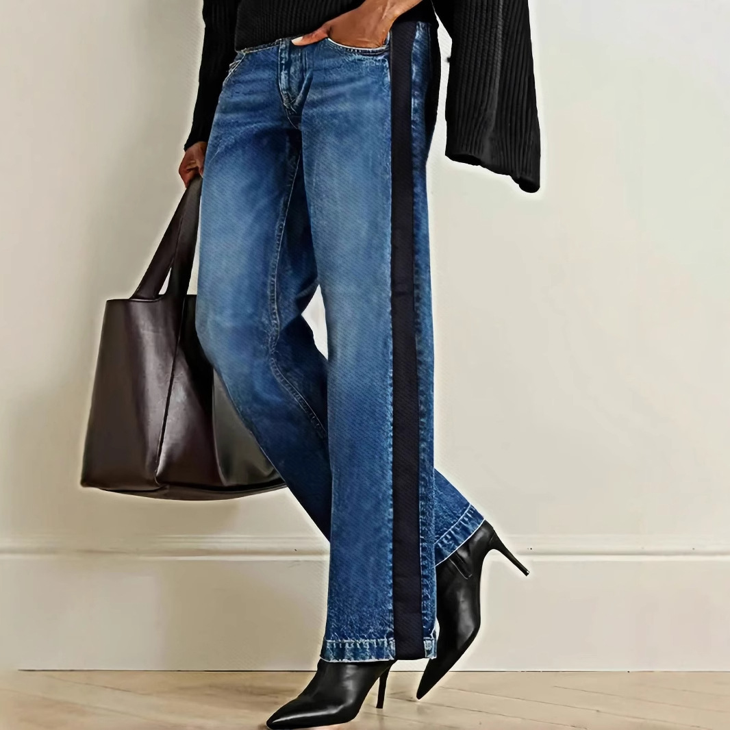 Трансграничные Amazon AliExpress европейские и американские эластичные прямые джинсы большого размера со средней талией, джинсовые брюки контрастного цвета для женщин
