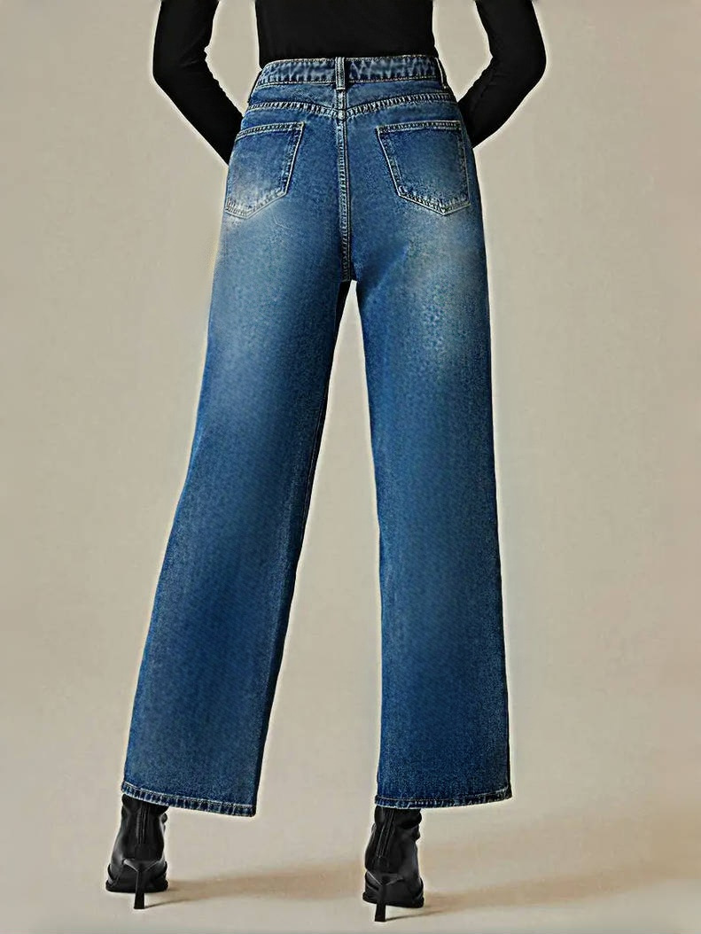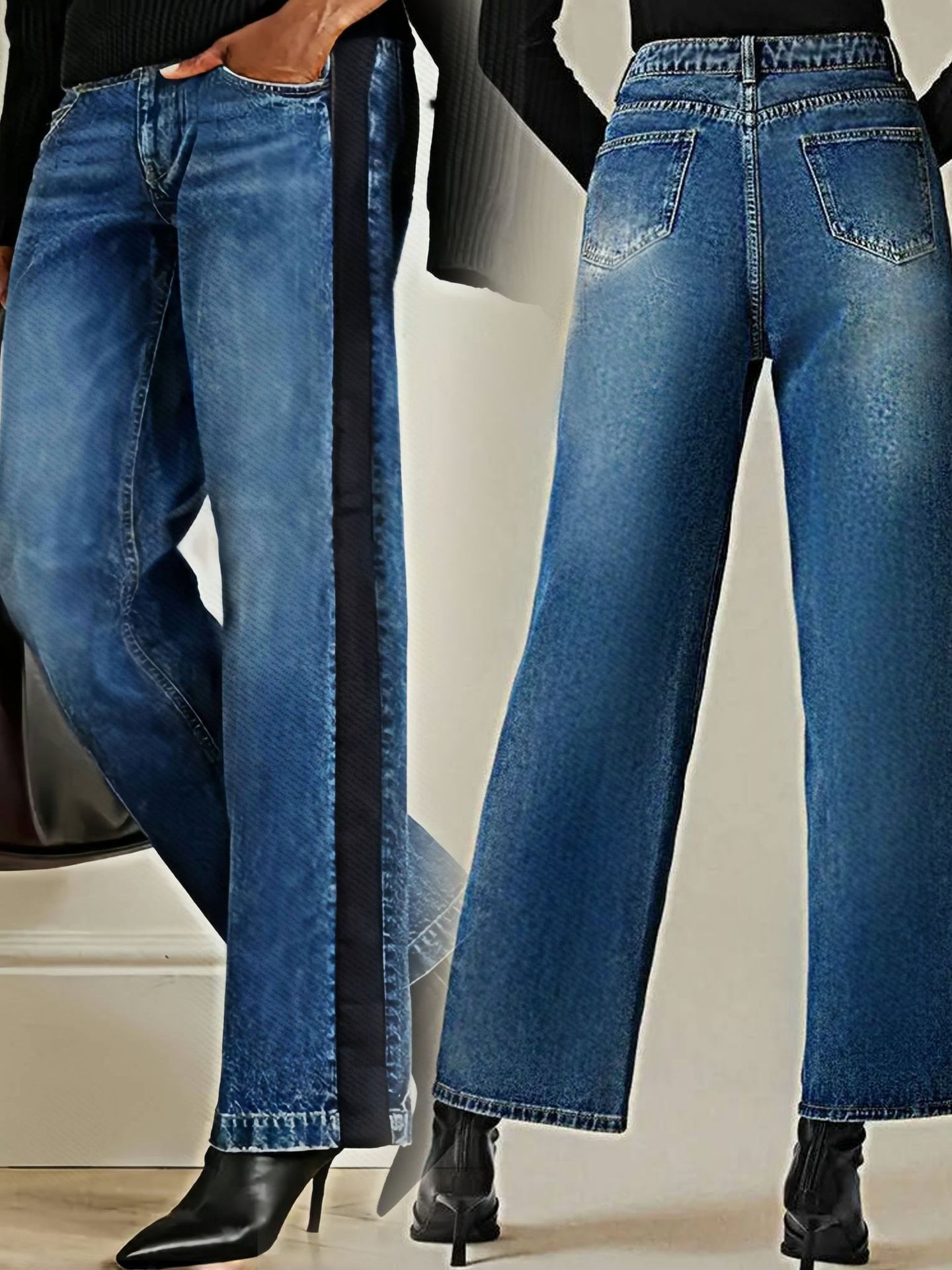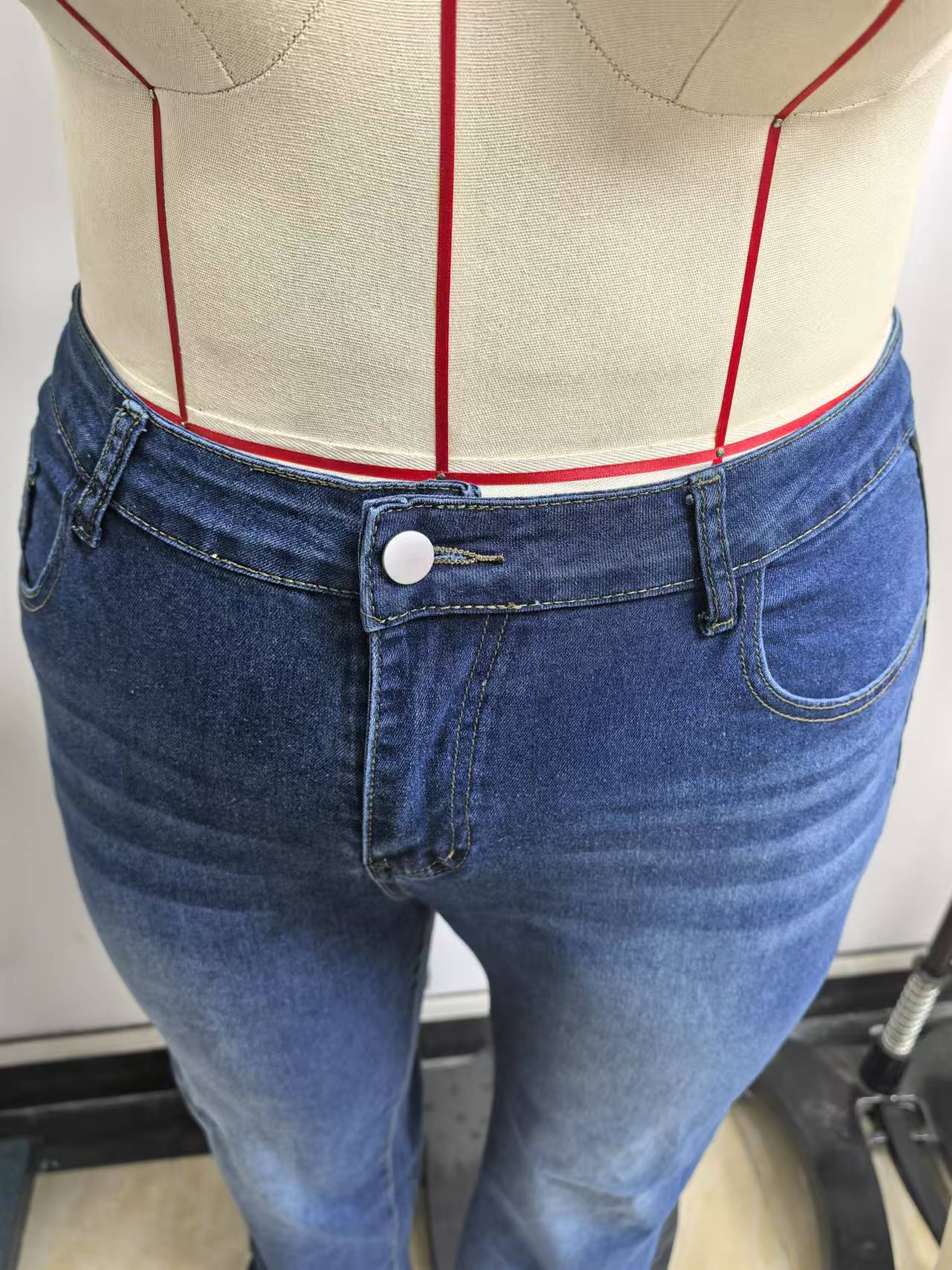 Трансграничные Amazon AliExpress европейские и американские эластичные прямые джинсы большого размера со средней талией, джинсовые брюки контрастного цвета для женщин