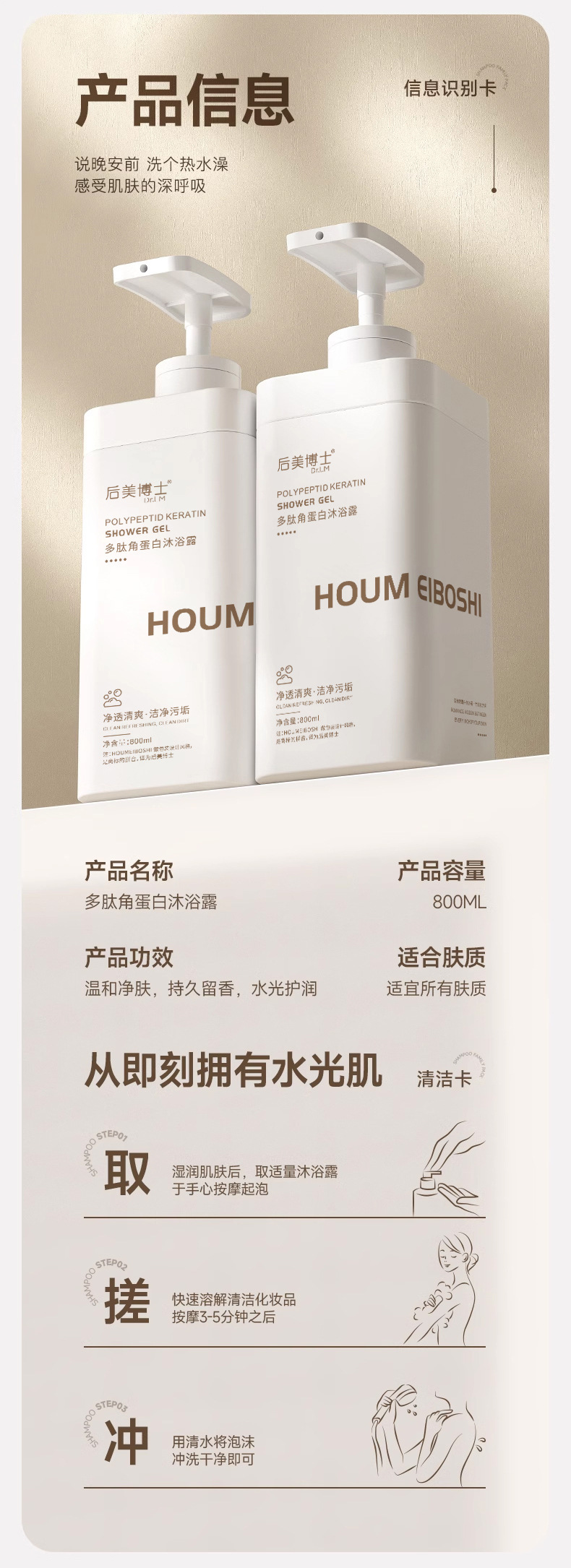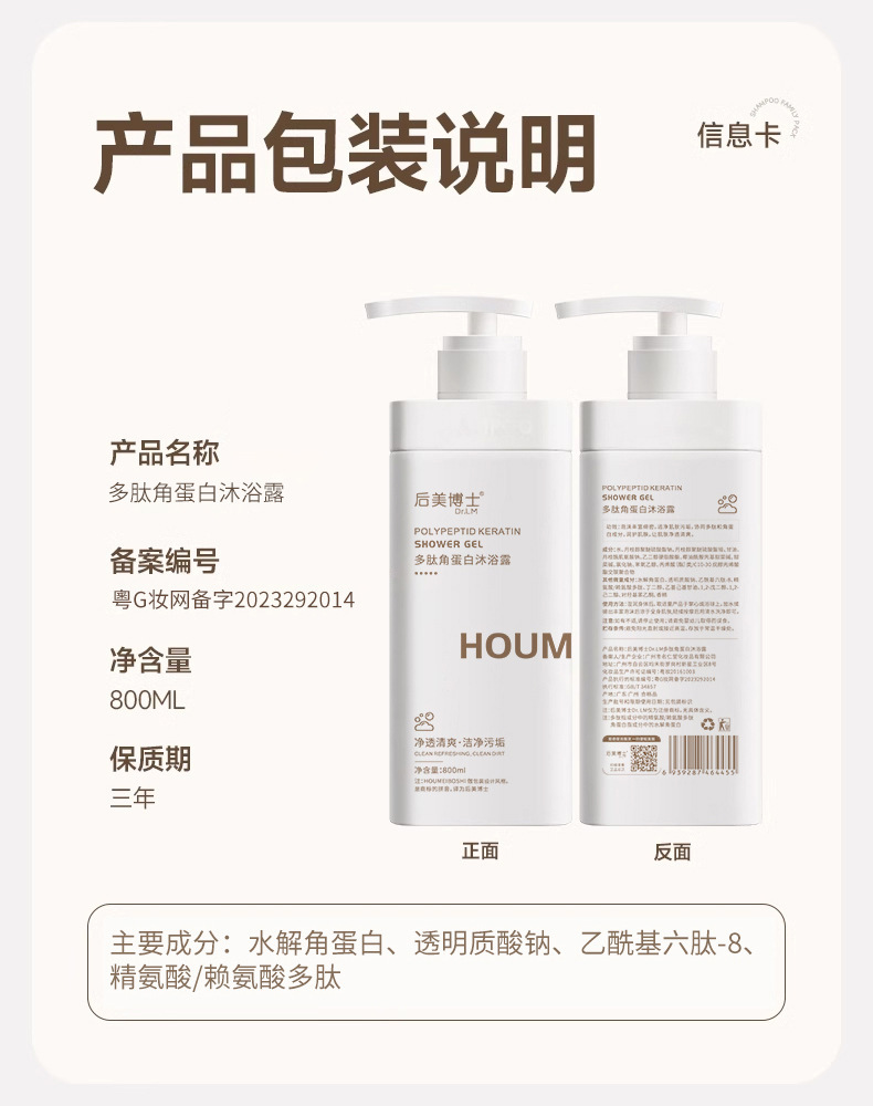 Полипептидный кератиновый шампунь (флакон 800 мл); Полипептидный кератиновый кондиционер (флакон 800 мл); Полипептидный кератиновый гель для душа (флакон 800 мл)
