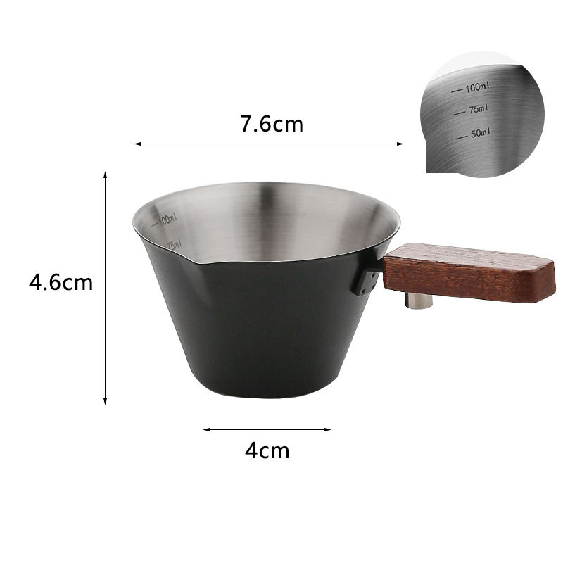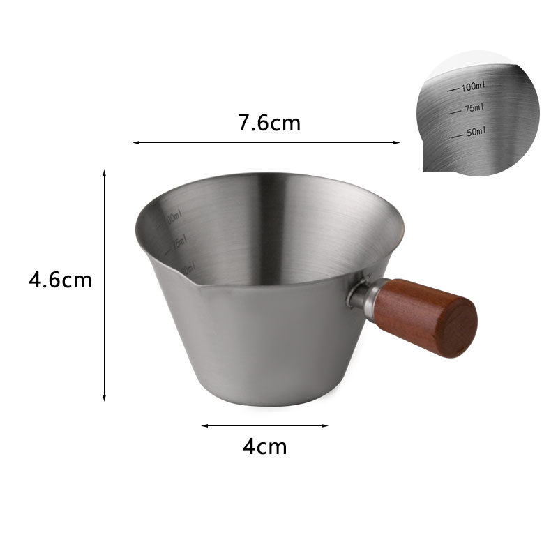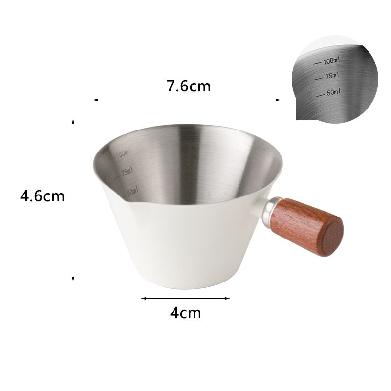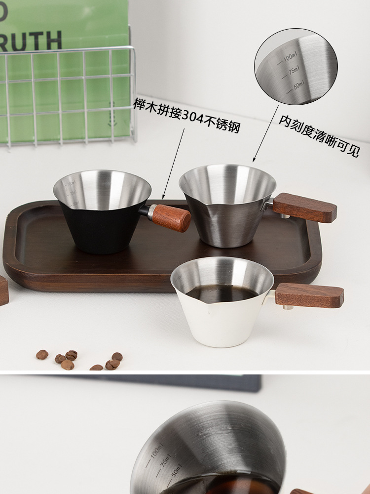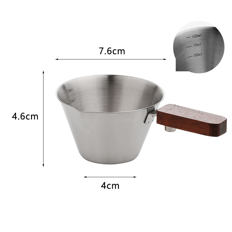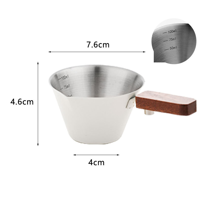 Мерный стаканчик для эспрессо из нержавеющей стали с ручкой из бука и мерной шкалой, маленький кувшин для молока, чашка для экстракции кофе