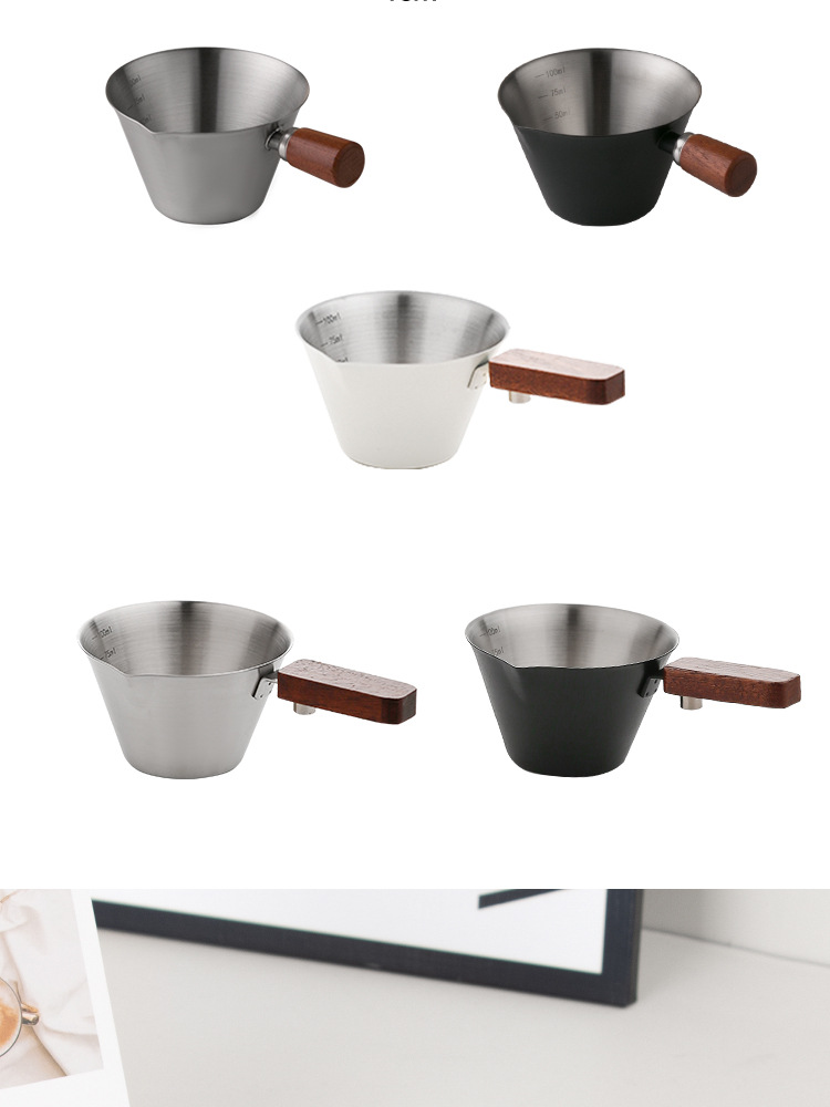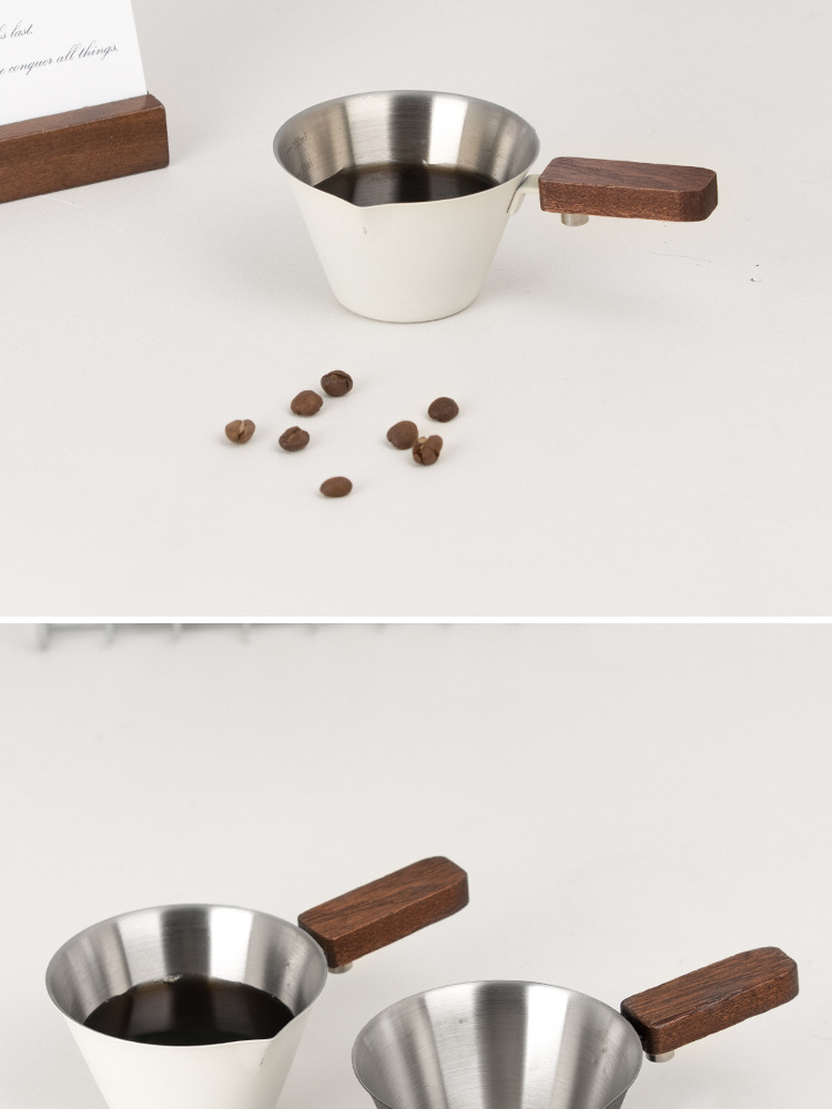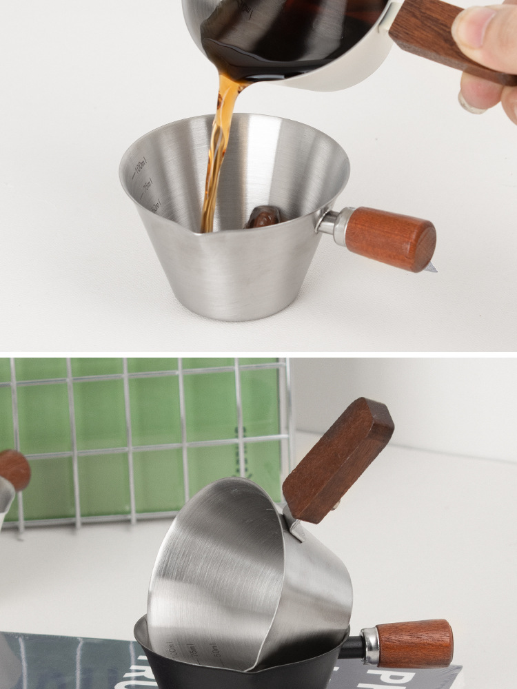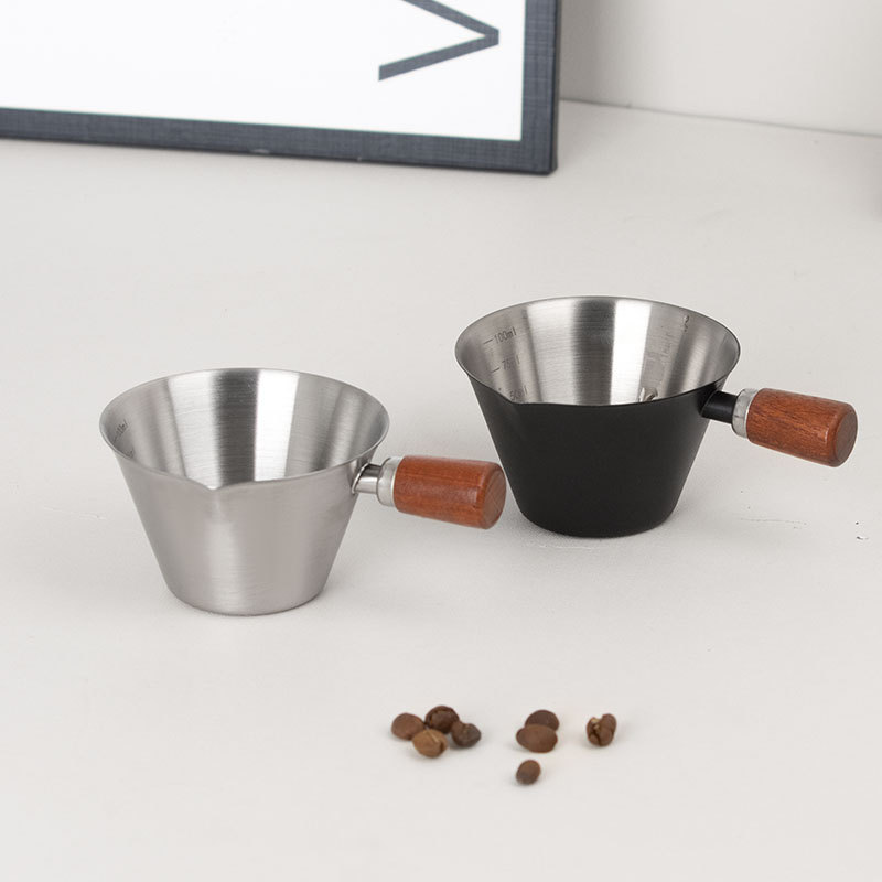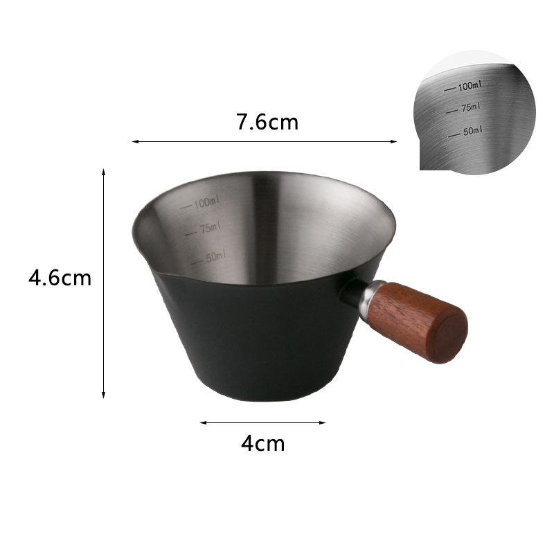 Мерный стаканчик для эспрессо из нержавеющей стали с ручкой из бука и мерной шкалой, маленький кувшин для молока, чашка для экстракции кофе