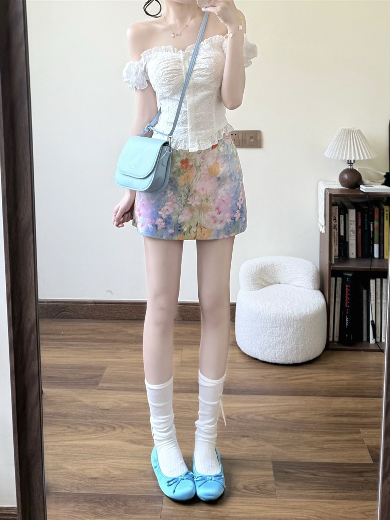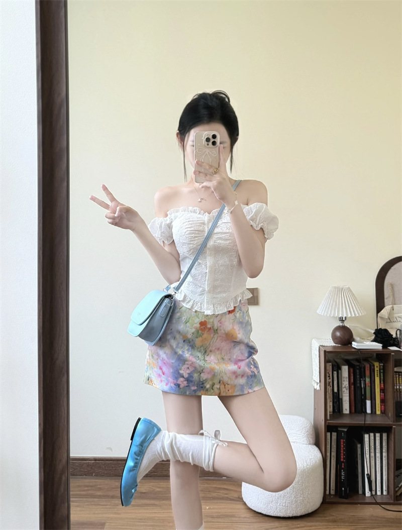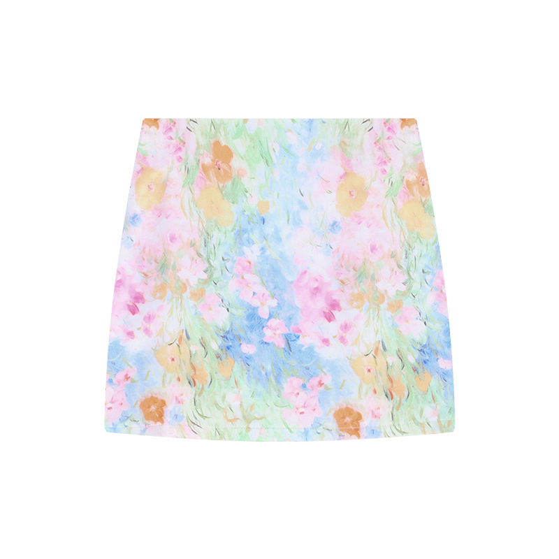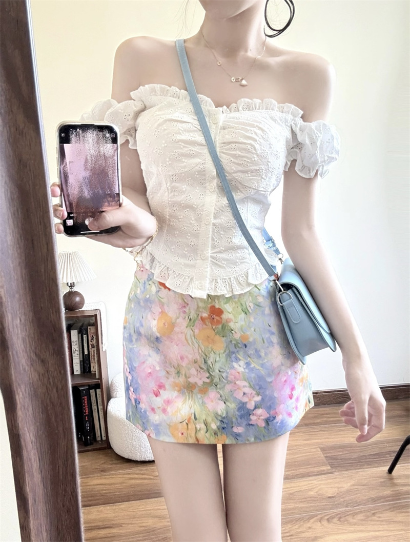 Летний костюм для женщин: короткая рубашка с французским вырезом на талии и юбка-миди с цветочным принтом, закрывающая бедра, комплект из двух предметов.
