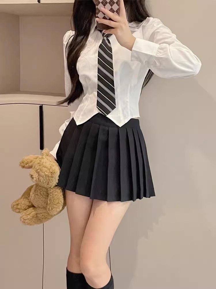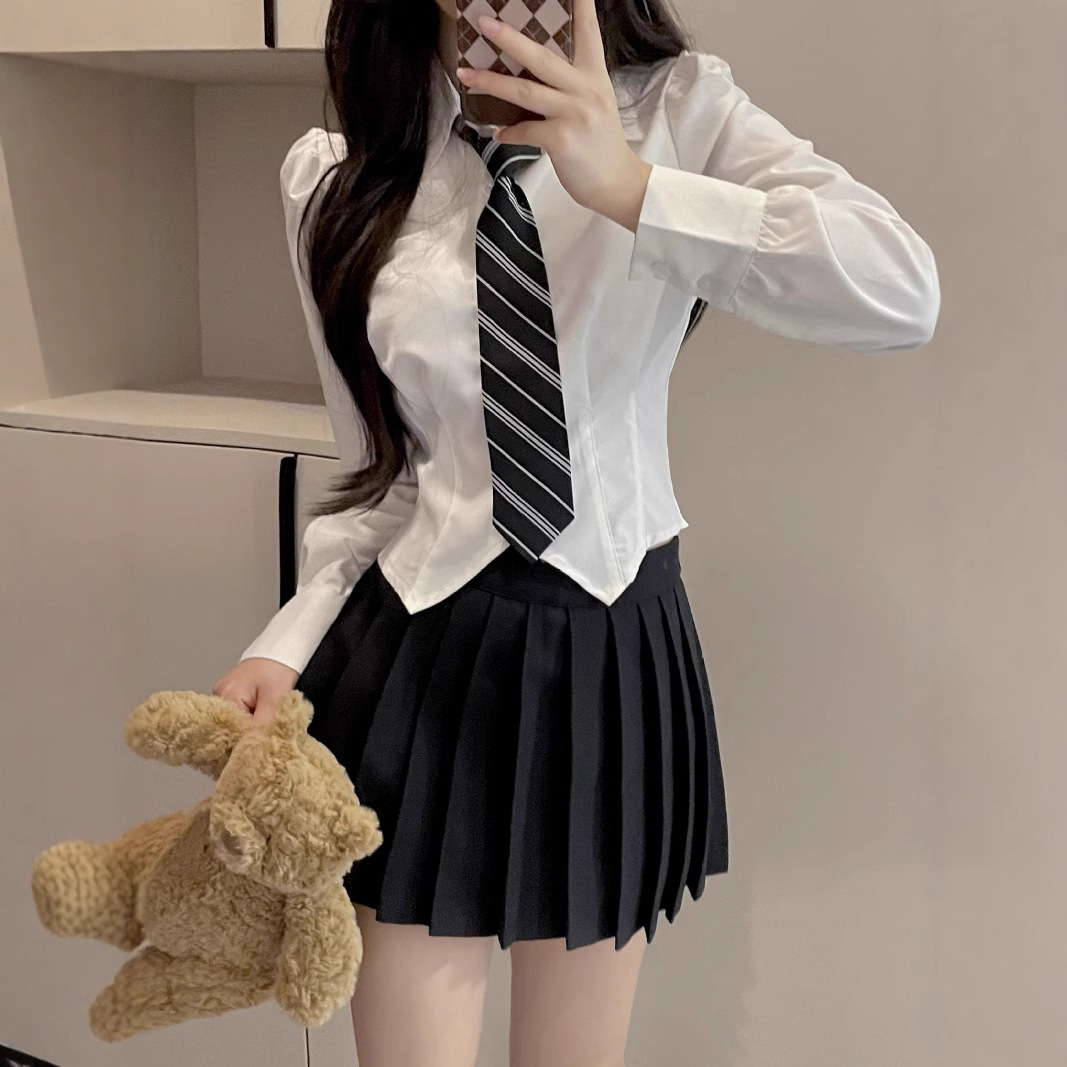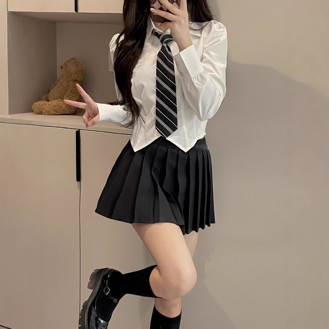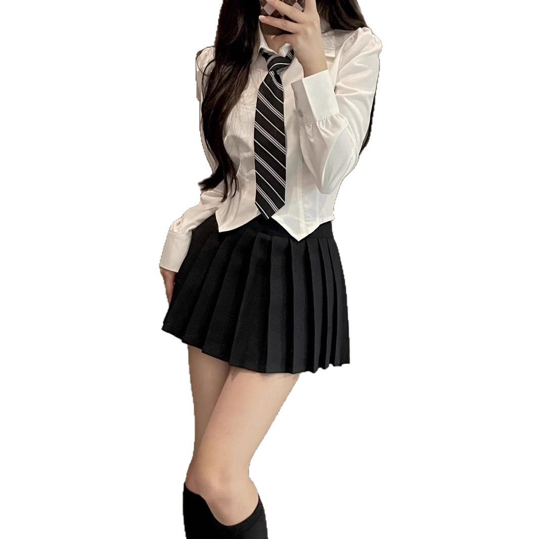 Униформа jk, женский полный комплект, рубашка на талии, топ с короткими рукавами, тонкая юбка в консервативном стиле, белая рубашка, сексуальный костюм