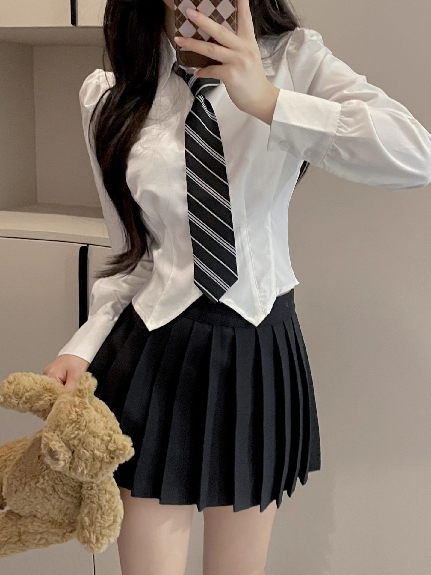 Белая рубашка + черная юбка; белая рубашка; черная юбка