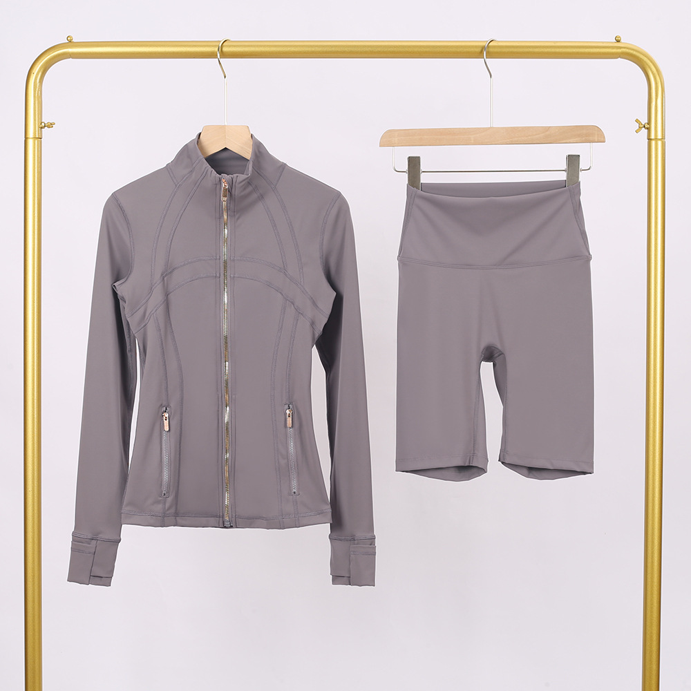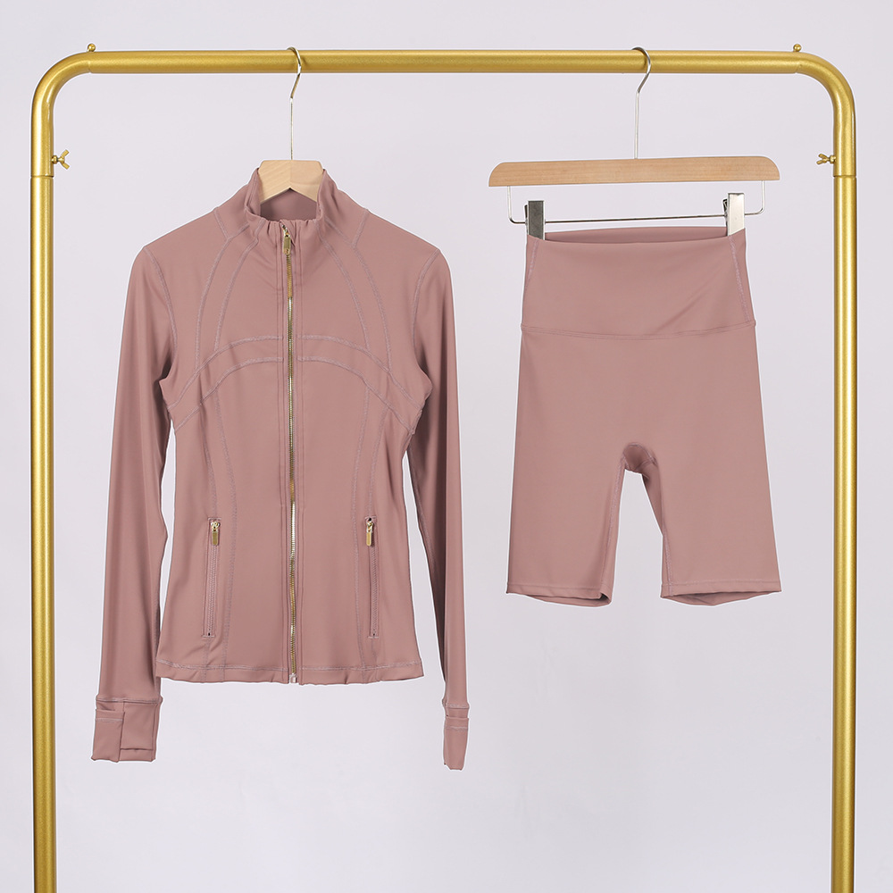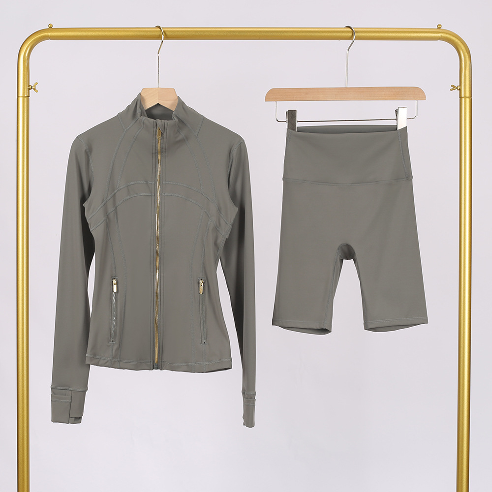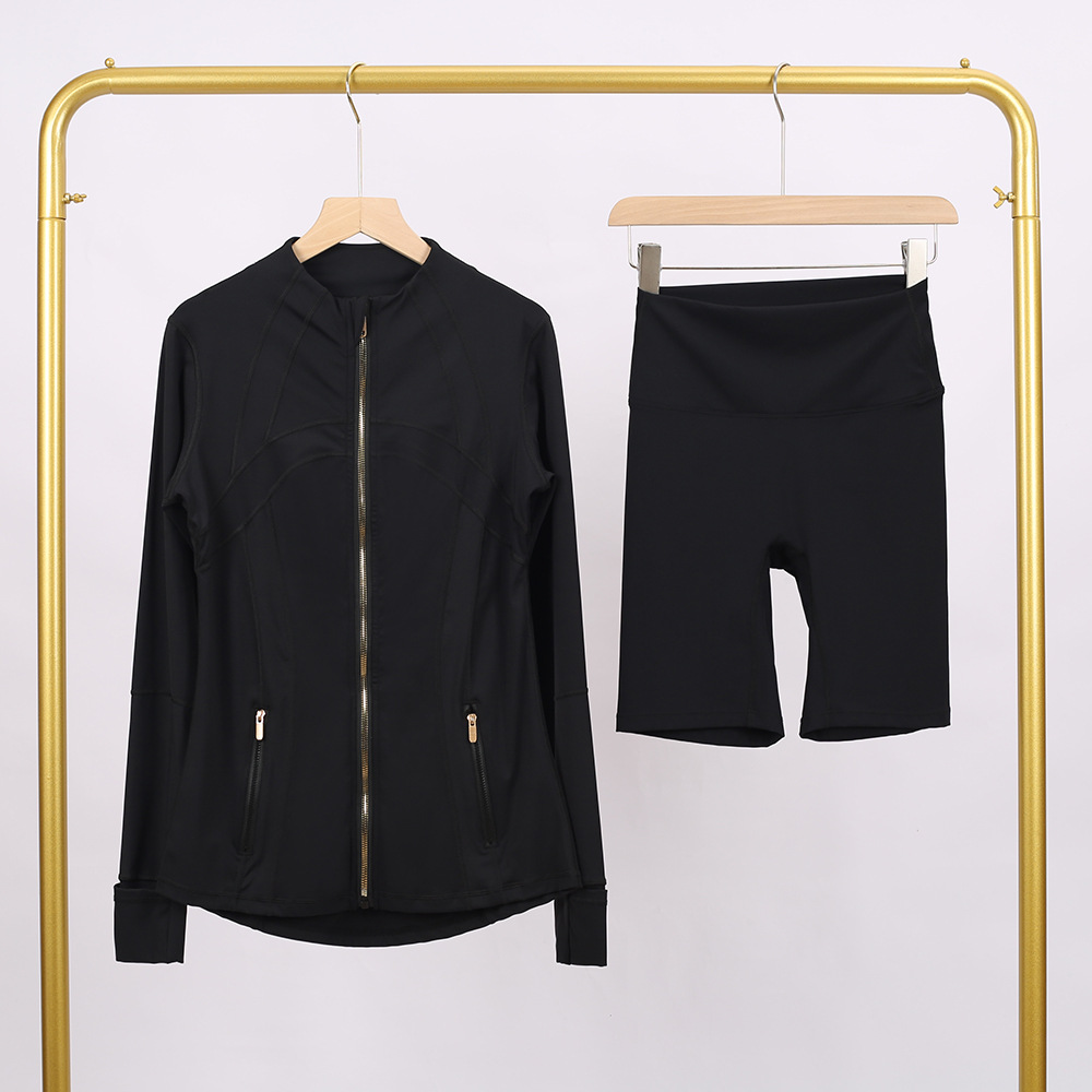 Комплект LULU DF: куртка с воротником-стойкой и брюки-палаццо с золотой молнией, облегающий, эластичный, быстросохнущий, для фитнеса и йоги