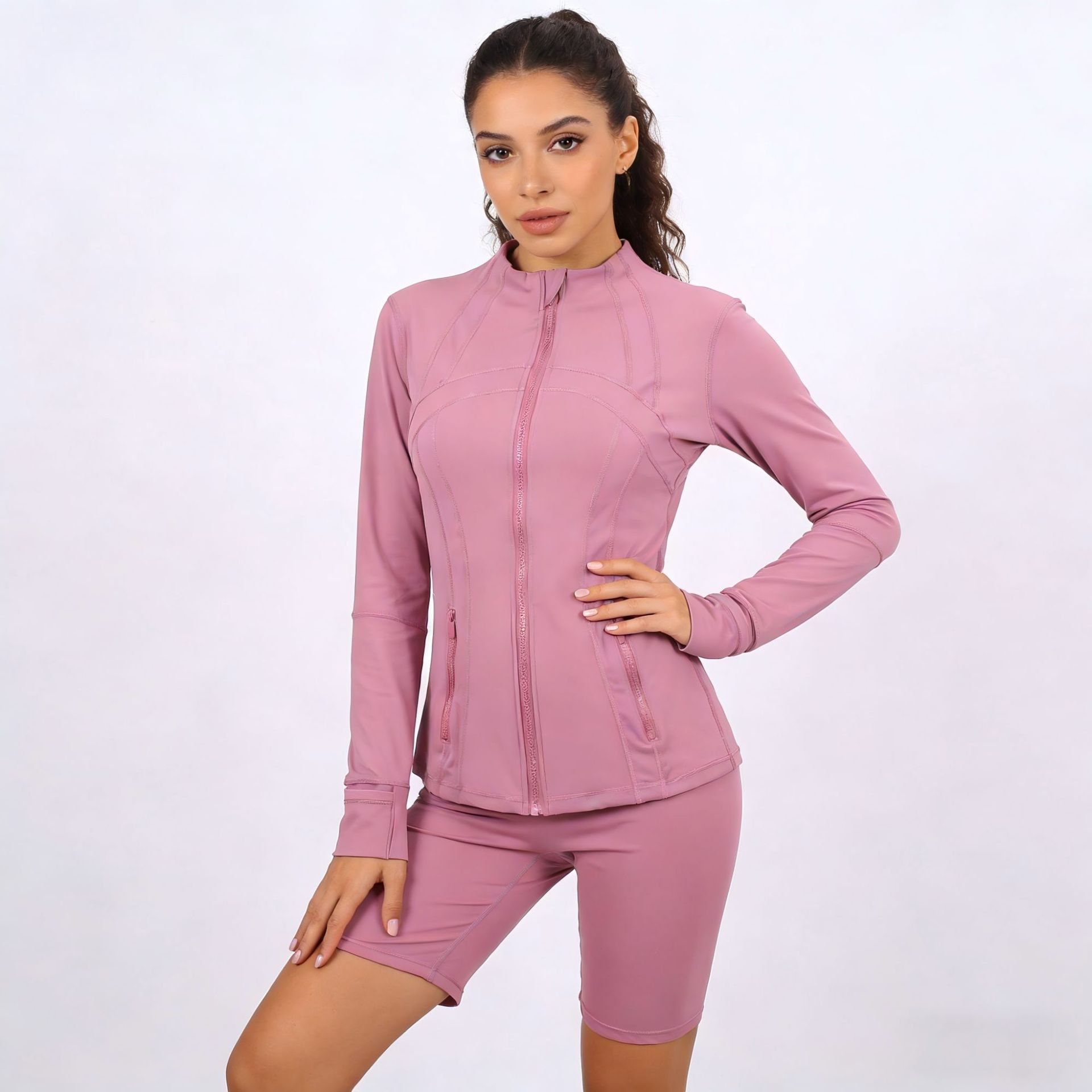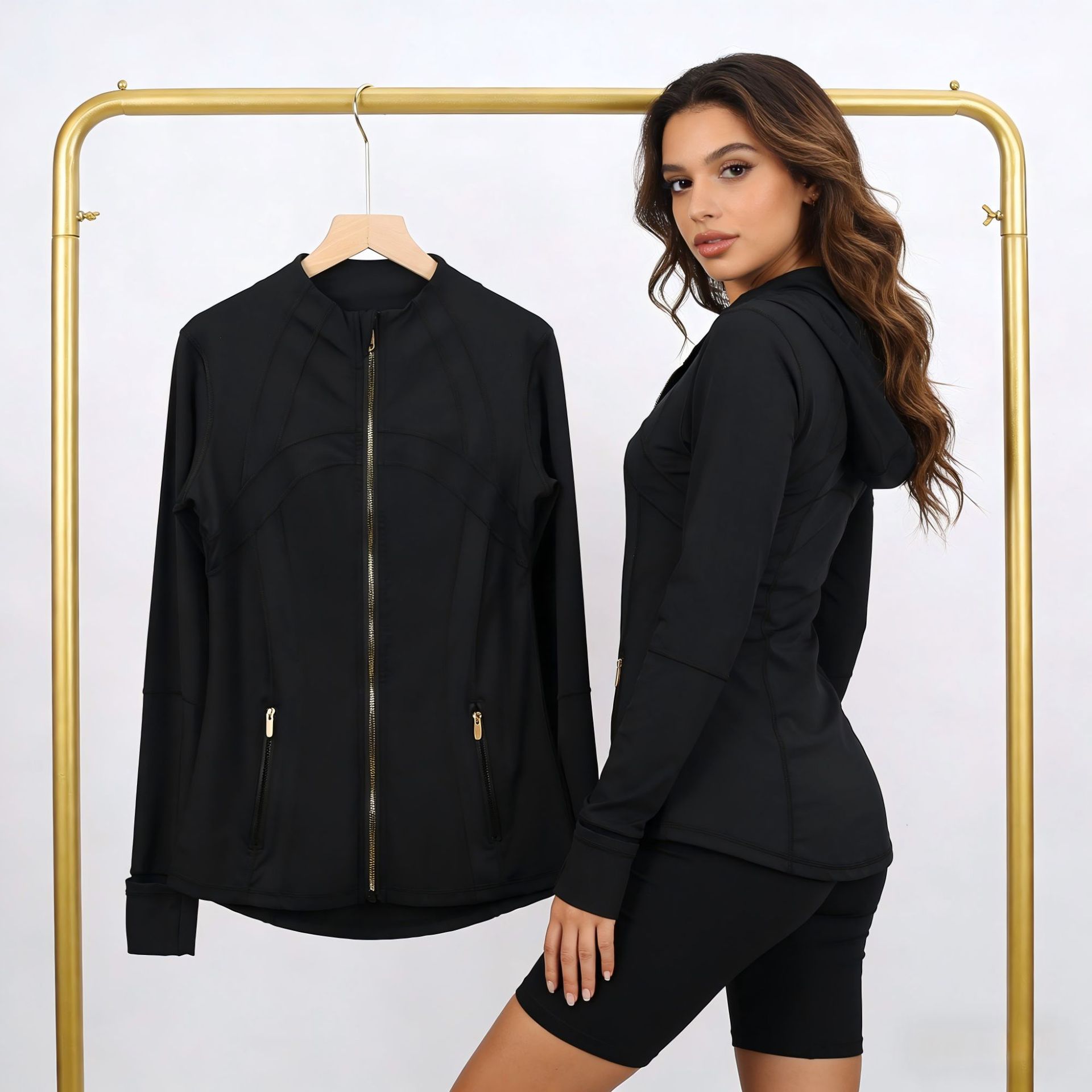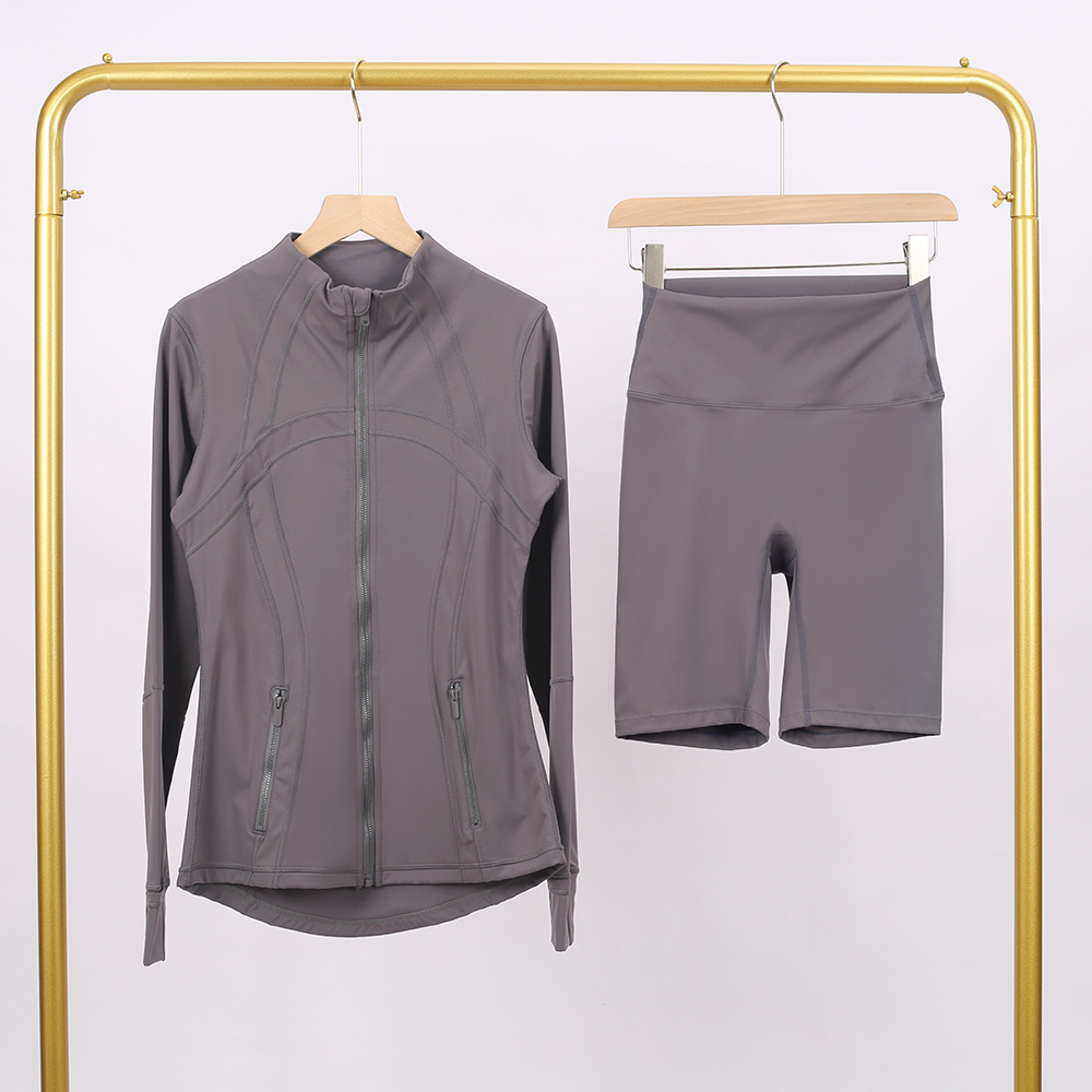 Комплект LULU DF: куртка с воротником-стойкой и брюки-палаццо с золотой молнией, облегающий, эластичный, быстросохнущий, для фитнеса и йоги