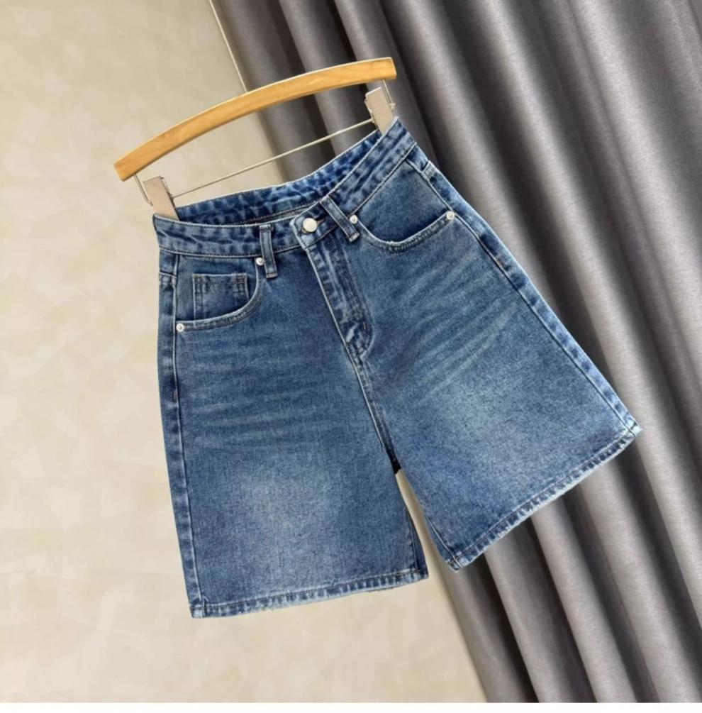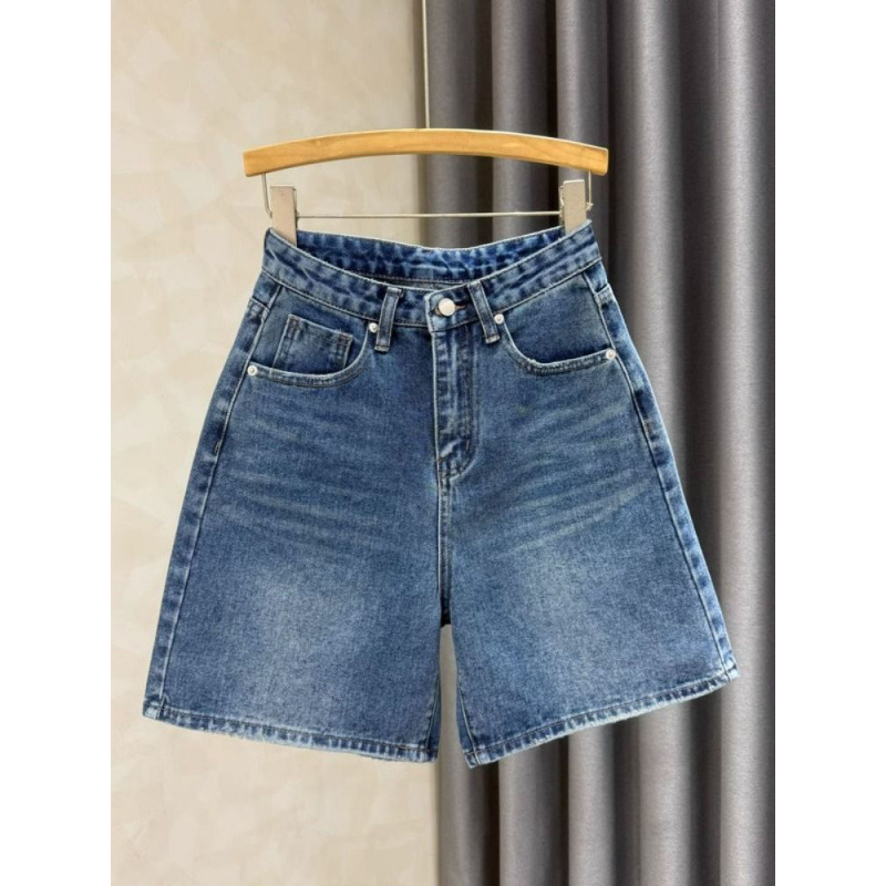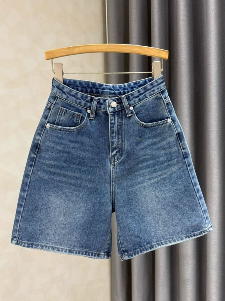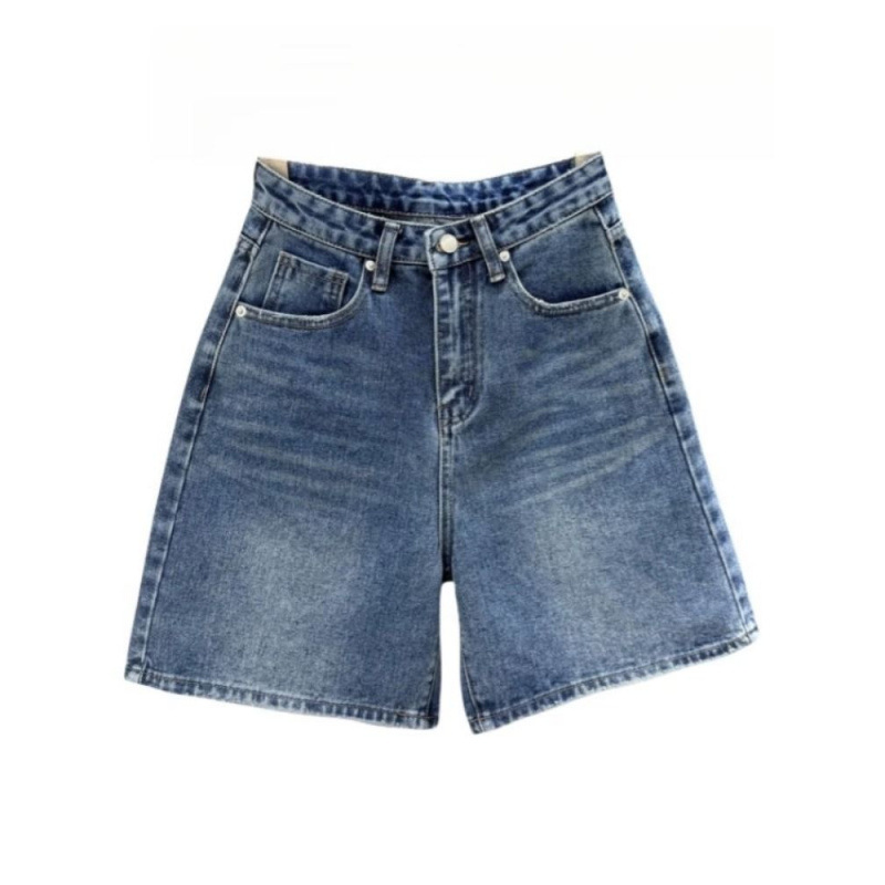 Летние джинсовые шорты для женщин 2025 года, с высокой талией, утягивающие, А-силуэта, синие, универсальные, эластичные, широкие, до колена, модные