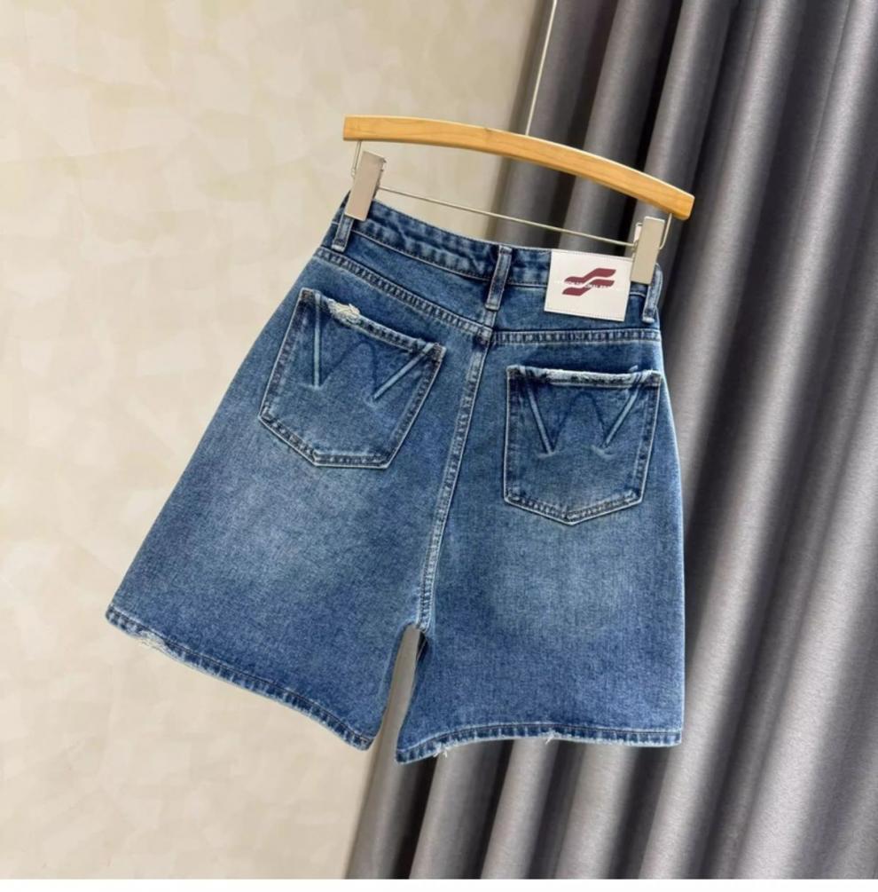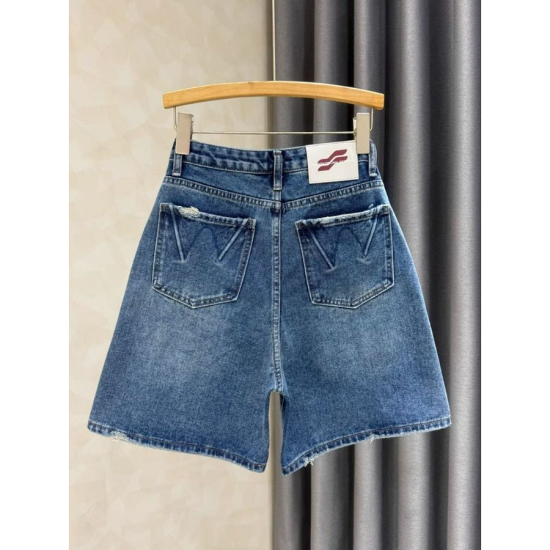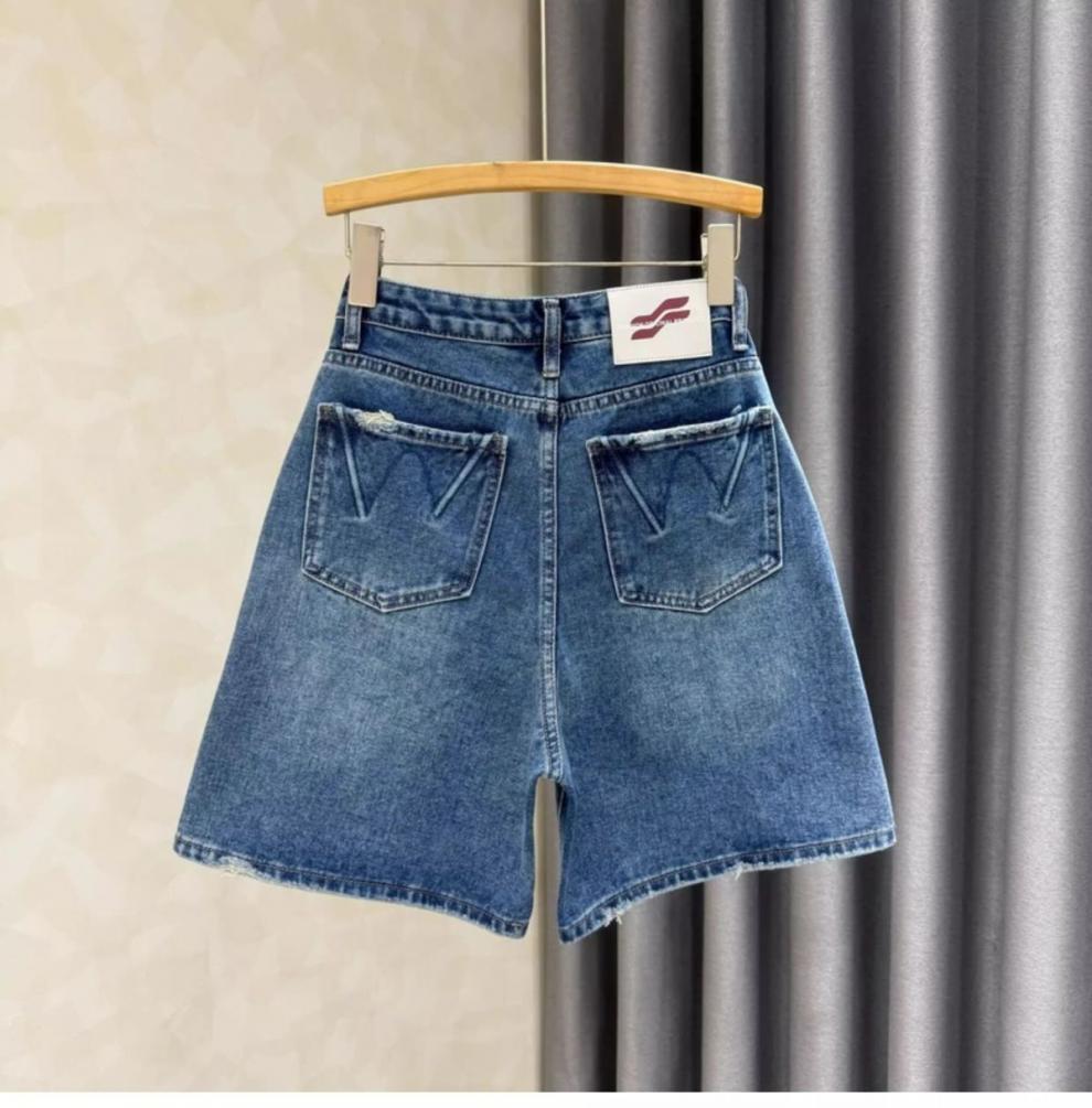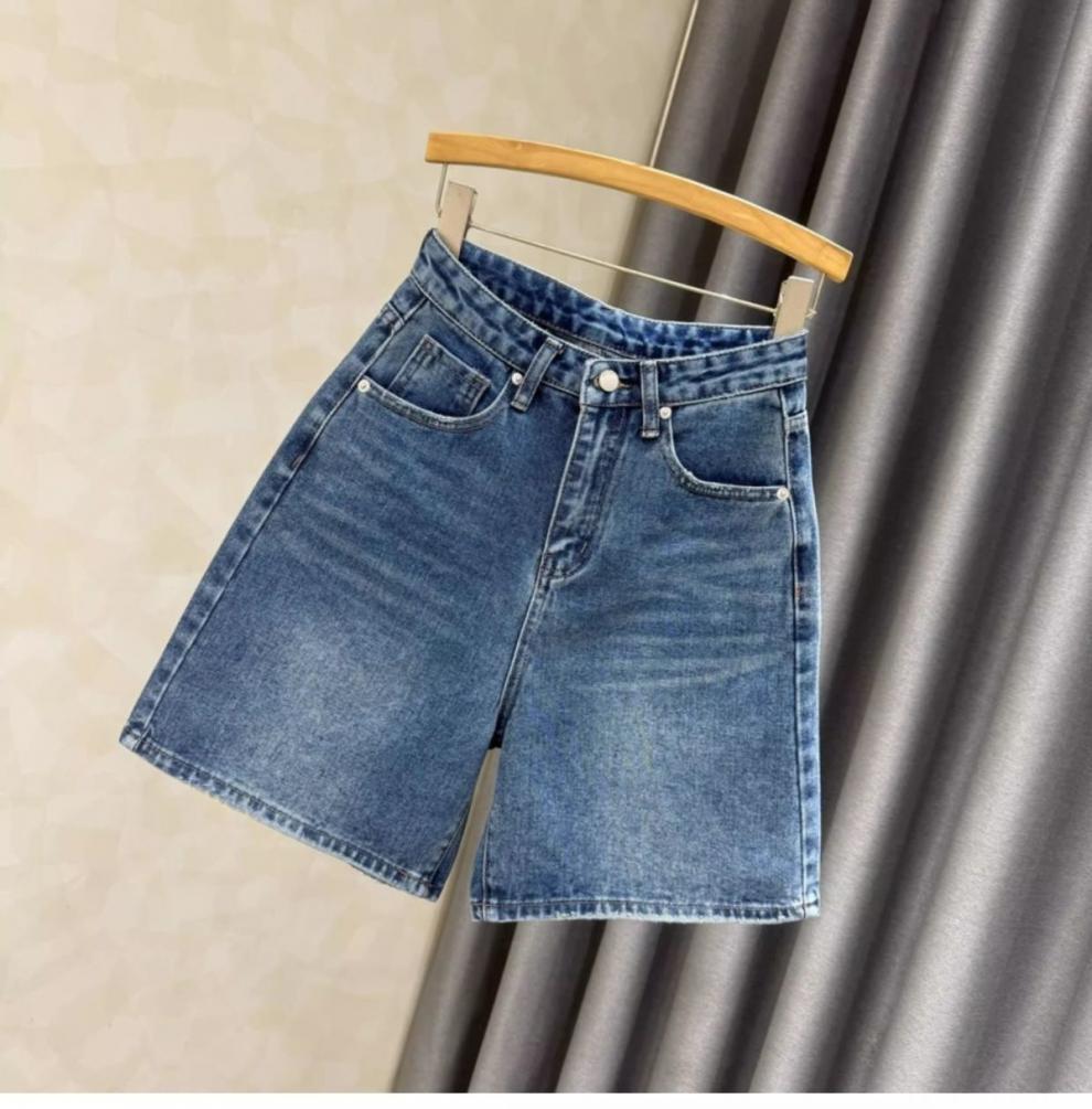 Летние джинсовые шорты для женщин 2025 года, с высокой талией, утягивающие, А-силуэта, синие, универсальные, эластичные, широкие, до колена, модные