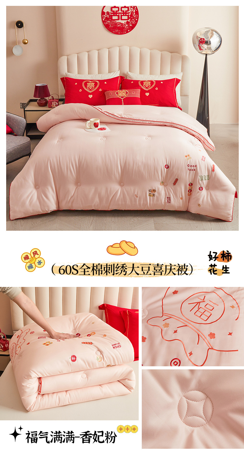 Свадебное полностью хлопковое розовое одеяло для молодоженов, сердцевина одеяла из соевого волокна, одеяло невесты для выхода в свет, утолщенное зимнее одеяло для двоих.