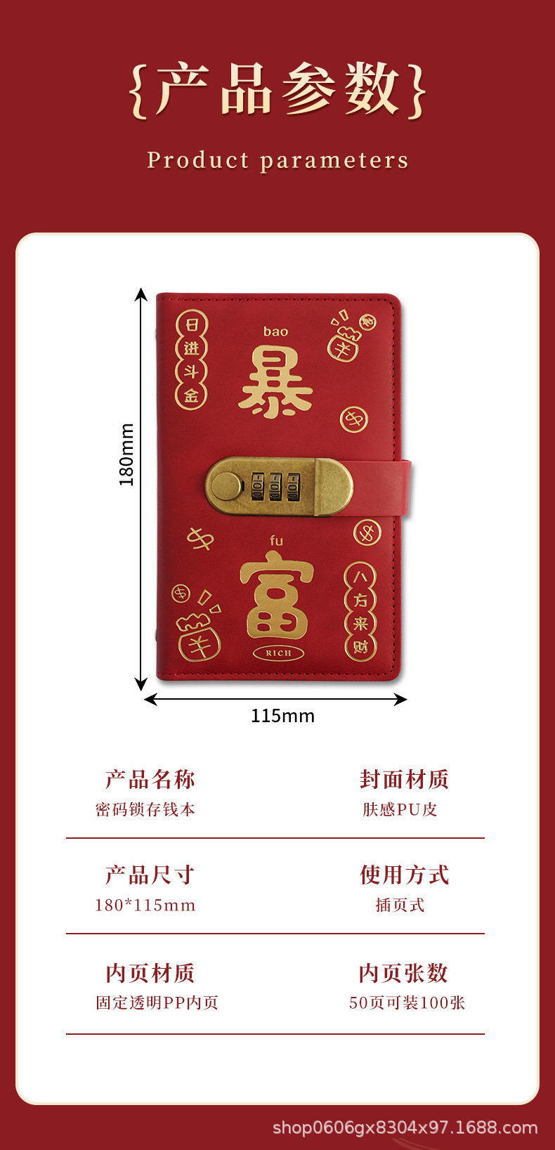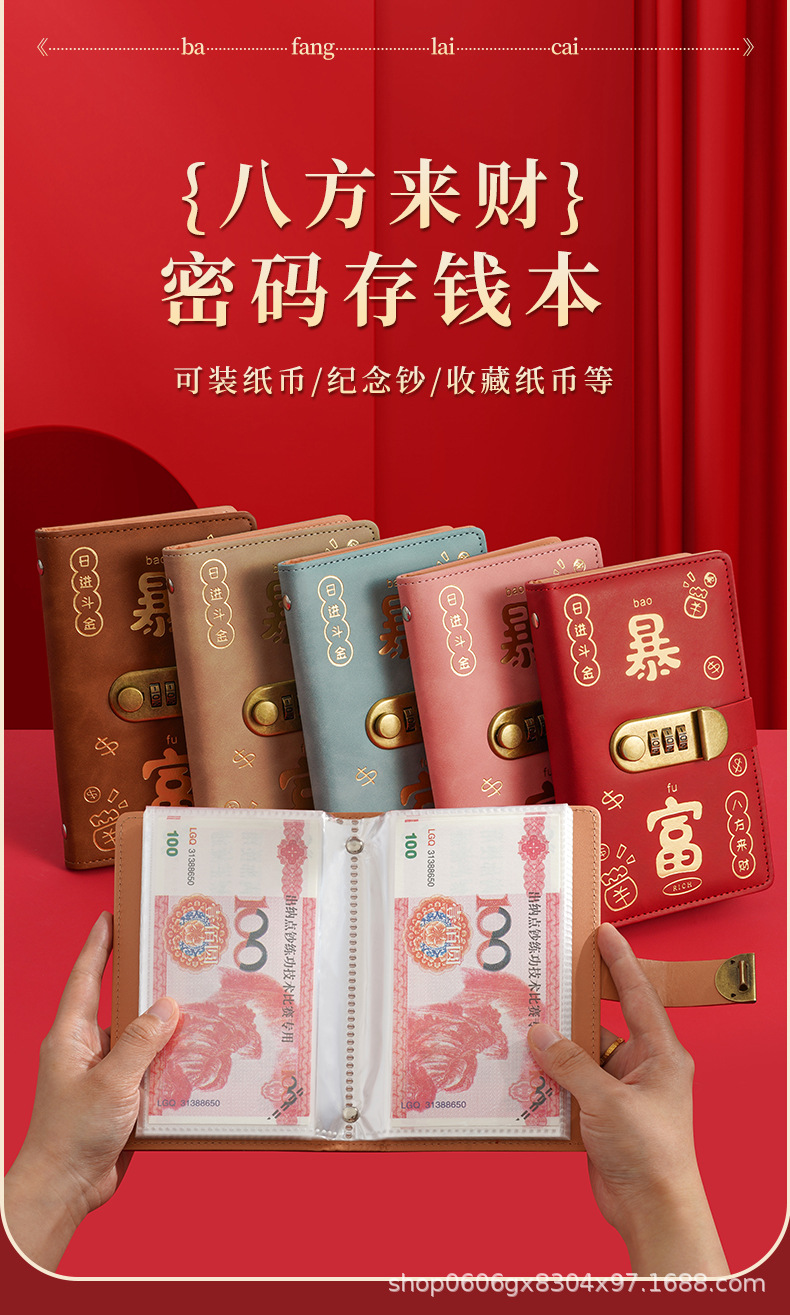 Зажим для денег, книга для денег, парольный замок, книга для наличных денег, большая емкость, книга для сбора банкнот в юанях, книга для хранения банкнот
