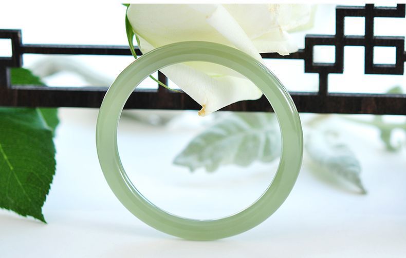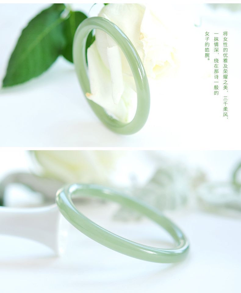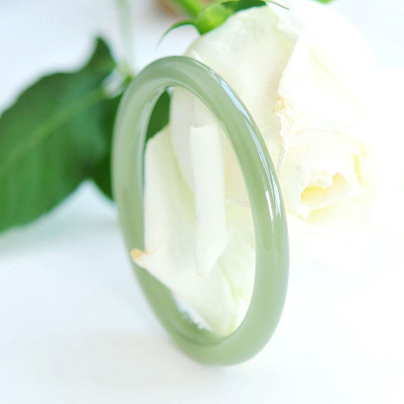 [Нефрит Хэтянь] Тонкий круглый браслет из нефрита Хэтянь содалит, натуральный браслет из зеленого и белого нефрита Синьцзяна, нефритовый браслет для девочек