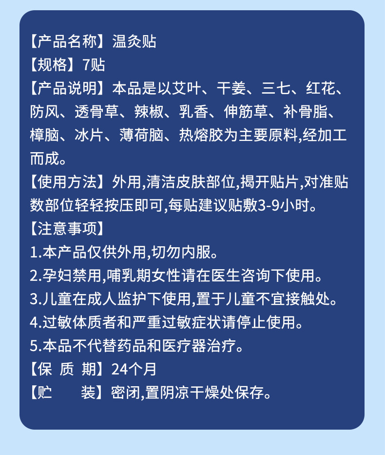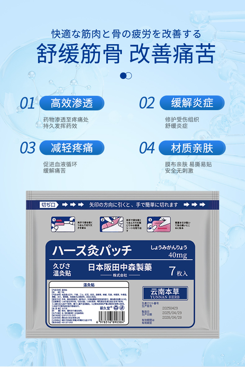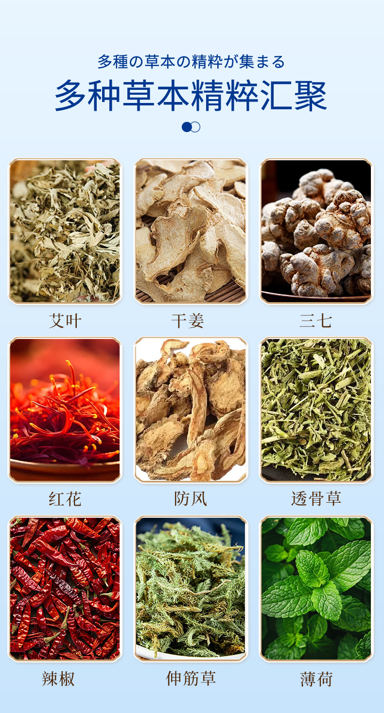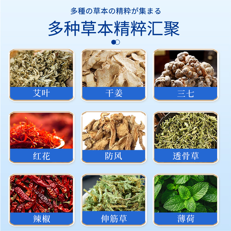 Японские теплые пластыри для прижигания [7 пластырей в упаковке]; Пластыри с глюкозамином и хондроитином (с эффектом тепла) 7 пластырей в упаковке; Пластыри с глюкозамином и хондроитином (5 пластырей); Графеновый пластырь с коллагеном и глюкозамином (5 пластырей в упаковке); Пластыри с пустырником, сафлором и Panax Notoginseng (8 пластырей); Менструальный регулирующий и согревающий патч для области таза (6 штук); Обновленная версия — менструальный регулирующий и согревающий патч для пупочного области (6 патчей); Патчи «Драконий ребро» с изображением черного тигра (20 штук); Золотая пластырь из змеиной кости с пятью ядрами (5 пластырей); Наклейки с изображением рукопожатия; Пластырь от головной боли; Армейский зеленый (маленький) (5 пластырей + 5 таблеток/коробка); Армейский зеленый (большой размер) (5 наклеек/коробка); Пластырь для сжигания жира на животе (большой размер) (3 пластыря + 3 таблетки/упаковка)