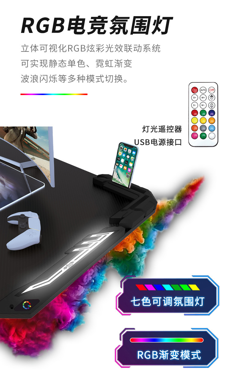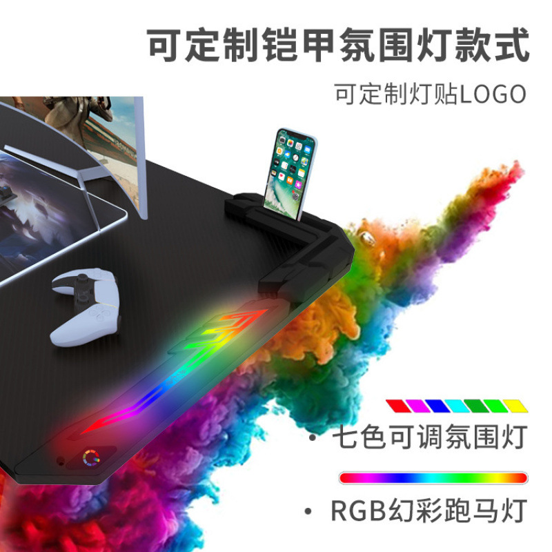 RGB атмосферная подсветка, стол для киберспорта из углеродного волокна, интернет-кафе, светодиодный игровой компьютерный стол, комнатный настольный компьютер для киберспорта, домашний стол для киберспорта