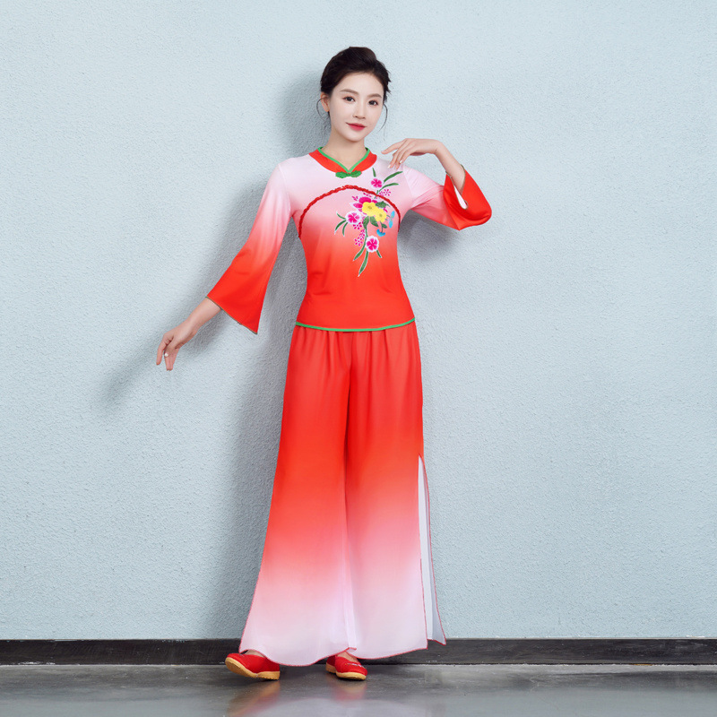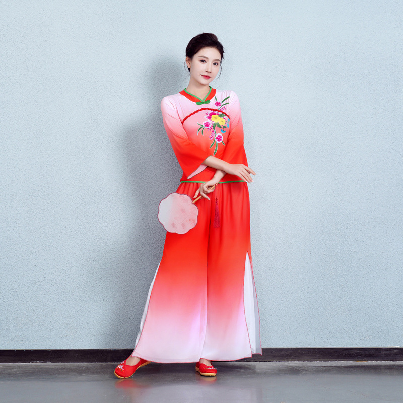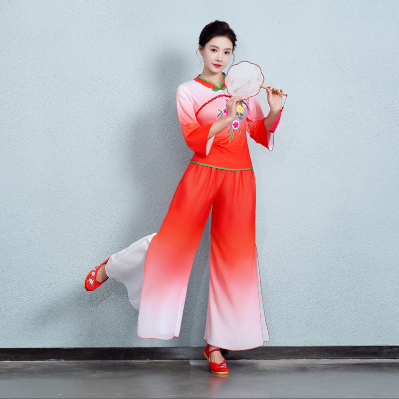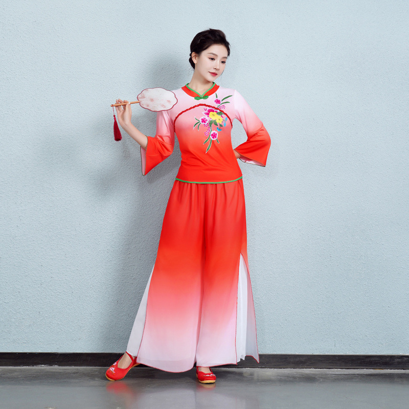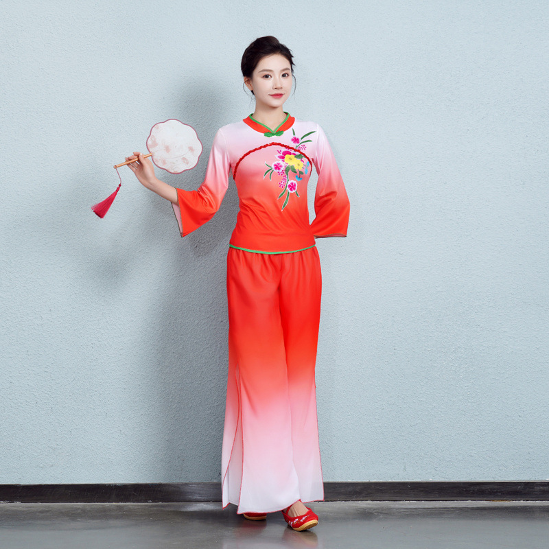 Новая одежда для танцевальных представлений для людей среднего и пожилого возраста, танец вееров, барабанный танец, танцевальная одежда янко, одежда для классических танцев в китайском стиле.