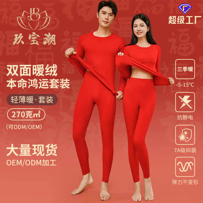 Индивидуальный комплект термобелья на год по знаку зодиака, красная теплая осенняя одежда для пар, топы и брюки с длинными рукавами для мужчин и женщин, осенне-зимняя нижняя одежда.