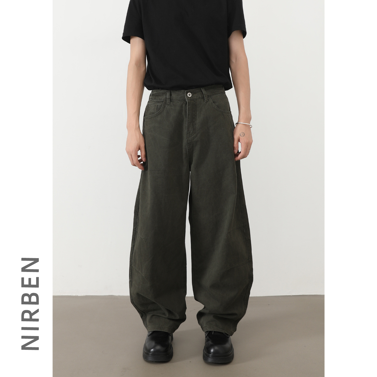 Нирбен Ковбой | Американские джинсы с полуэластичной талией, мужские модные прямые повседневные брюки
