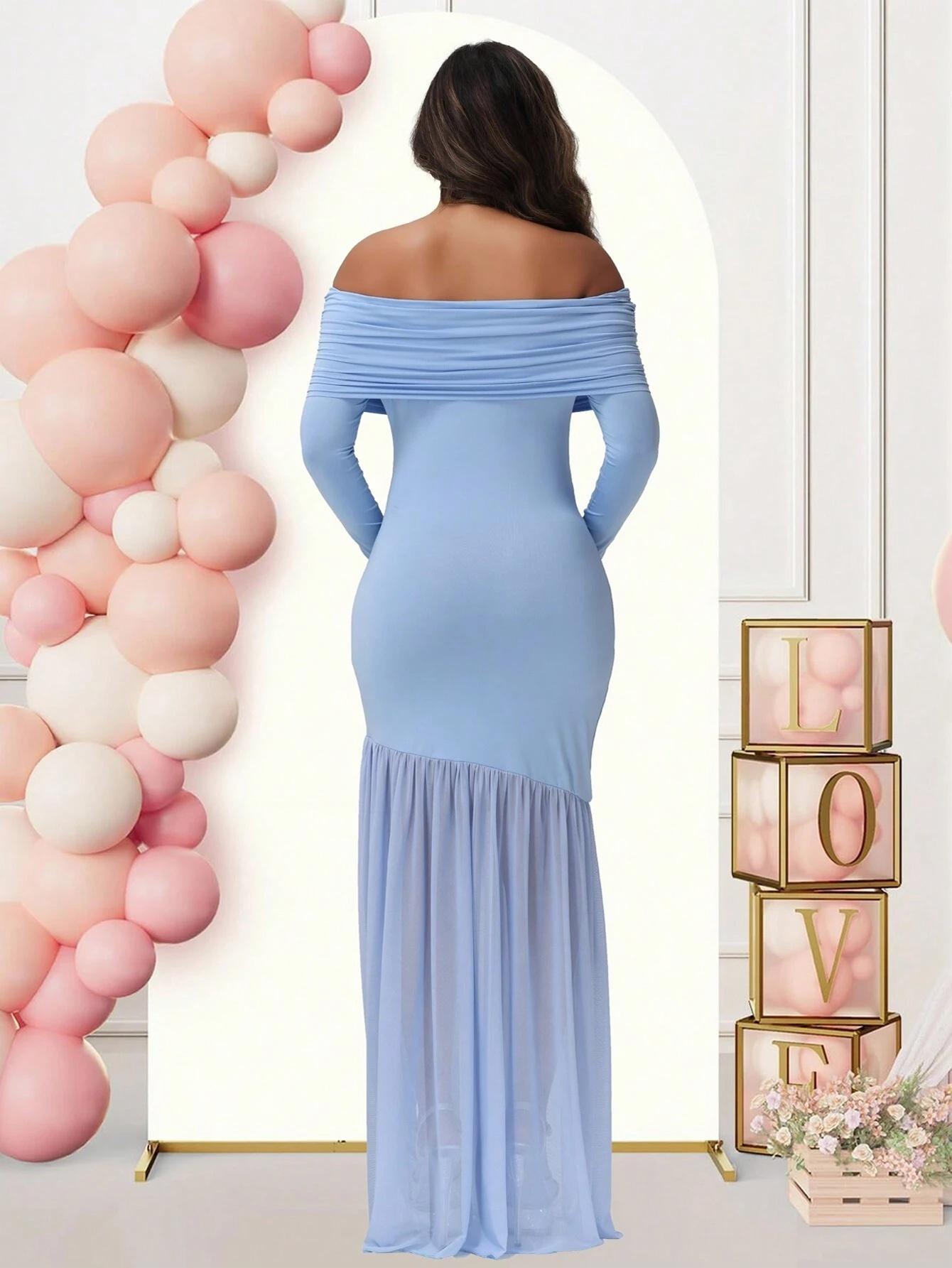 Европейская и американская одежда для беременных, платье для беременных с длинными рукавами на одно плечо, элегантное облегающее платье с сетчатой вставкой, закрывающее бедра, платье для беременных
