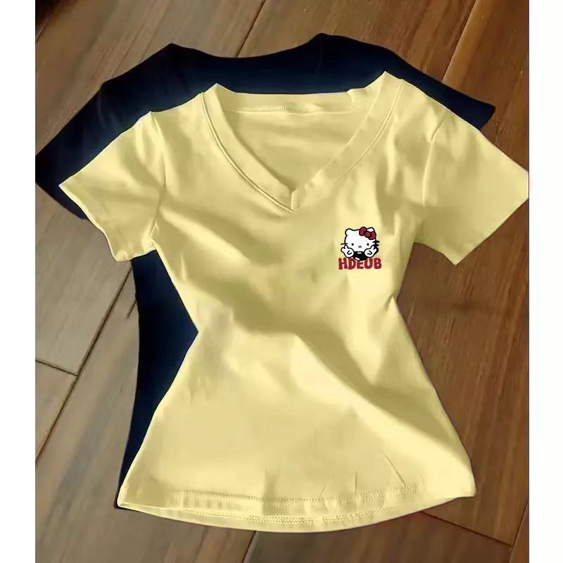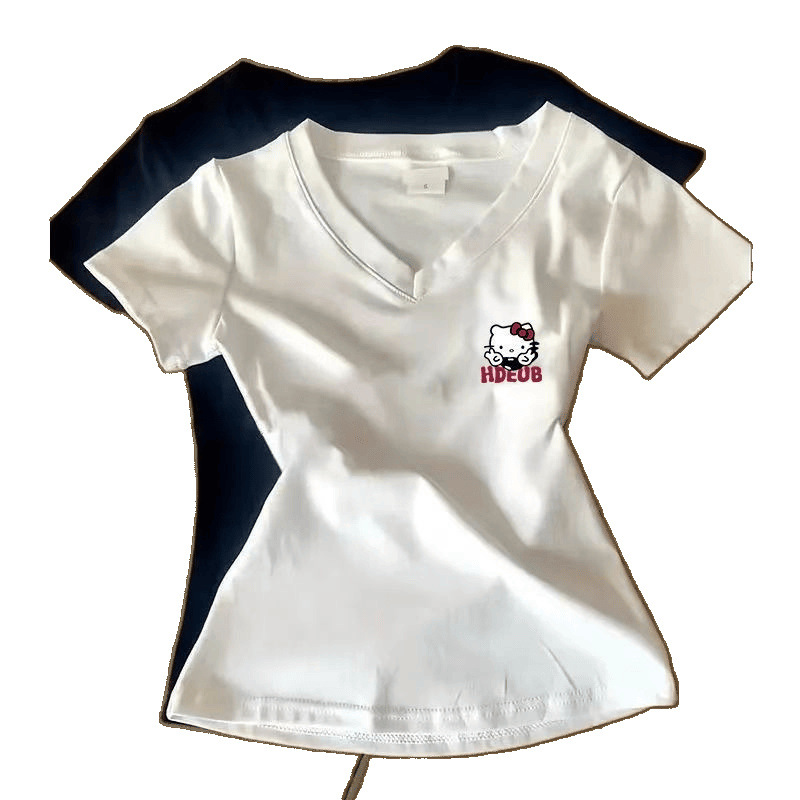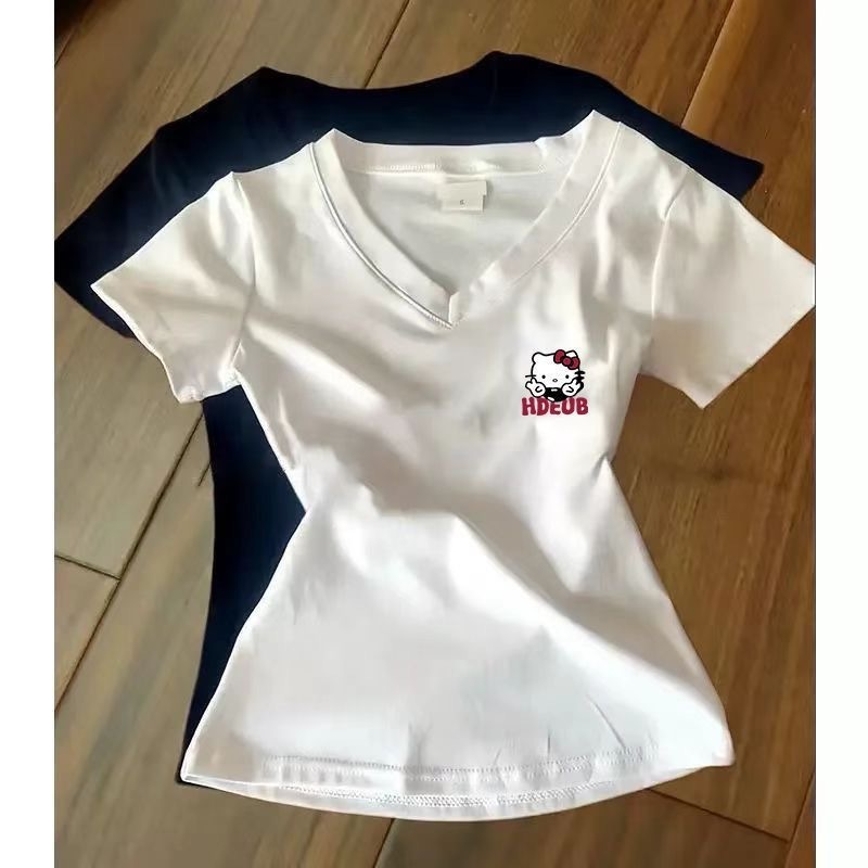 Тонкая студенческая летняя футболка с v-образным вырезом и правым плечом для женщин, молочно-синяя одежда дофамина, тонкий простой модный женский топ