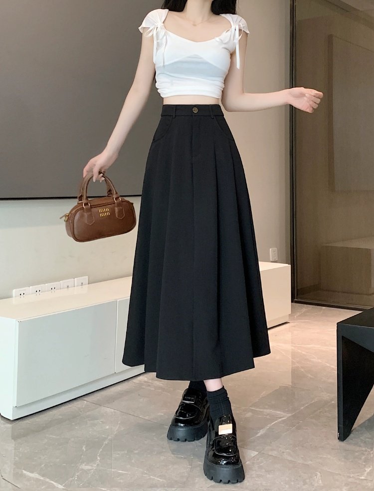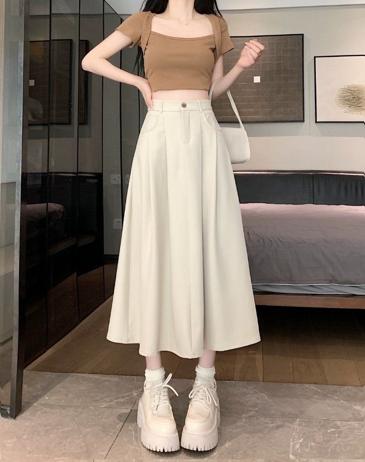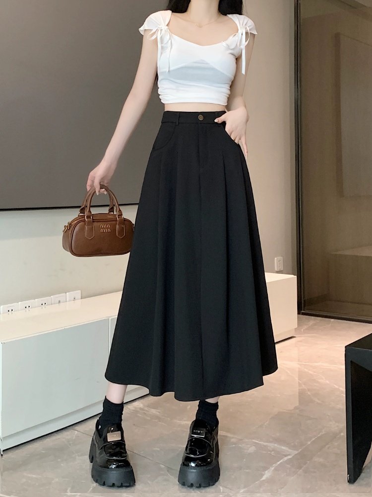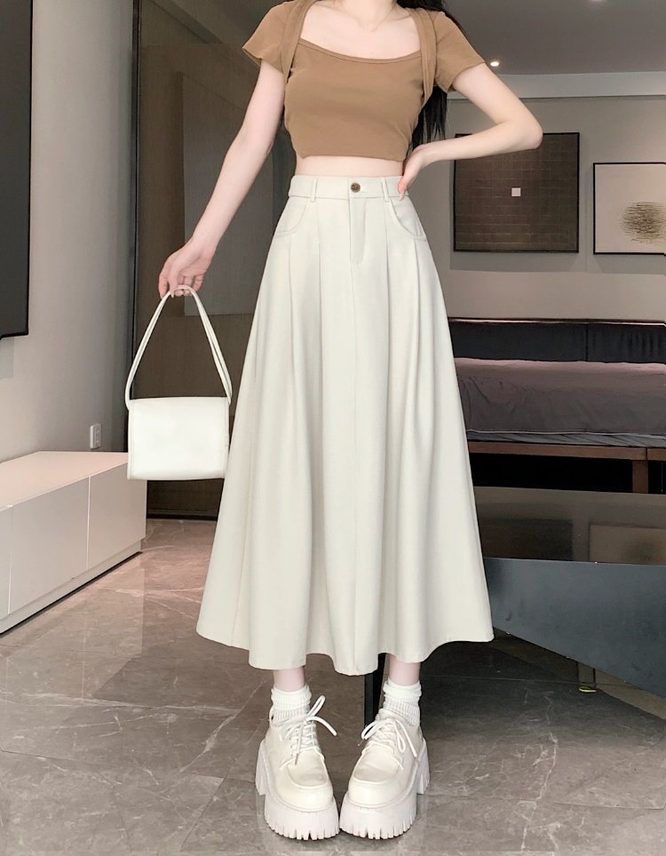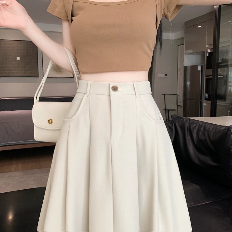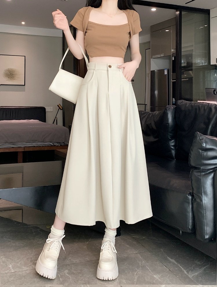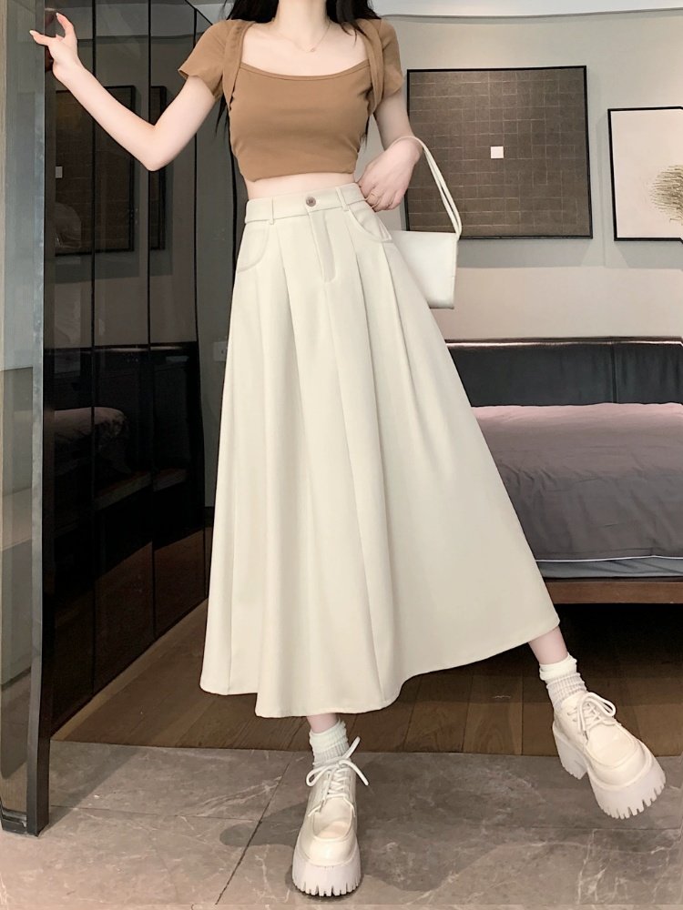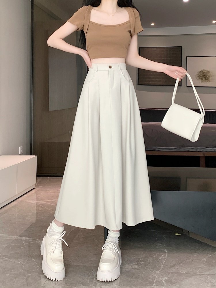 Белоснежная юбка из ткани для костюма для женщин, весенне-летняя универсальная драпированная повседневная юбка трапециевидной формы с высокой талией, утягивающая юбка средней длины
