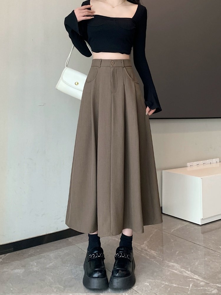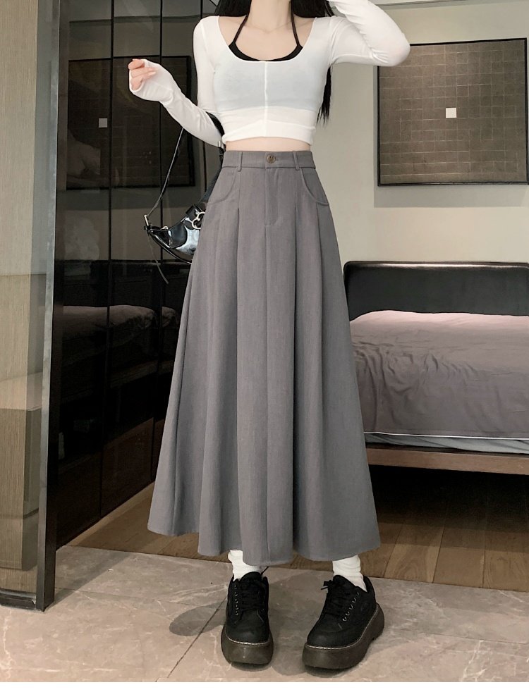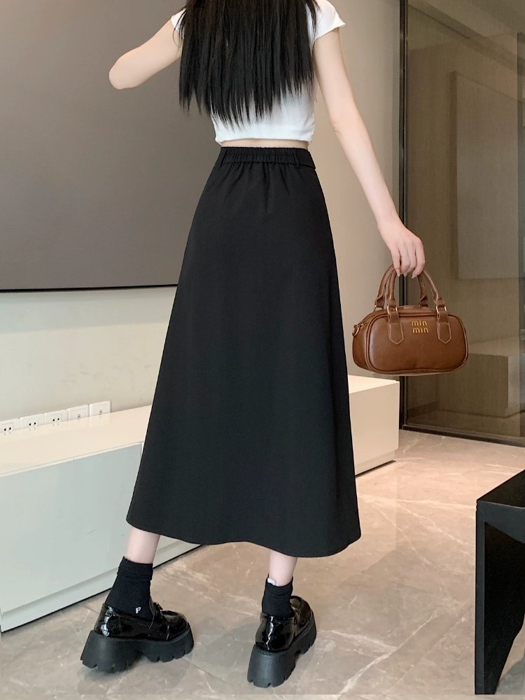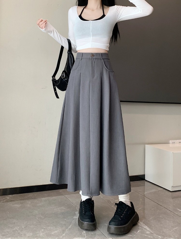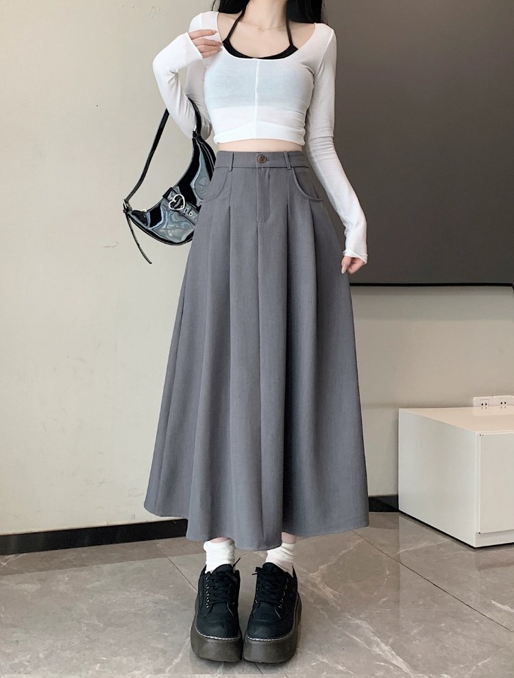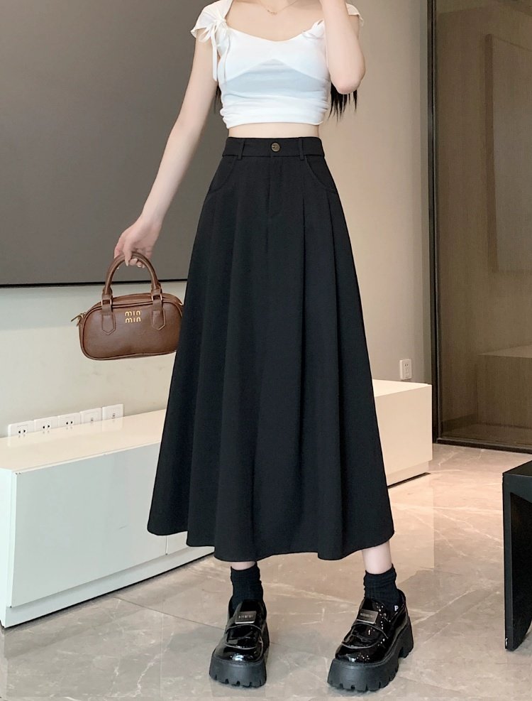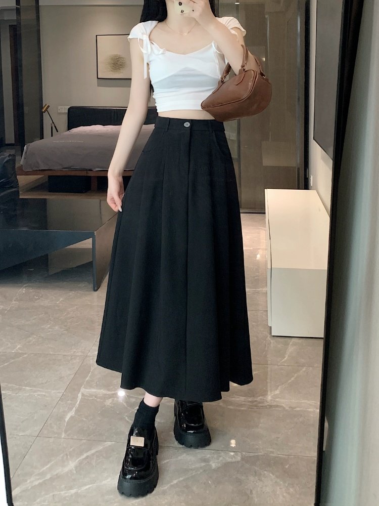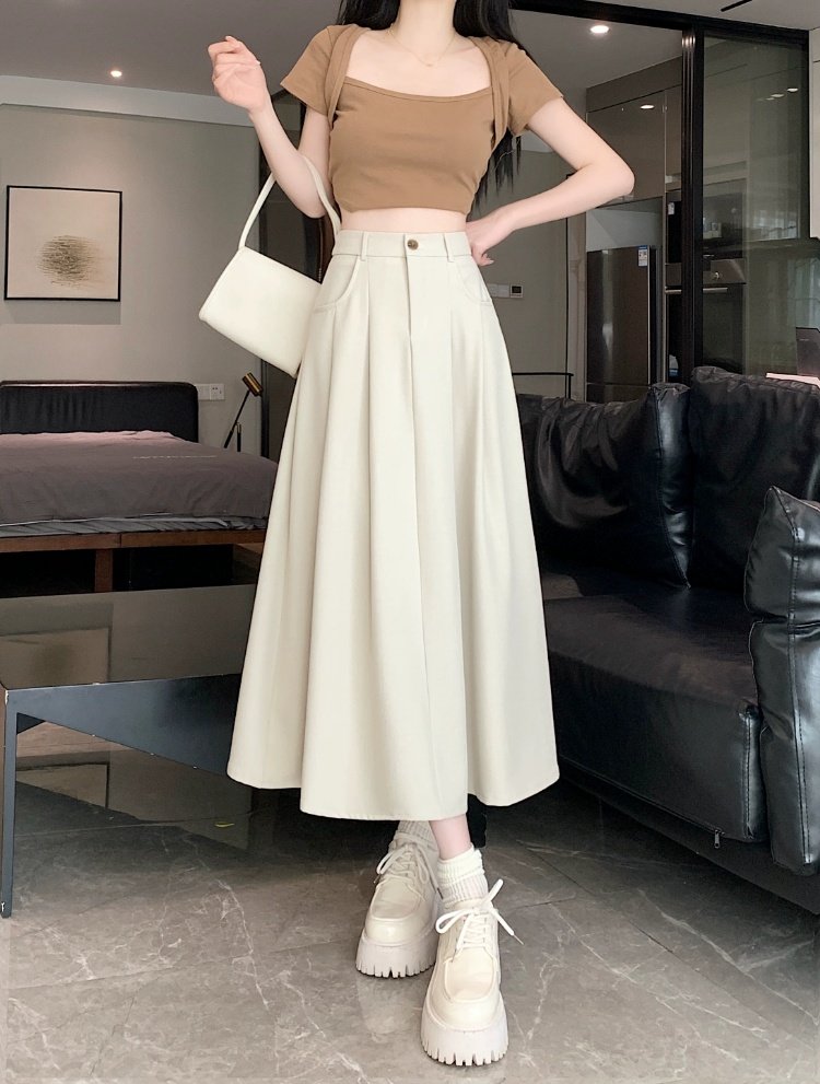 Белоснежная юбка из ткани для костюма для женщин, весенне-летняя универсальная драпированная повседневная юбка трапециевидной формы с высокой талией, утягивающая юбка средней длины
