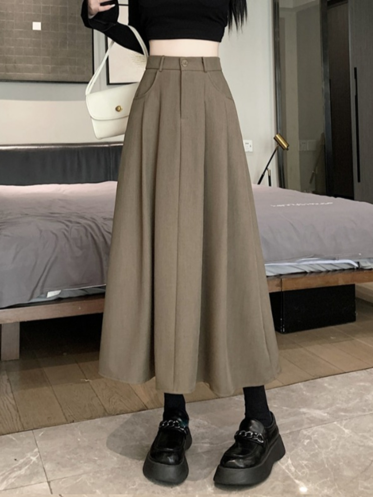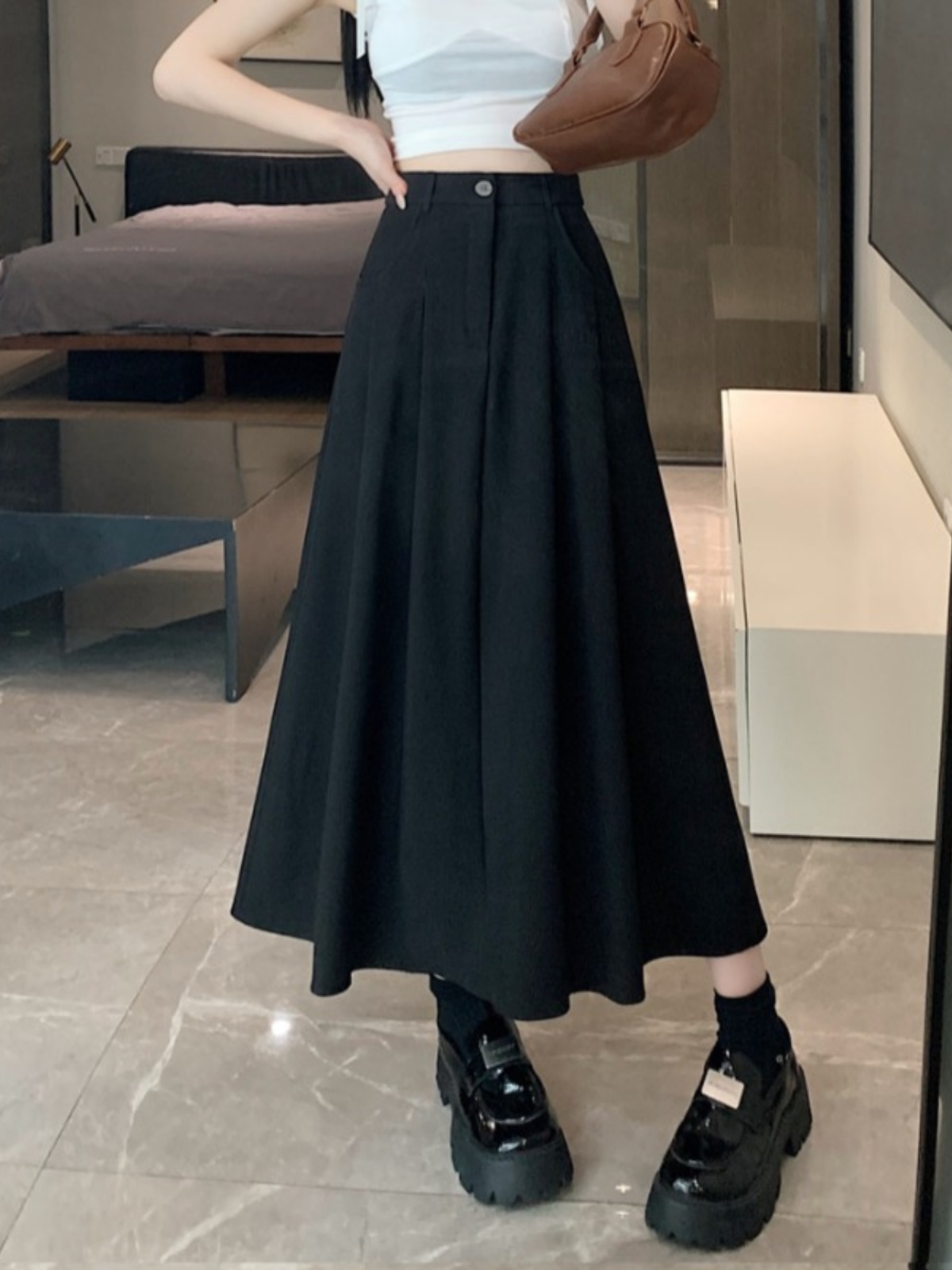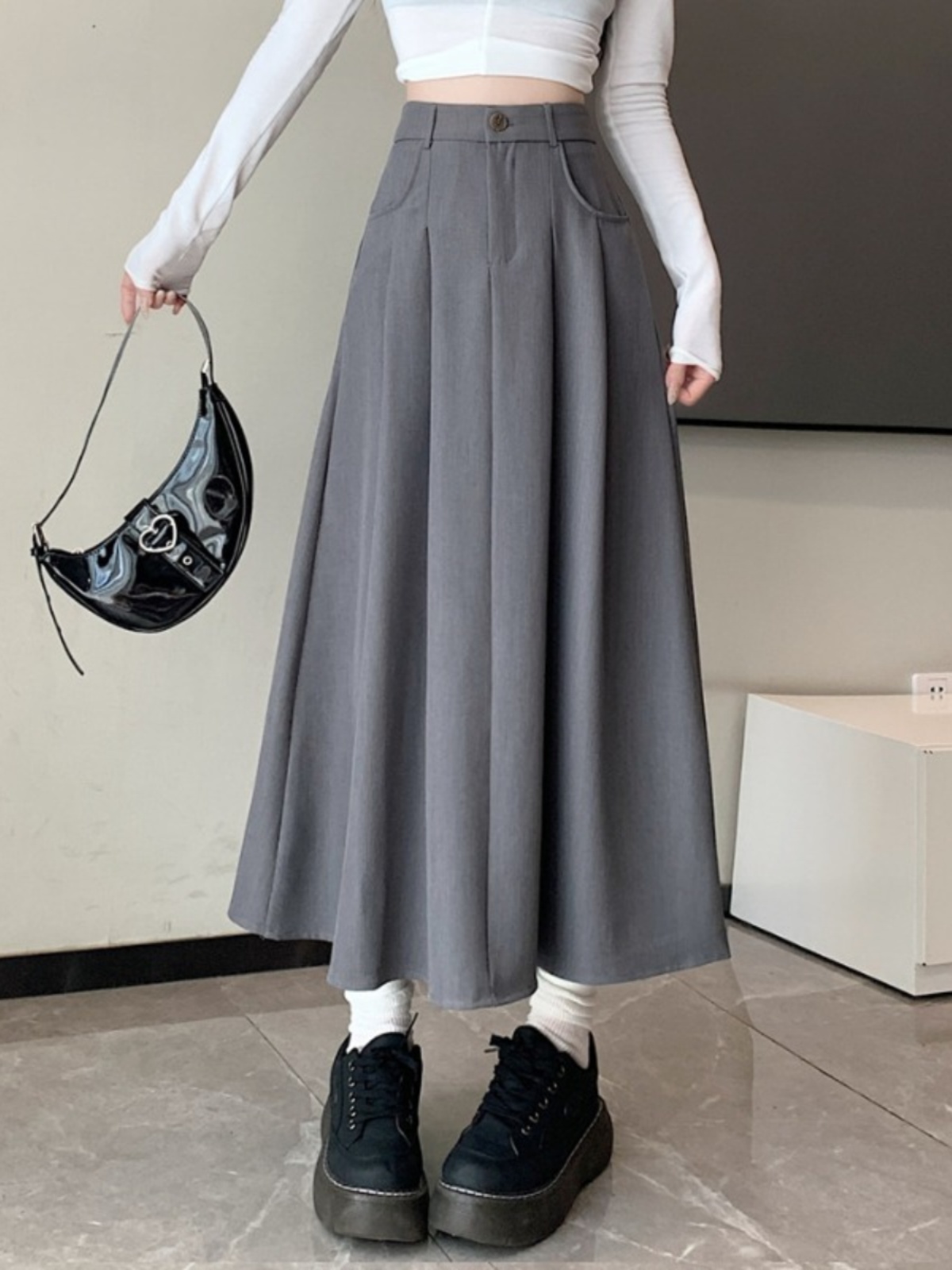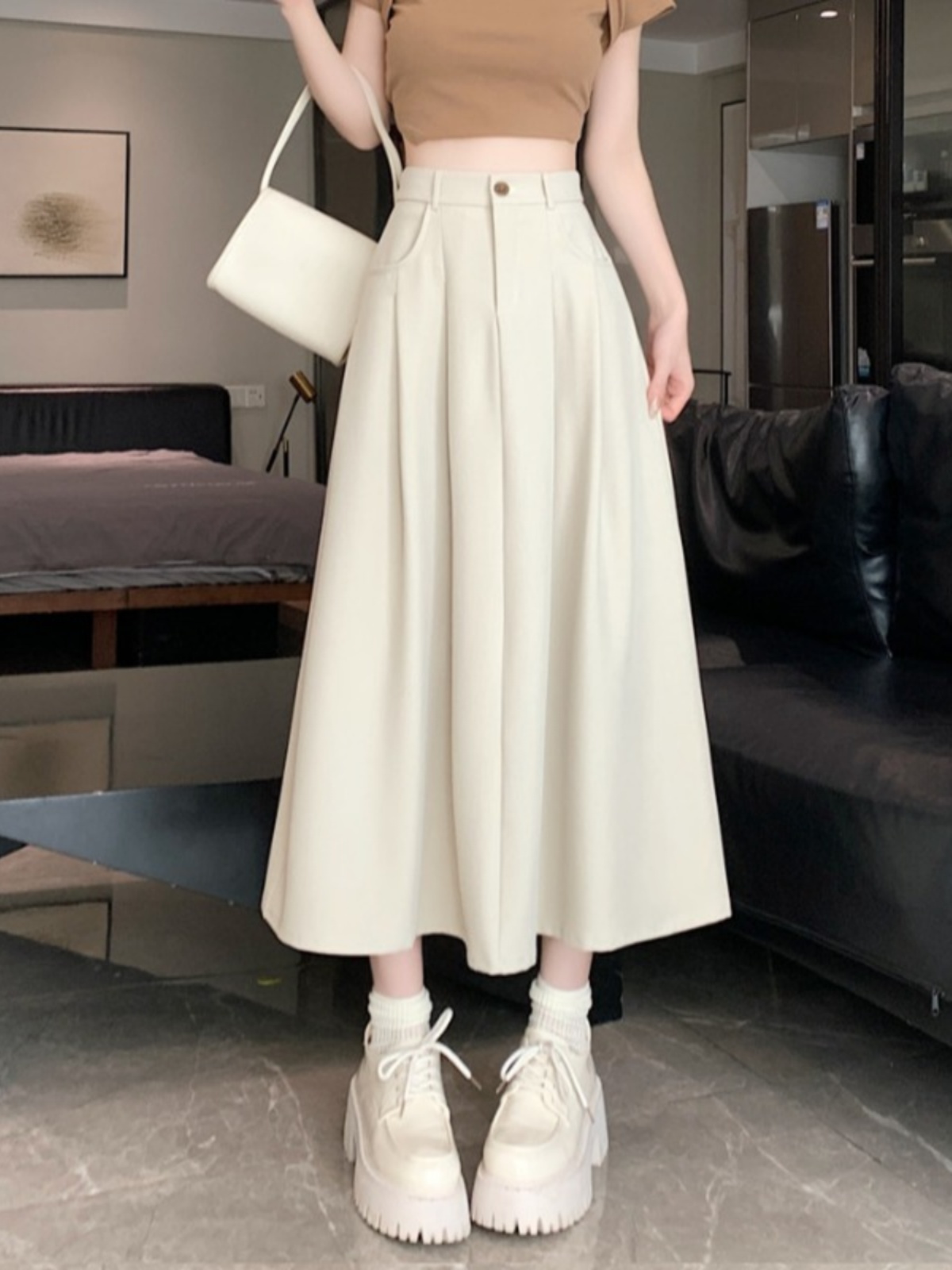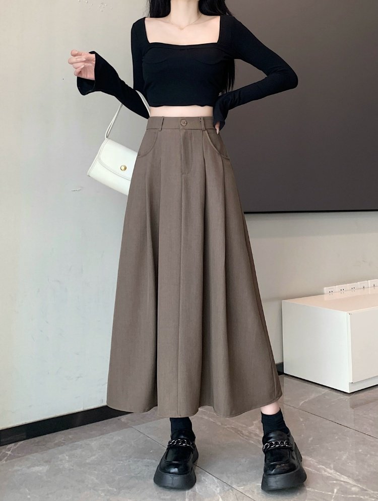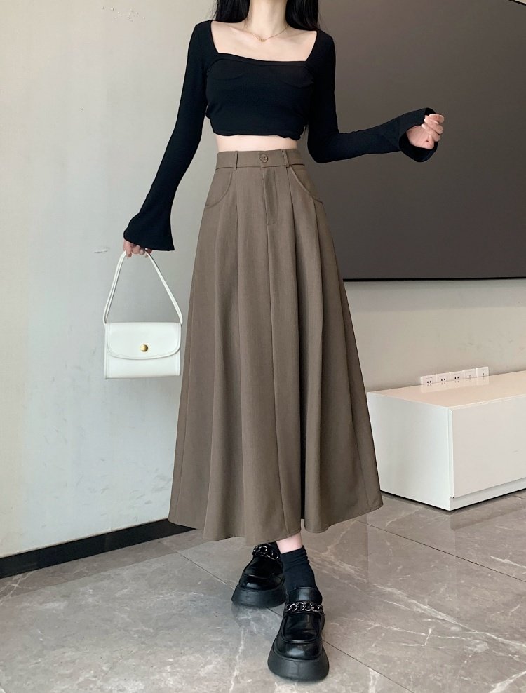 Белоснежная юбка из ткани для костюма для женщин, весенне-летняя универсальная драпированная повседневная юбка трапециевидной формы с высокой талией, утягивающая юбка средней длины