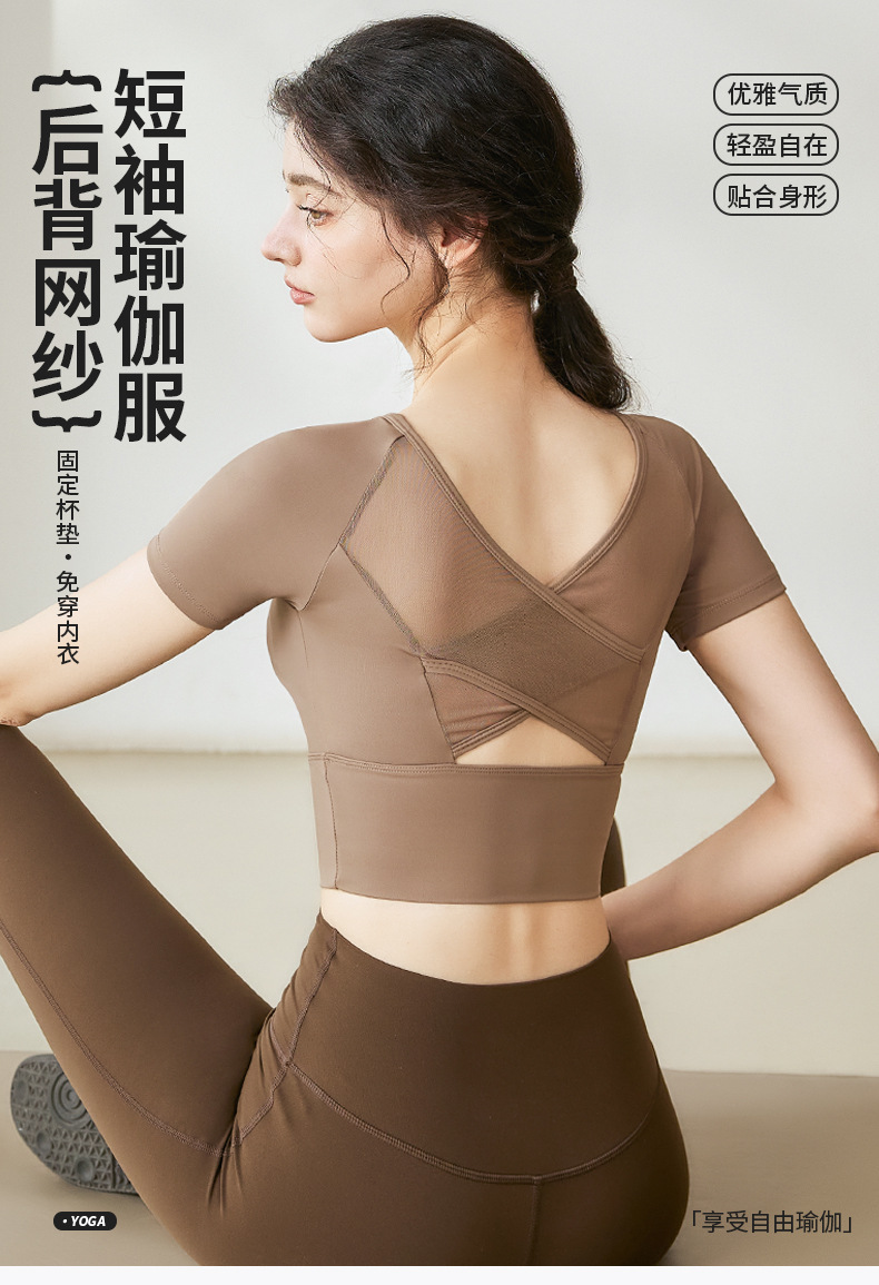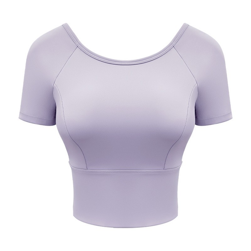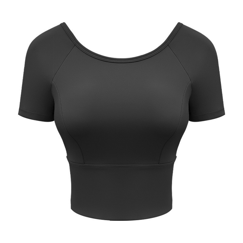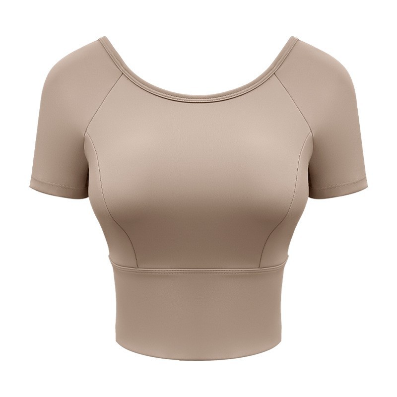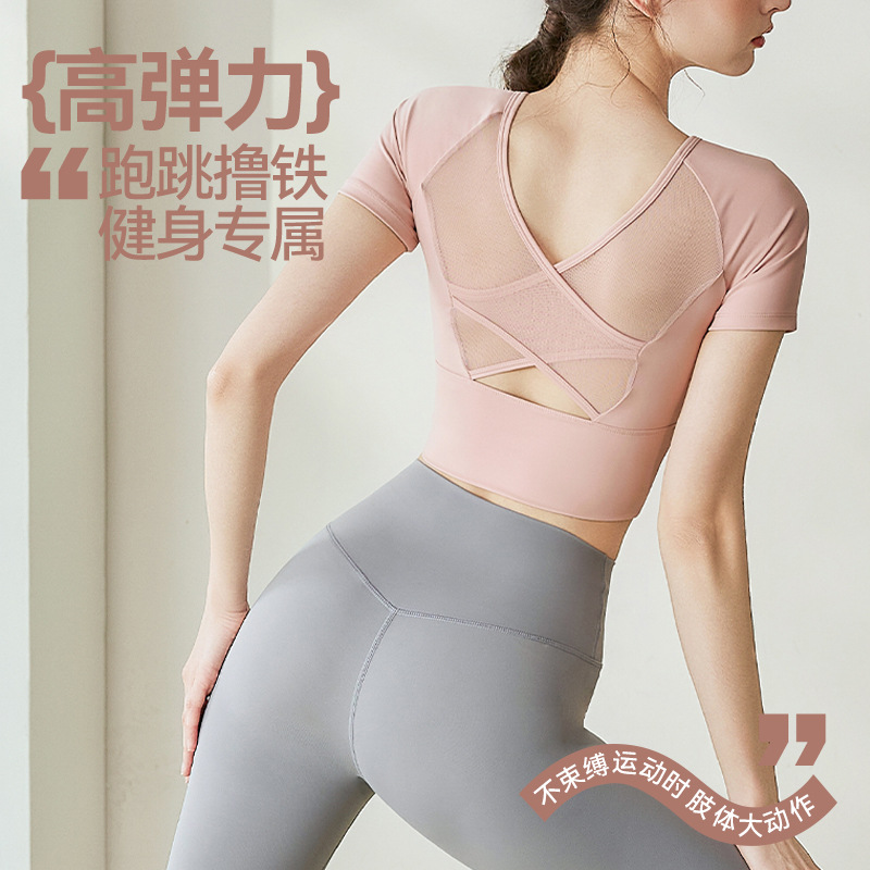 Женская одежда для йоги 2026: летний спортивный топ для пилатеса с коротким рукавом, со встроенными чашечками, для занятий спортом на открытом воздухе